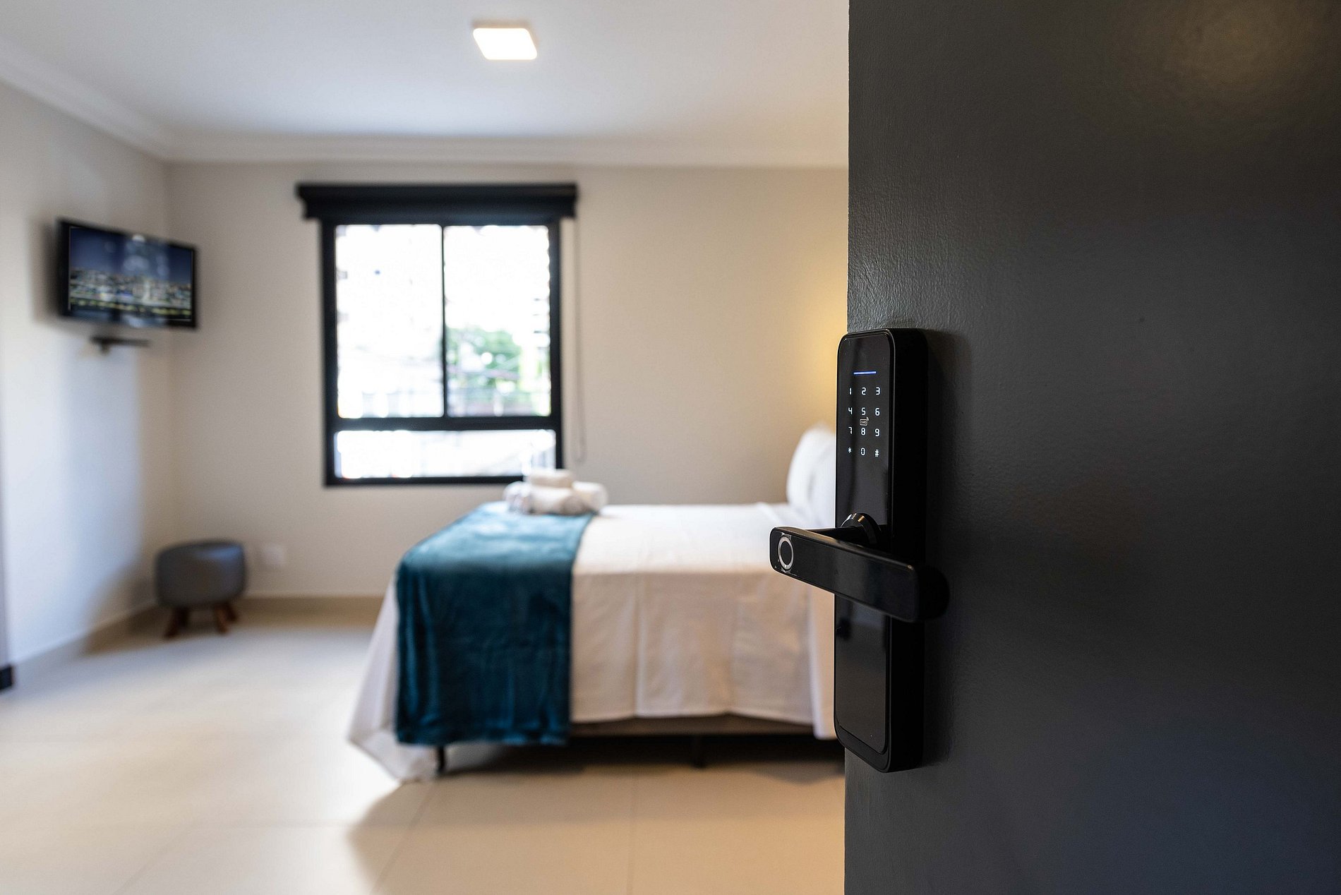 A entrada é realizada através de uma fechadura eletrônica, garantindo acesso total tanto ao apartamento quanto às comodidades do prédio.