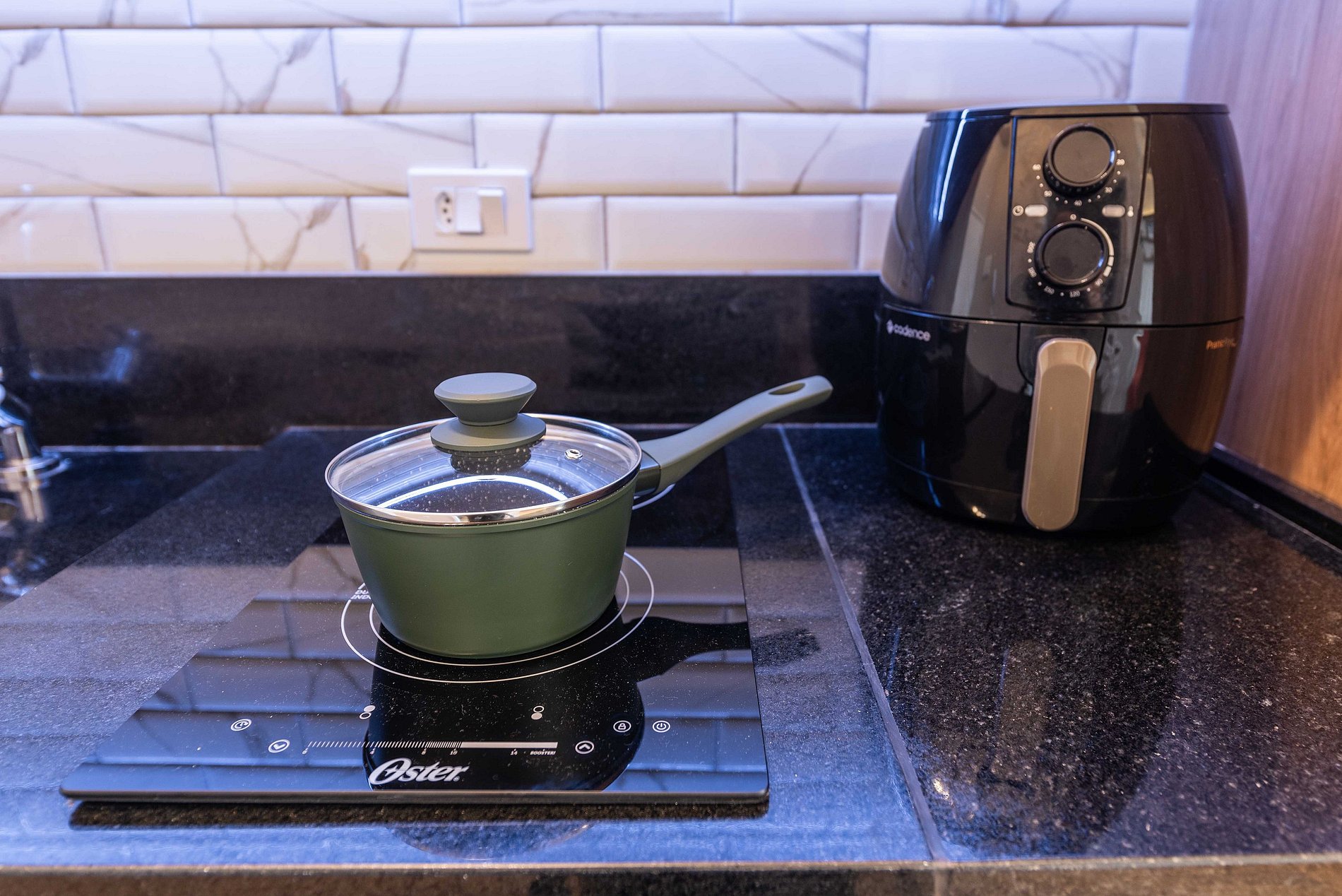 ・Cozinha completa: equipada com geladeira, fogão de indução, micro-ondas etc.