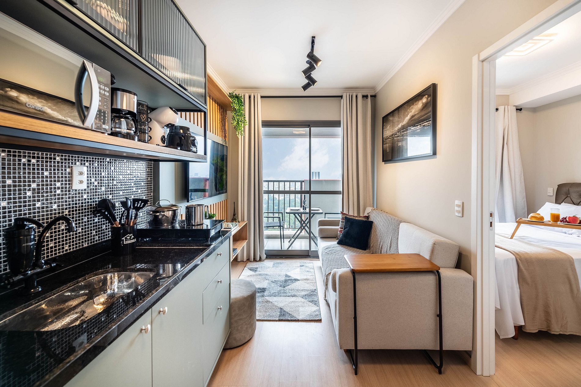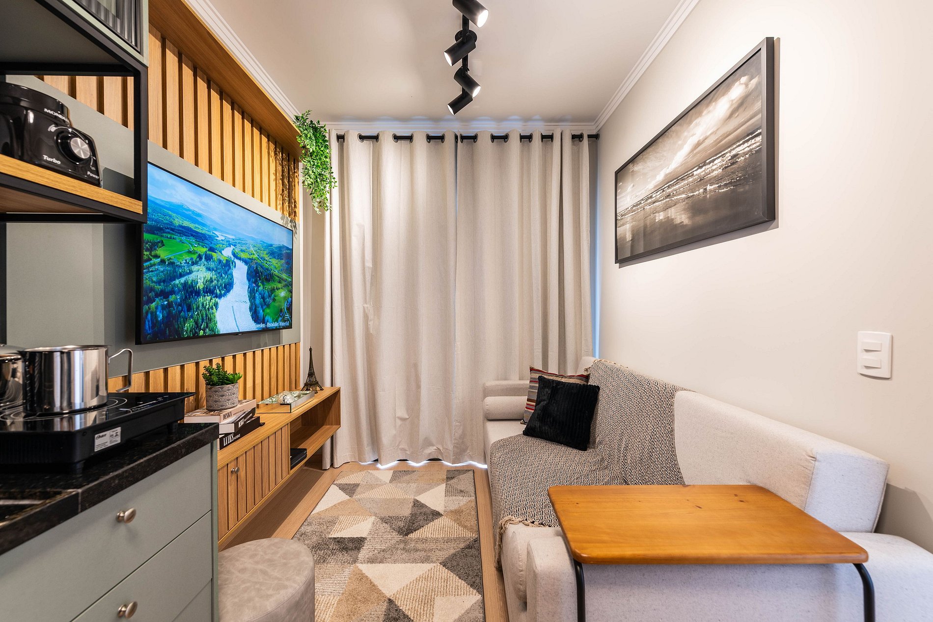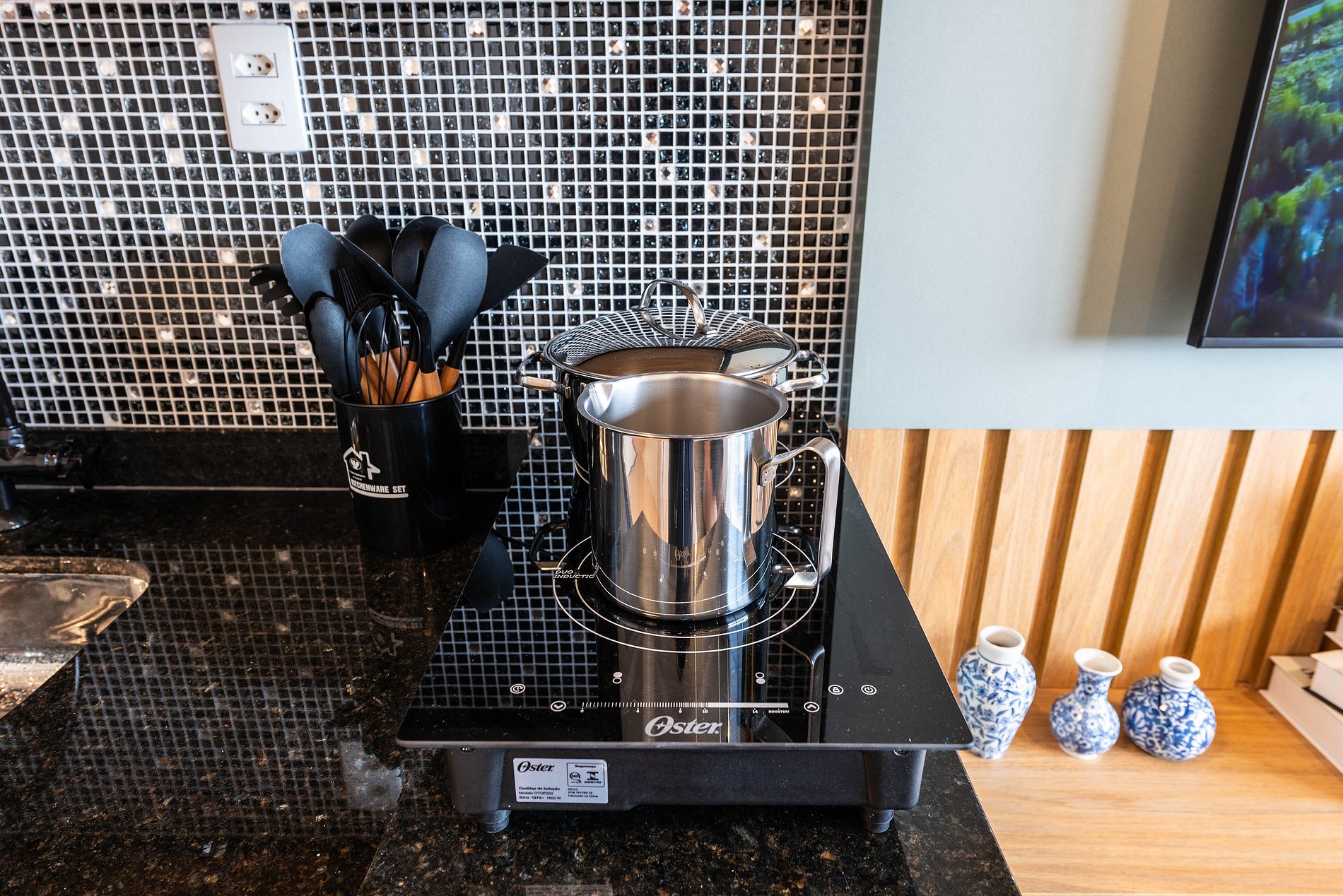 ・Cozinha completa: equipada com geladeira, fogão de indução, micro-ondas etc.