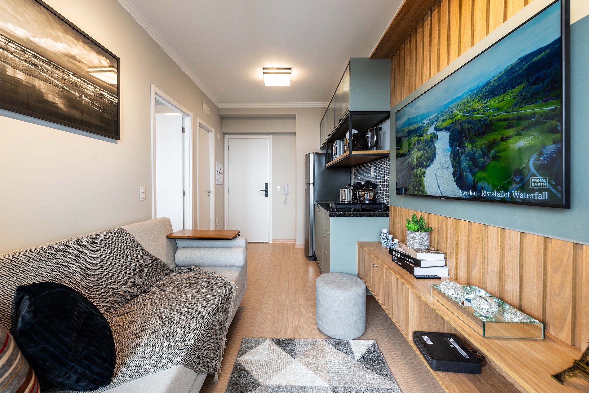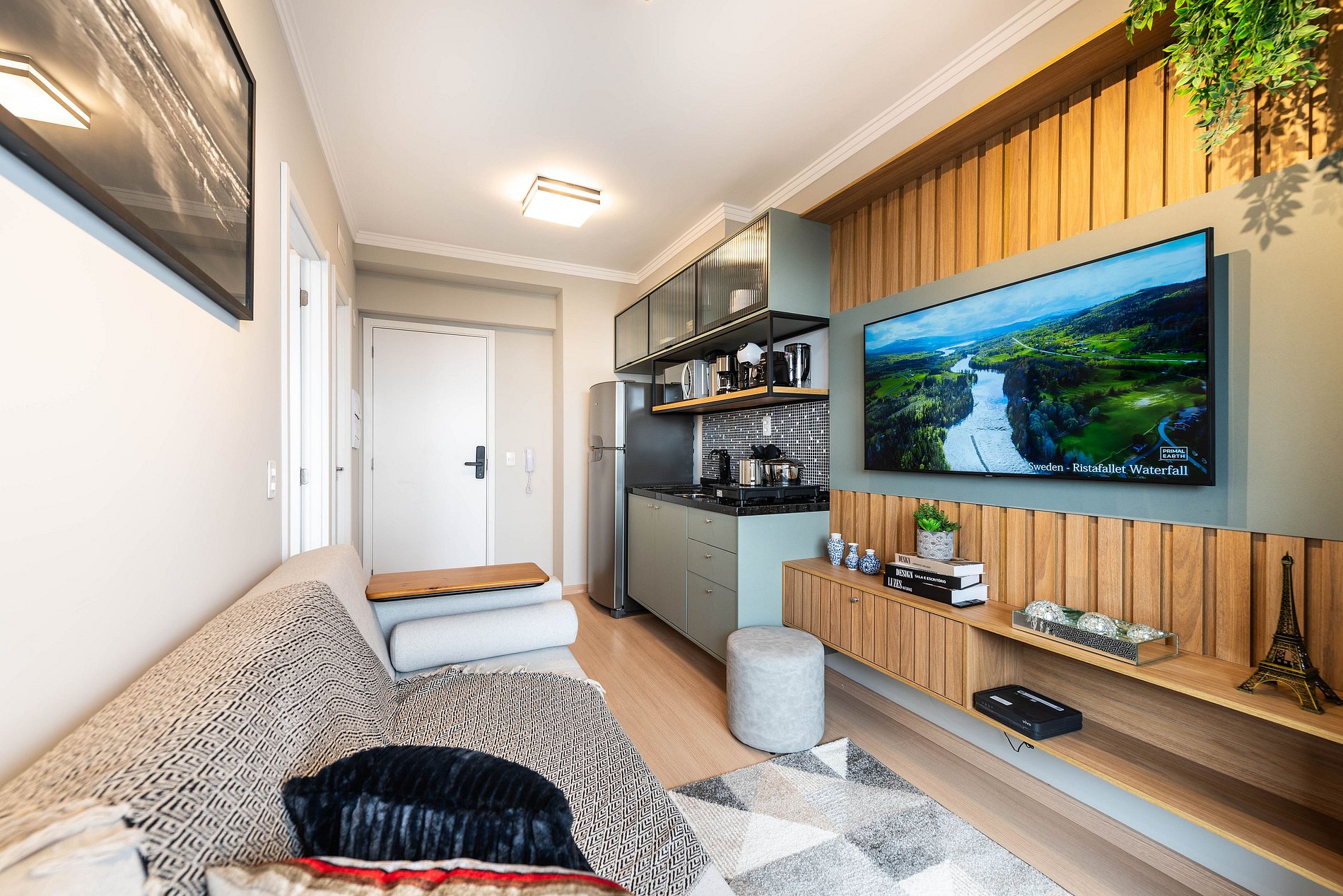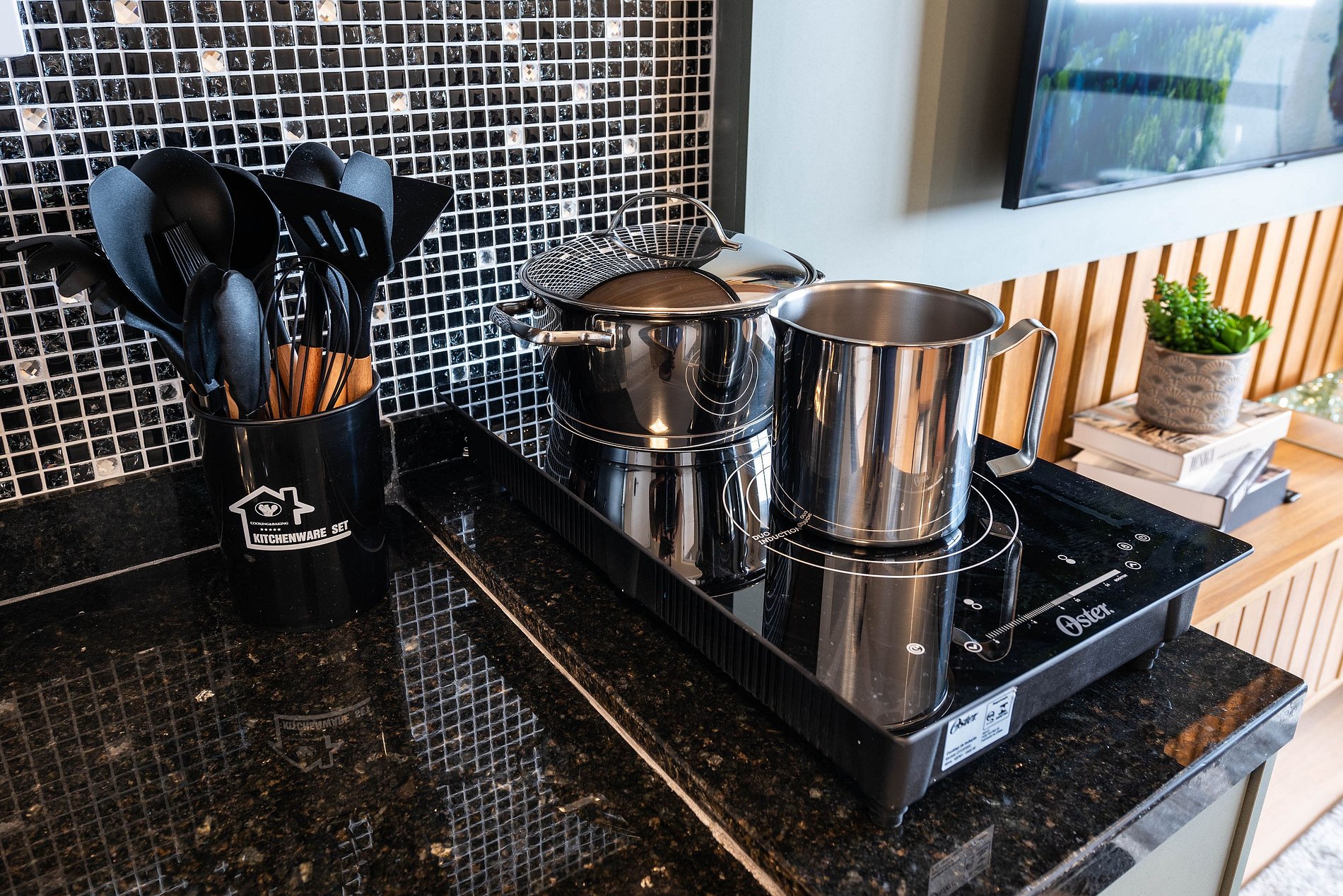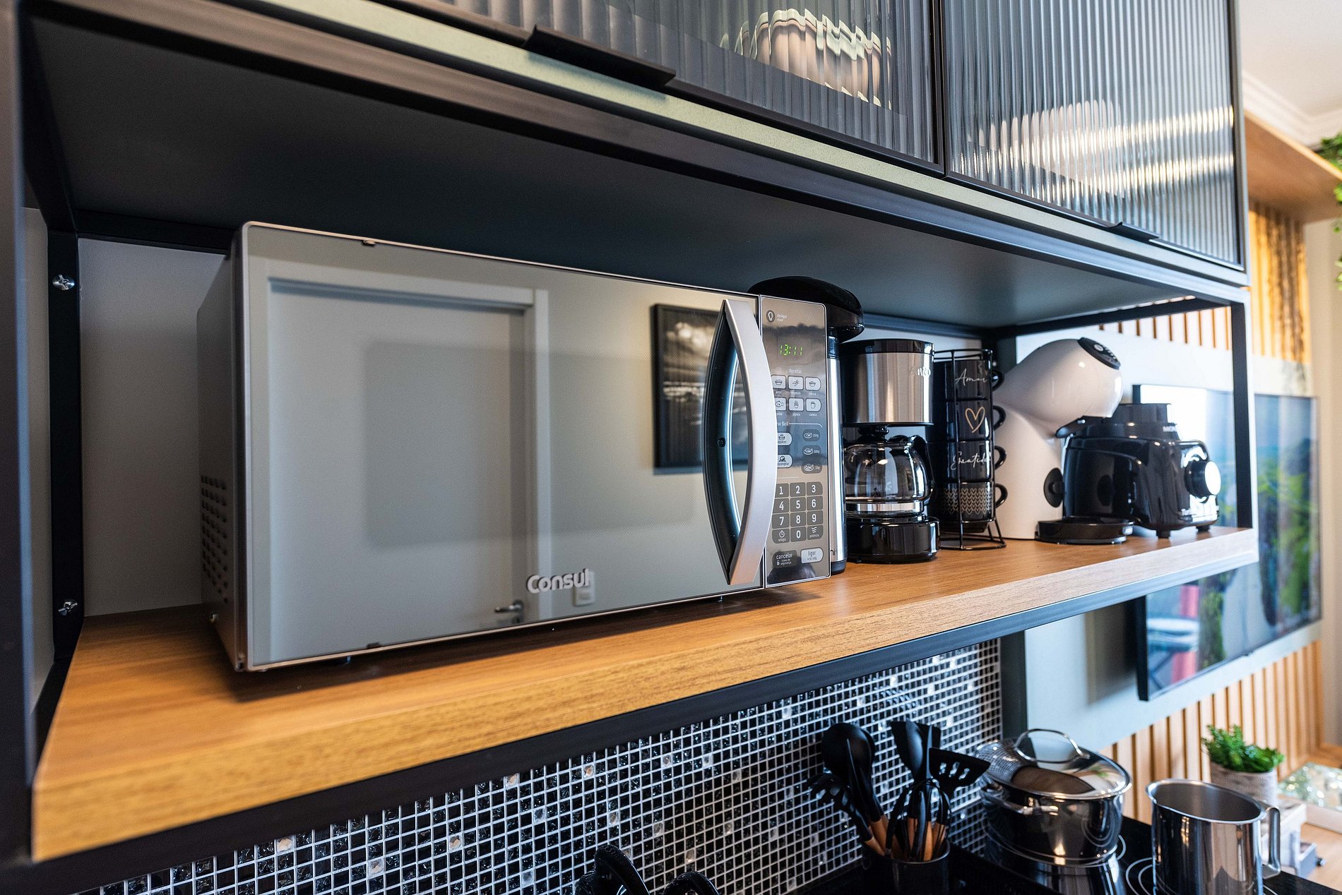 ・Cozinha completa: equipada com geladeira, fogão de indução, micro-ondas etc.