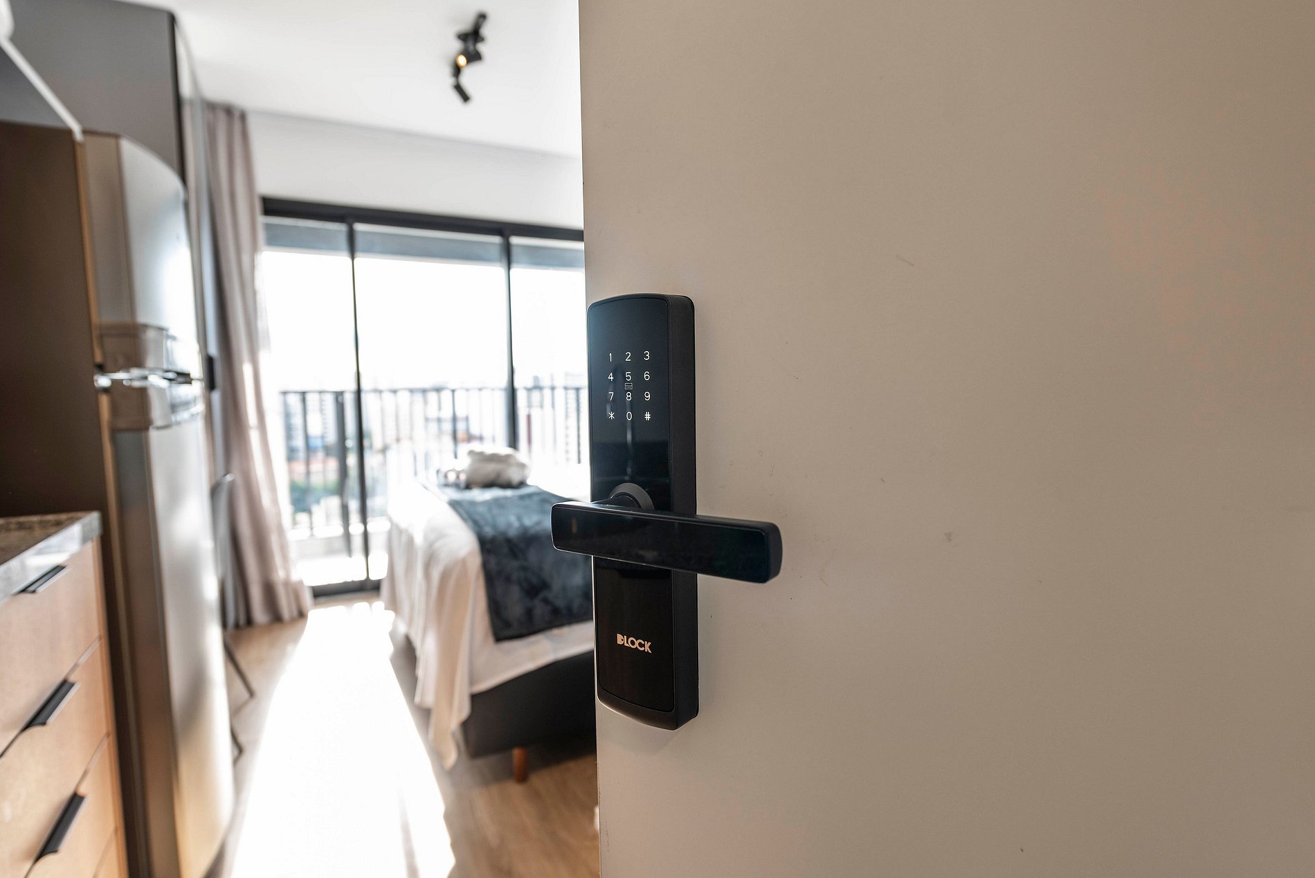 A entrada é realizada através de uma fechadura eletrônica, garantindo acesso total tanto ao apartamento quanto às comodidades do prédio.