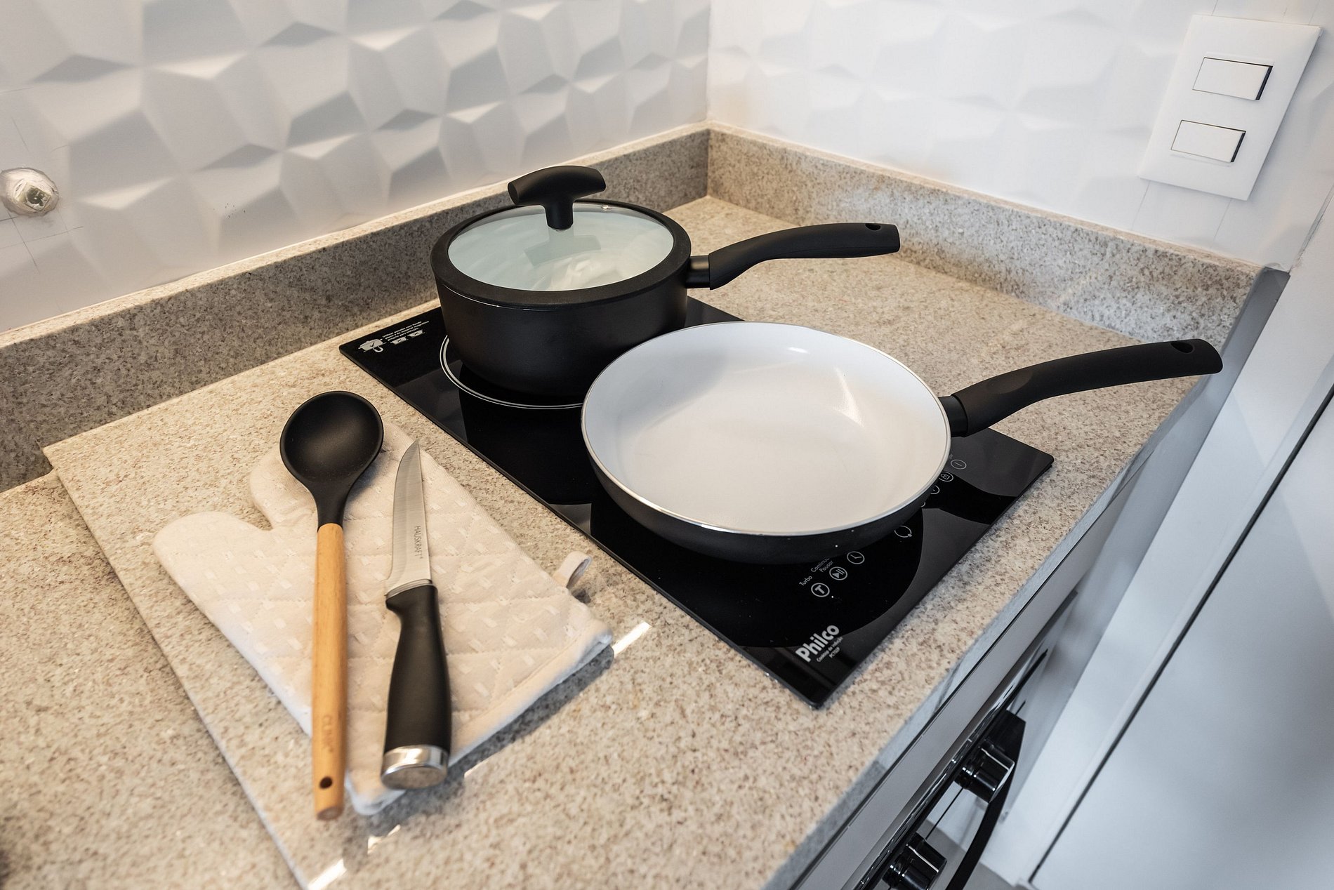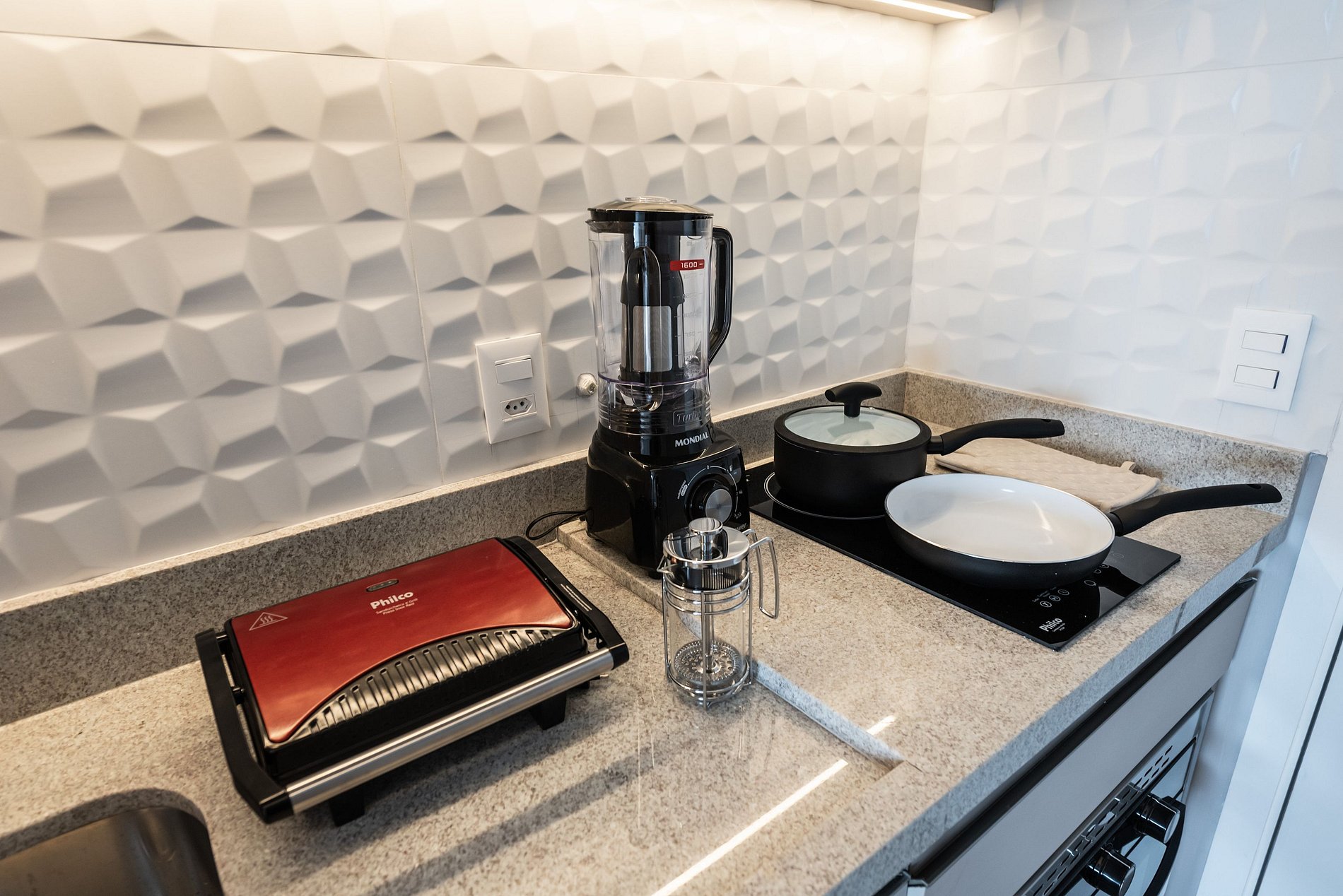 ・Cozinha completa: equipada com geladeira, fogão de indução (duas boca), forno elétrico, micro-ondas etc.