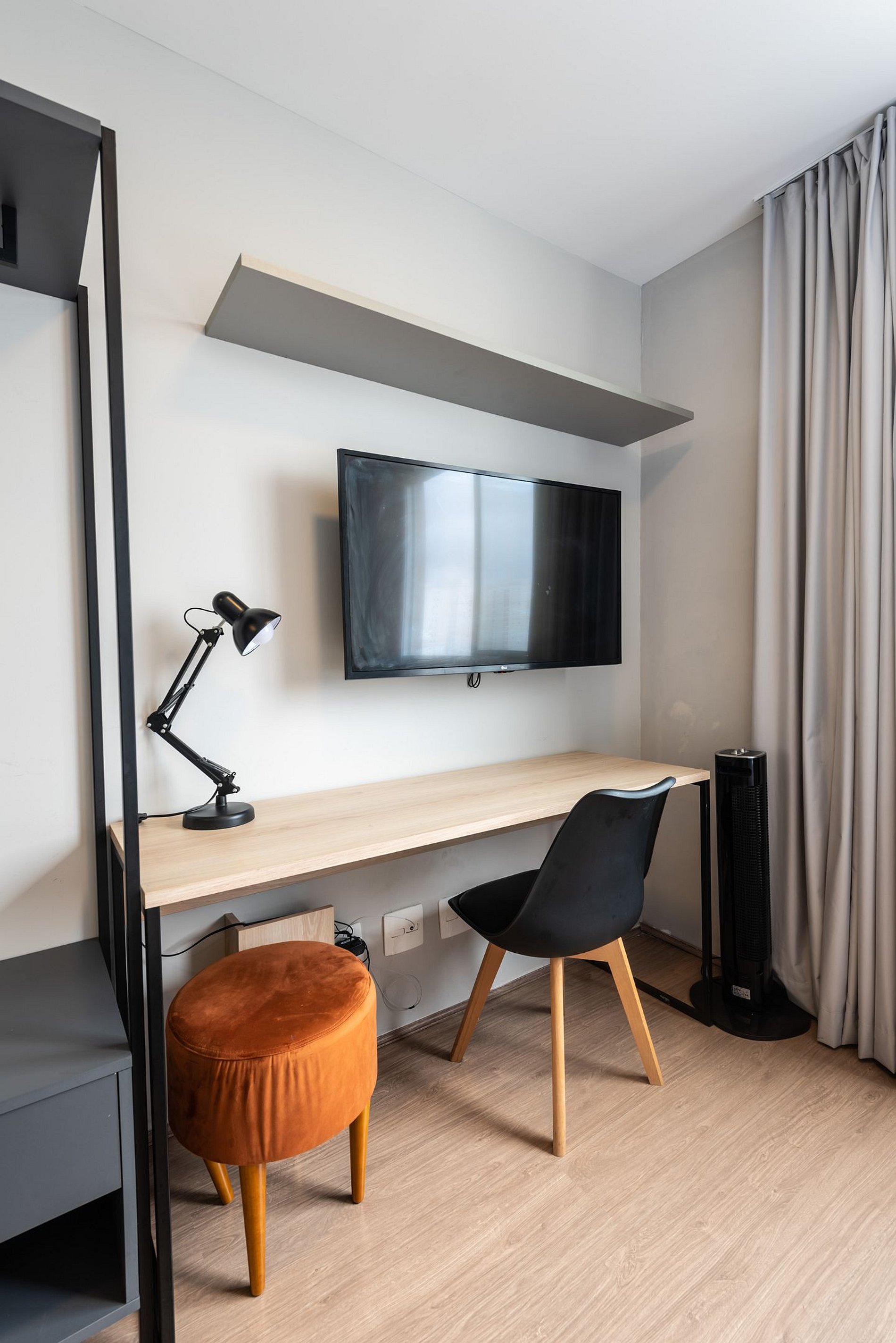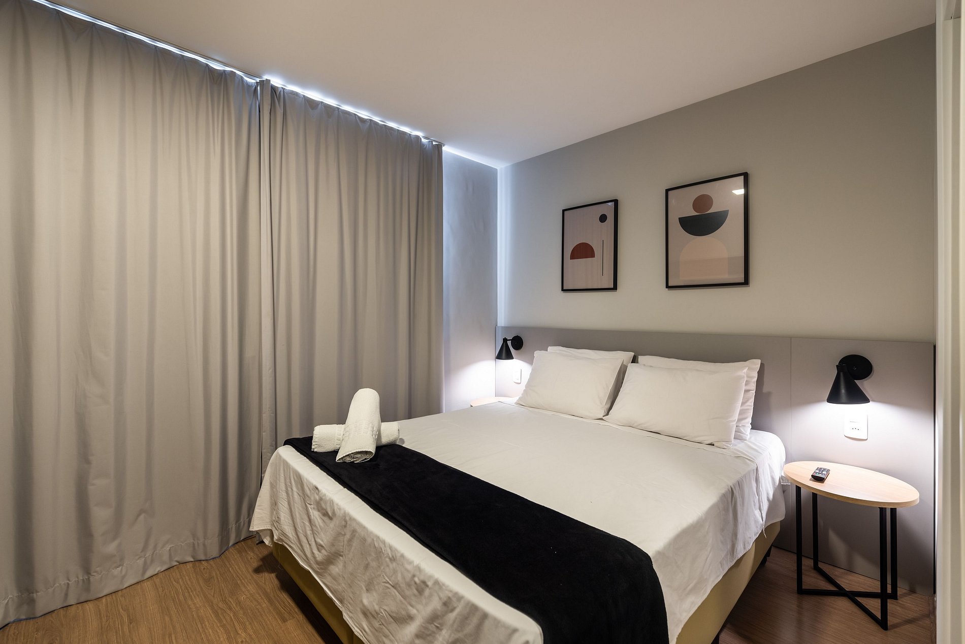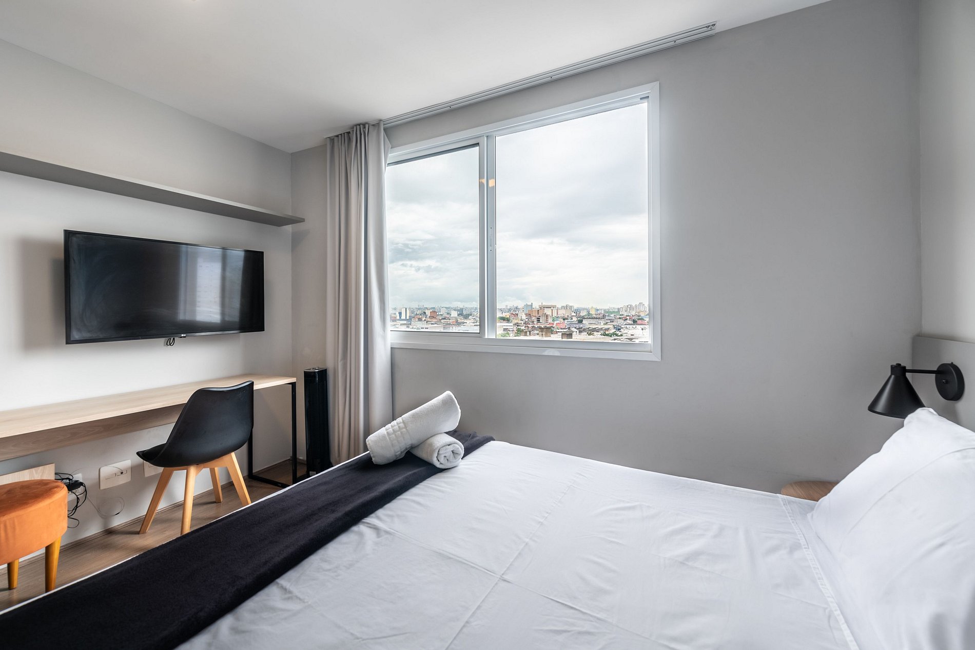 Studio completo e aconchegante, ideal para quem busca conforto e praticidade. O espaço conta com cama confortável, cozinha funcional e banheiro moderno, oferecendo tudo o que você precisa para uma estadia tranquila.