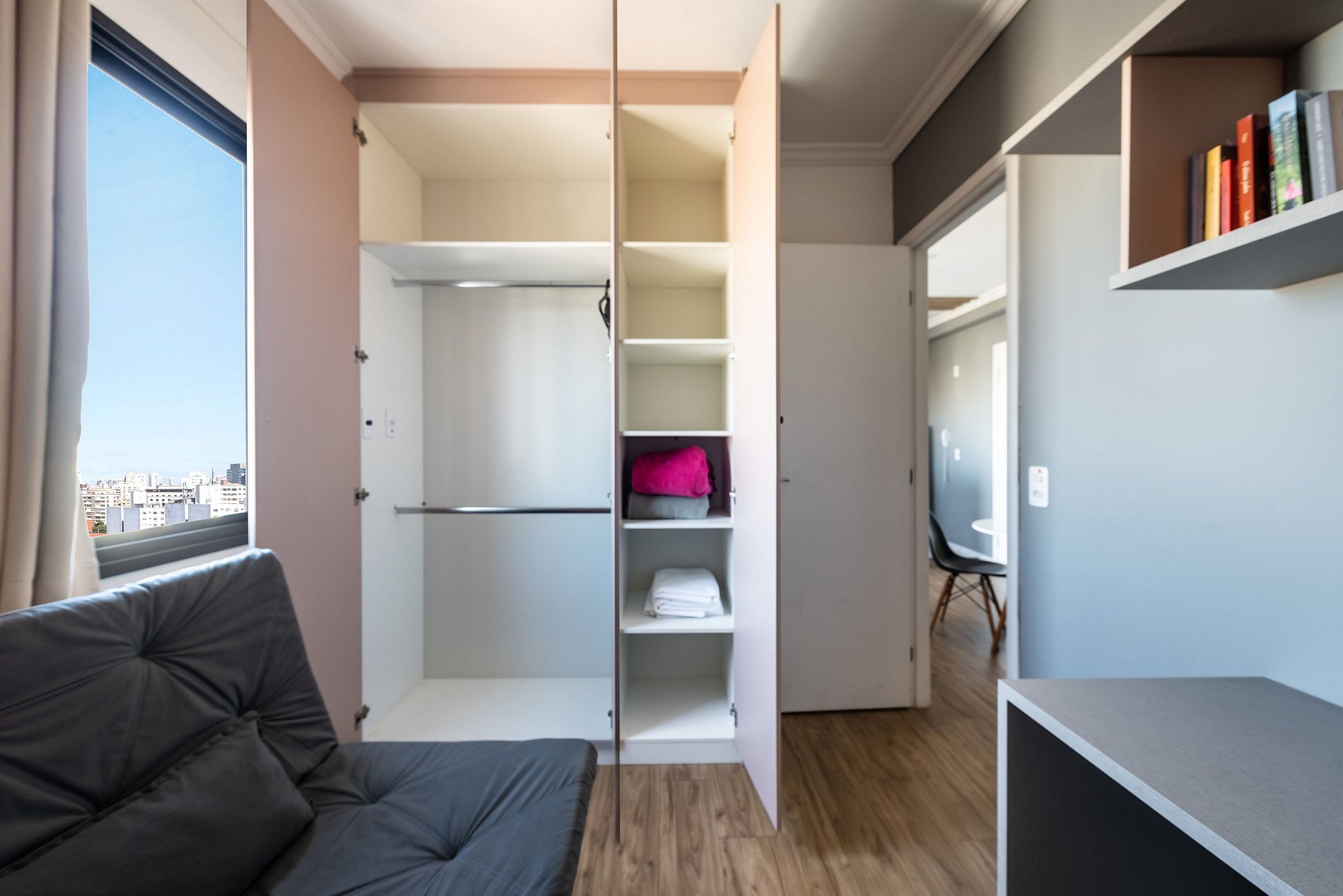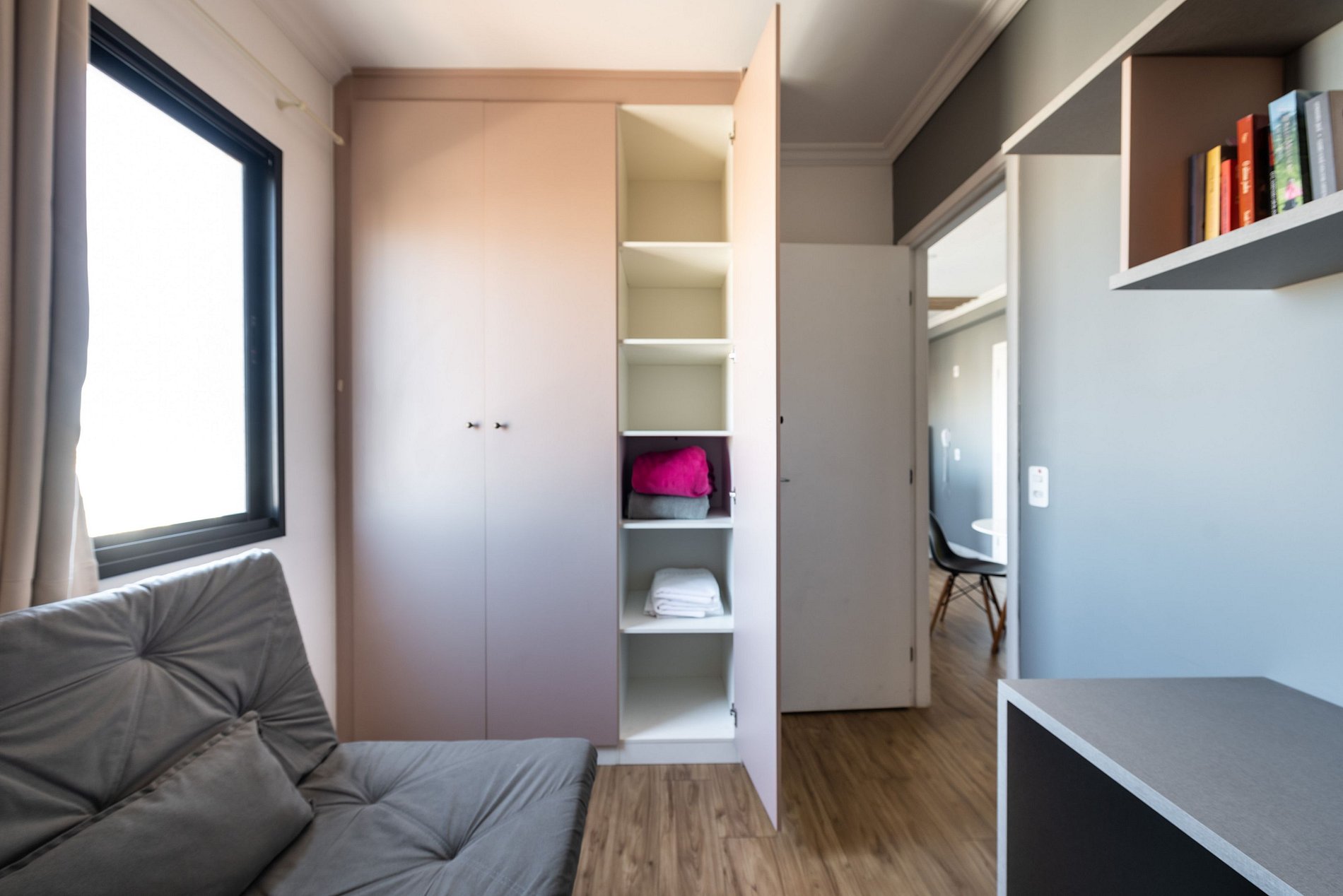 Condomínio moderno na Bela Vista, pensado para oferecer conforto e praticidade no dia a dia. Conta com piscina, academia bem equipada e lavanderia no próprio prédio, proporcionando mais comodidade durante toda a estadia.