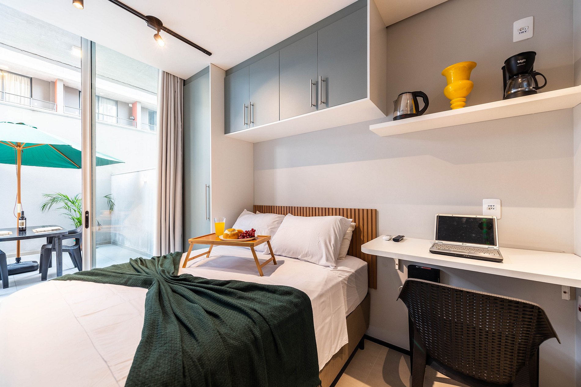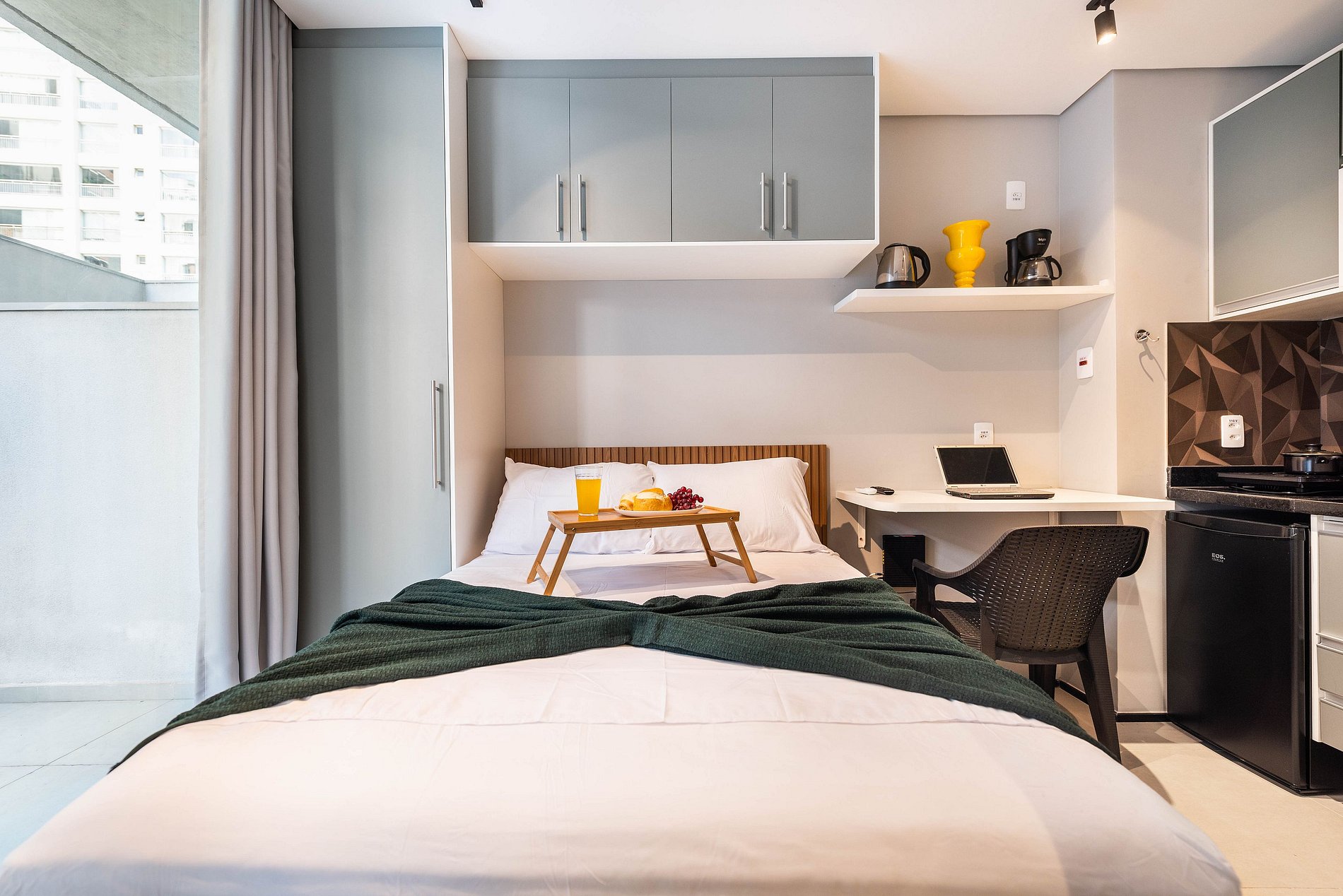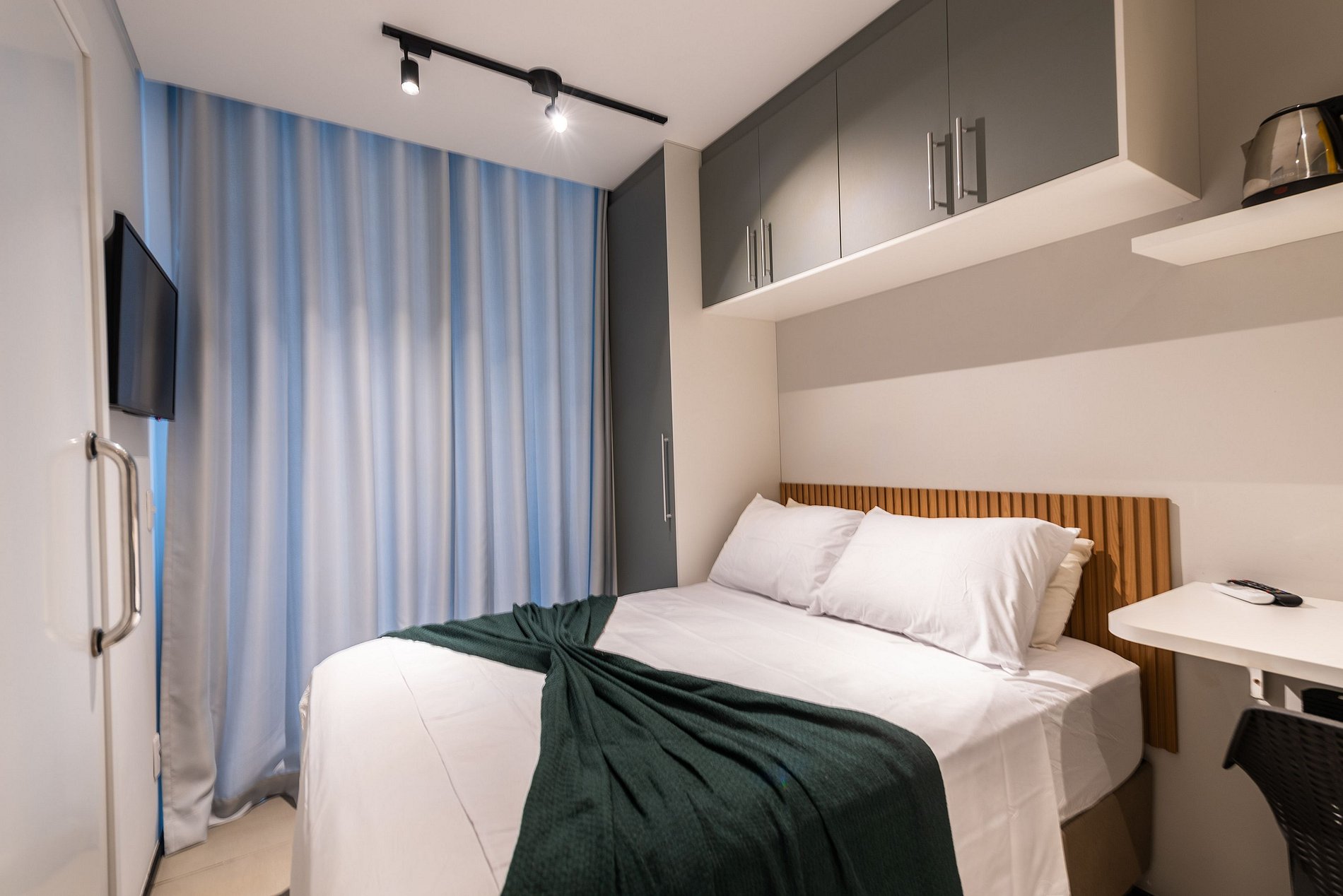 Desfrute da praticidade e do aconchego deste estúdio funcional, perfeito para duas pessoas. Equipado com tudo que você precisa para uma estadia tranquila, este espaço proporciona conforto e comodidade para uma experiência memorável.
