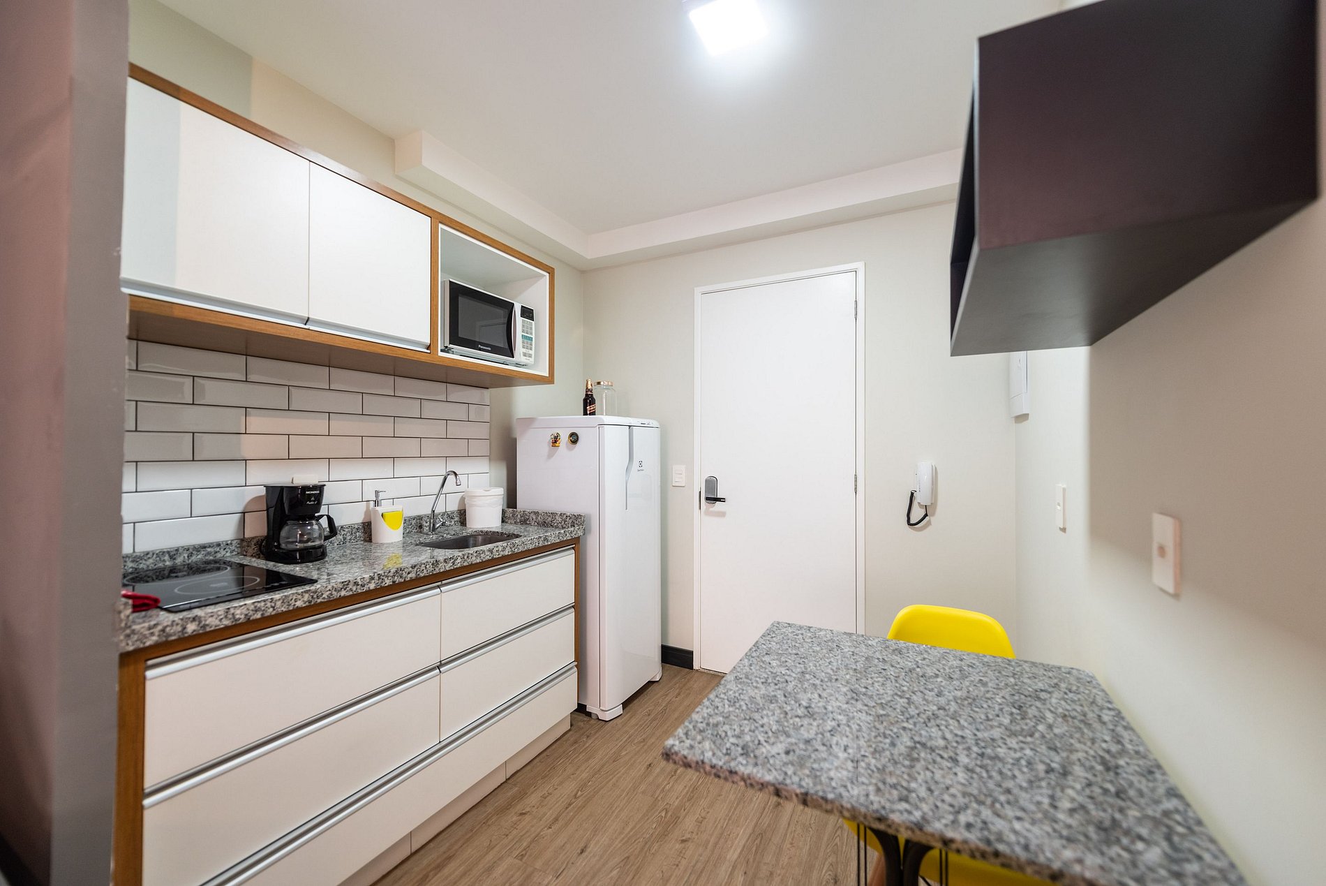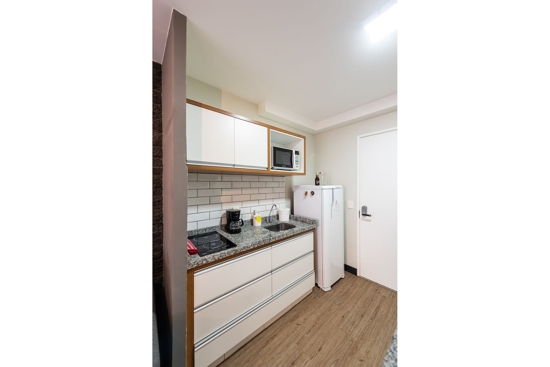 ・Cozinha completa: equipada com geladeira, fogão de indução, micro-ondas etc.