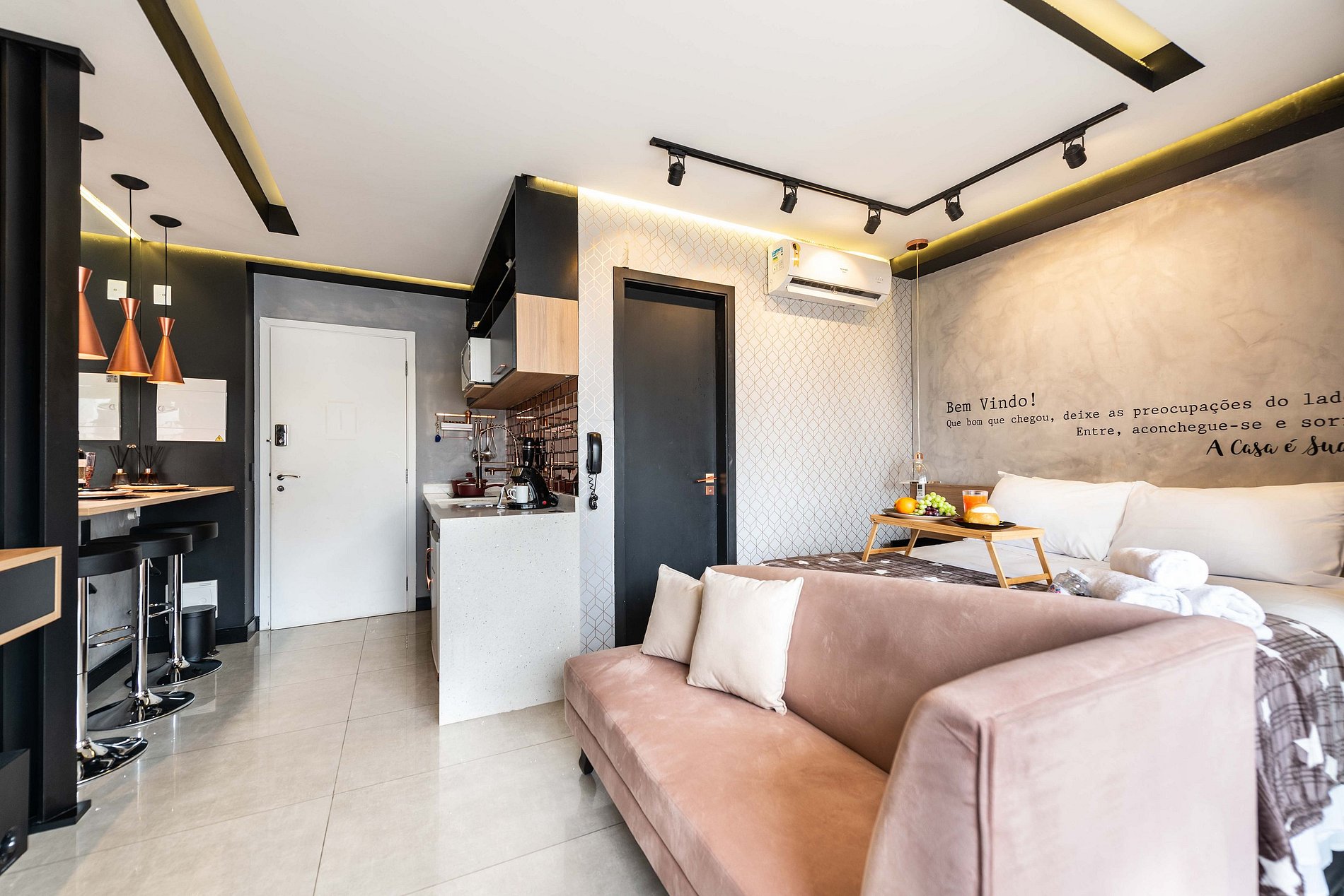 Explore nosso estúdio acolhedor, projetado para proporcionar uma estadia tranquila para quatro pessoas. Com o básico necessário para o conforto, este espaço é perfeito para uma escapada relaxante na cidade.