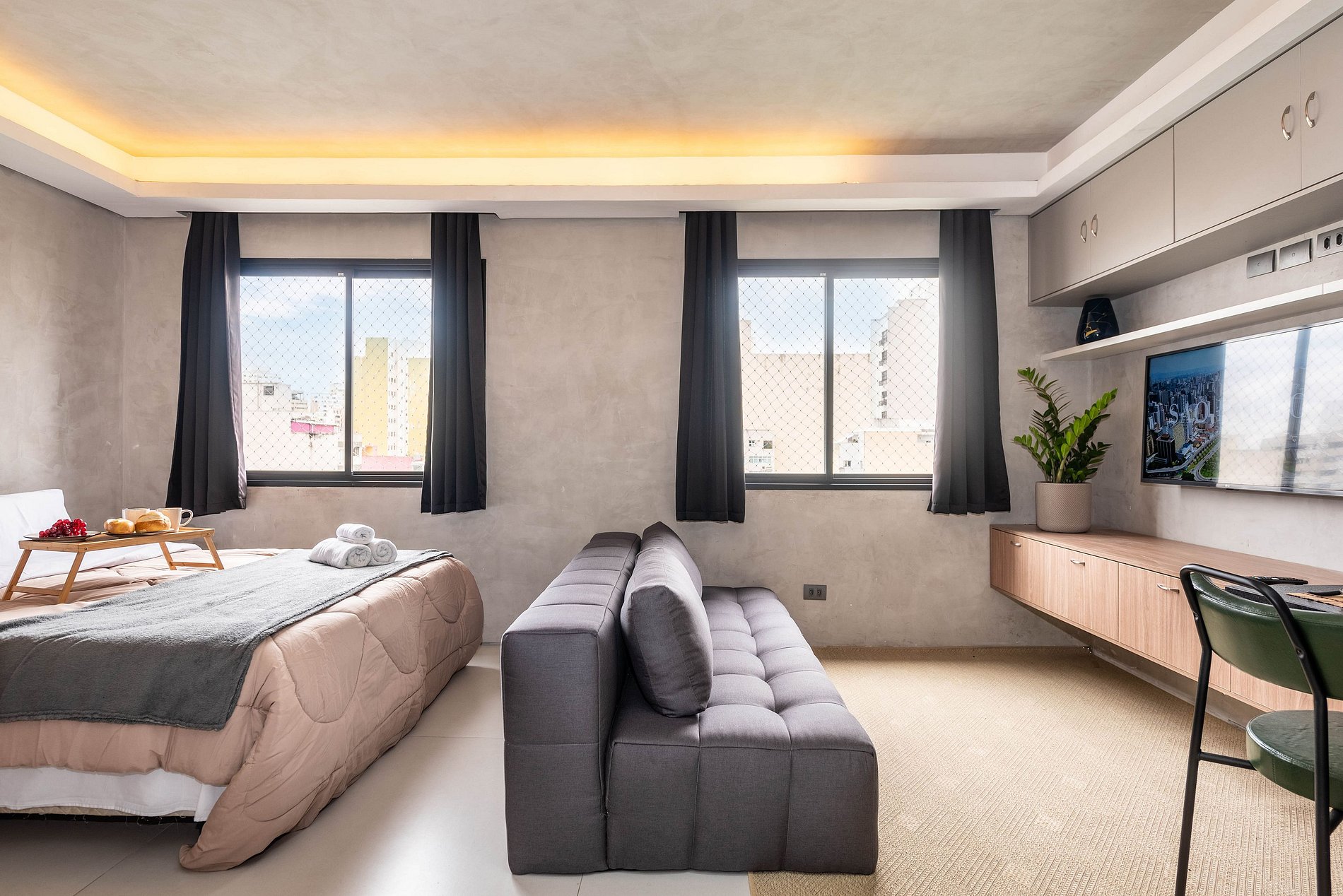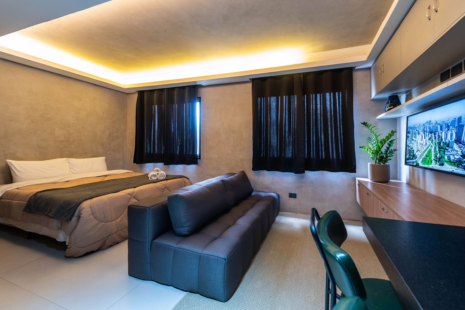 Aproveite a Bela Vista em um studio moderno, aconchegante e planejado para dois. Compacto na medida certa, oferece cama confortável, sofá acolhedor, cozinha equipada e banheiro funcional, garantindo praticidade e bem-estar durante toda a sua estadia.