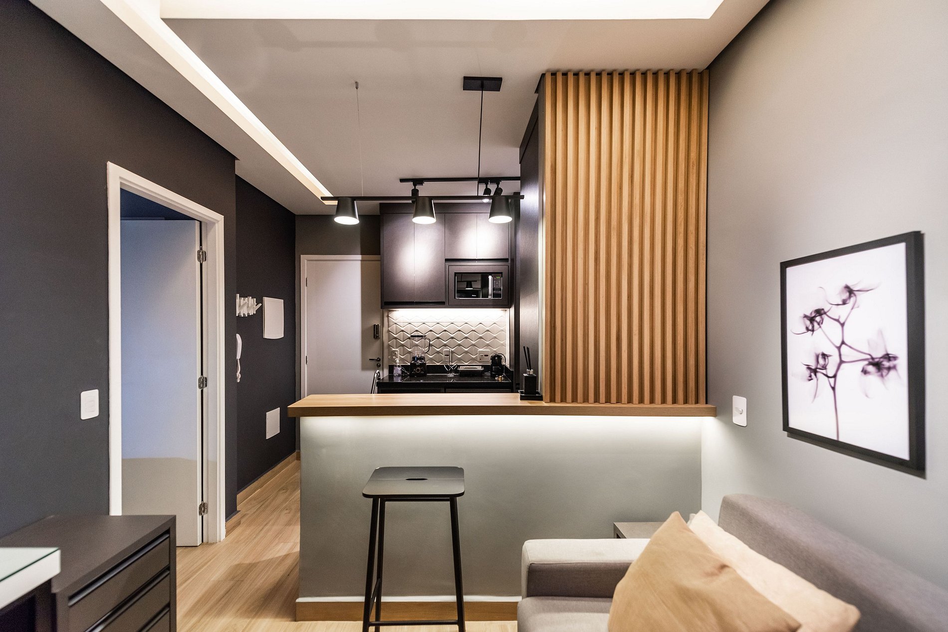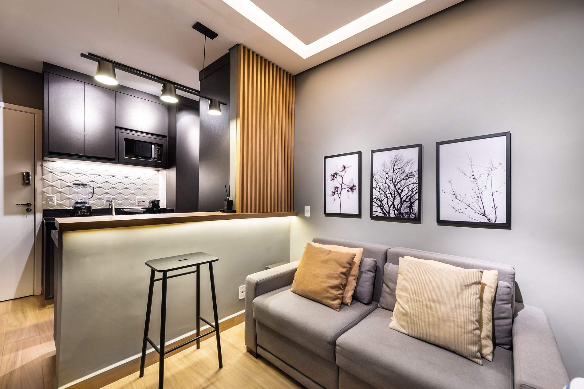 ・Cozinha completa: equipada com geladeira, fogão de indução, forno elétrico, micro-ondas etc.