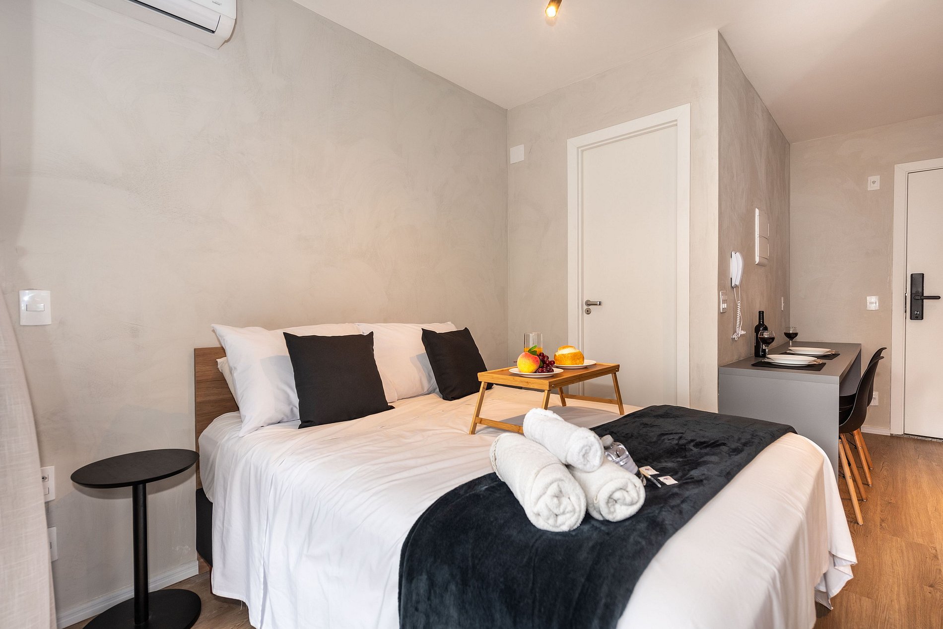 Studio completo para até duas pessoas, equipado com tudo o que você precisa para uma boa estadia. Compacto e funcional, o espaço oferece cama confortável, cozinha com itens básicos, banheiro privativo e ambiente aconchegante. Ideal para quem busca praticidade e conforto.
