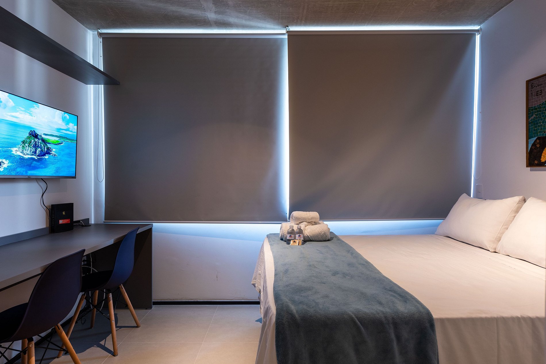 ATENÇÃO: O estúdio está equipado com ar-condicionado, que está operando normalmente no momento. Entretanto, é importante observar que devido a questões estruturais recorrentes no condomínio, pode haver interrupções em seu funcionamento. Essas ocorrências são comuns no prédio, e, infelizmente, quando ocorrem, não temos controle sobre a resolução imediata do problema.