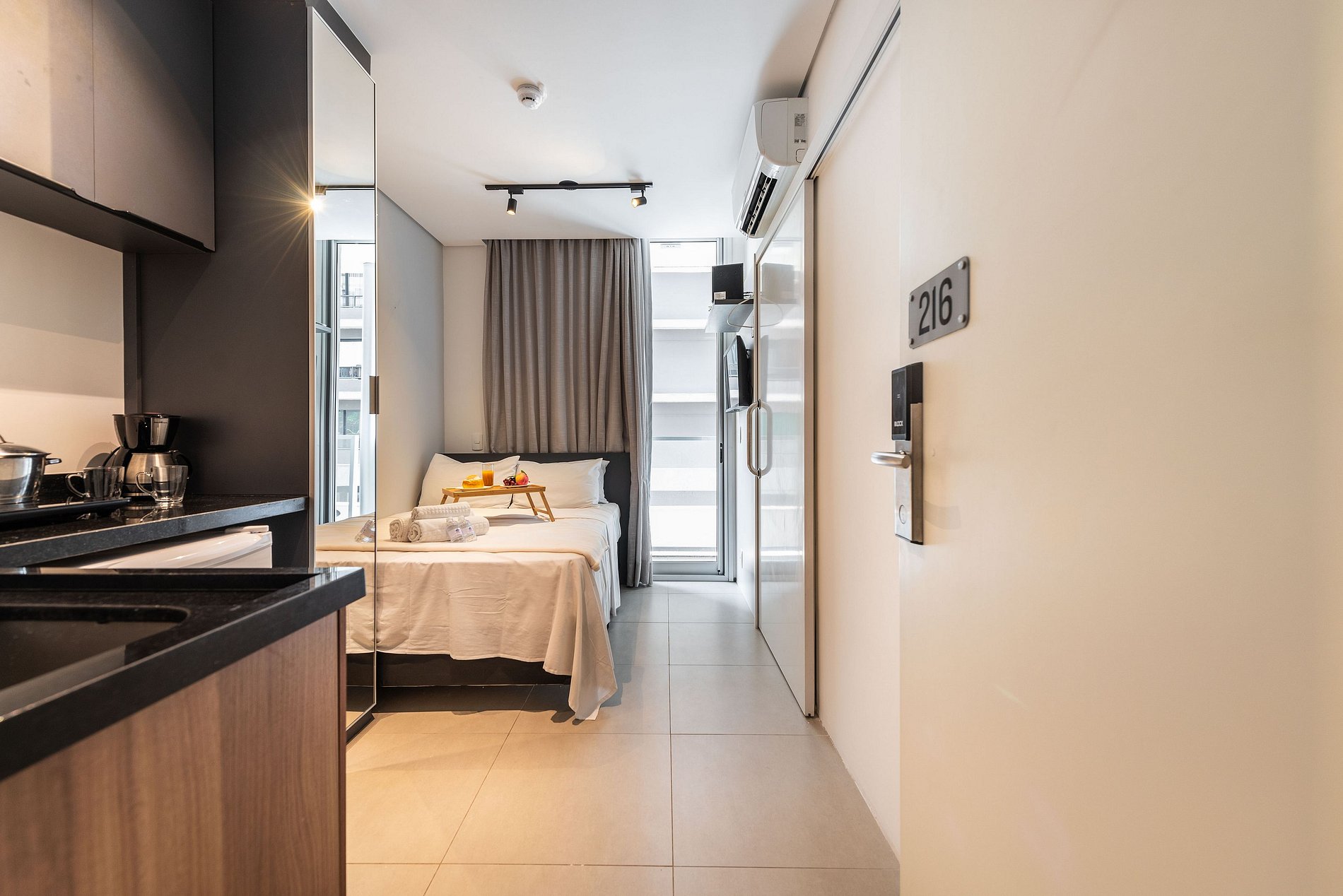 Desfrute da praticidade e do aconchego deste estúdio funcional, perfeito para duas pessoas. Equipado com tudo que você precisa para uma estadia tranquila, este espaço proporciona conforto e comodidade para uma experiência memorável.