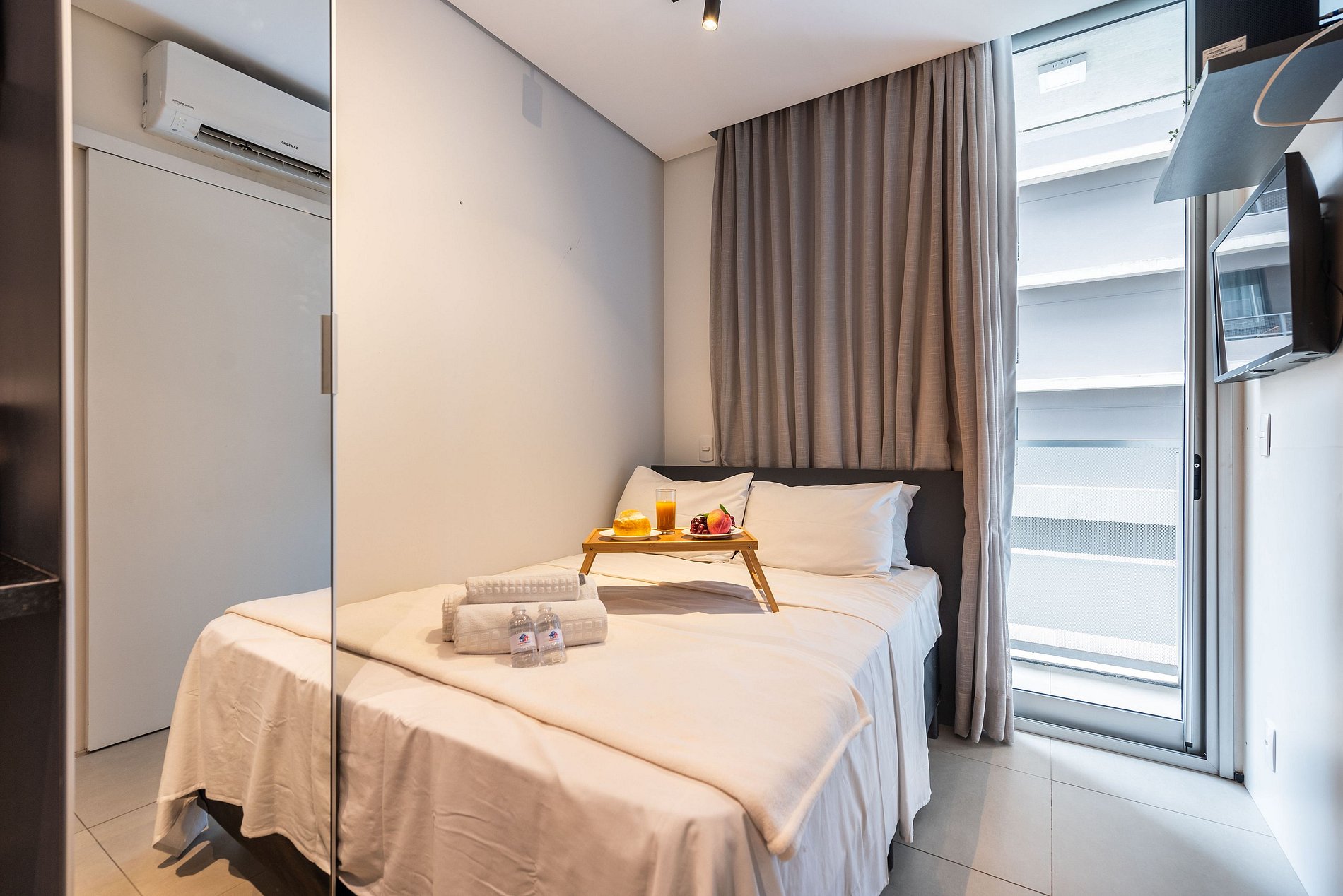 ATENÇÃO: O estúdio está equipado com ar-condicionado, que está operando normalmente no momento. Entretanto, é importante observar que devido a questões estruturais recorrentes no condomínio, pode haver interrupções em seu funcionamento. Essas ocorrências são comuns no prédio, e, infelizmente, quando ocorrem, não temos controle sobre a resolução imediata do problema.