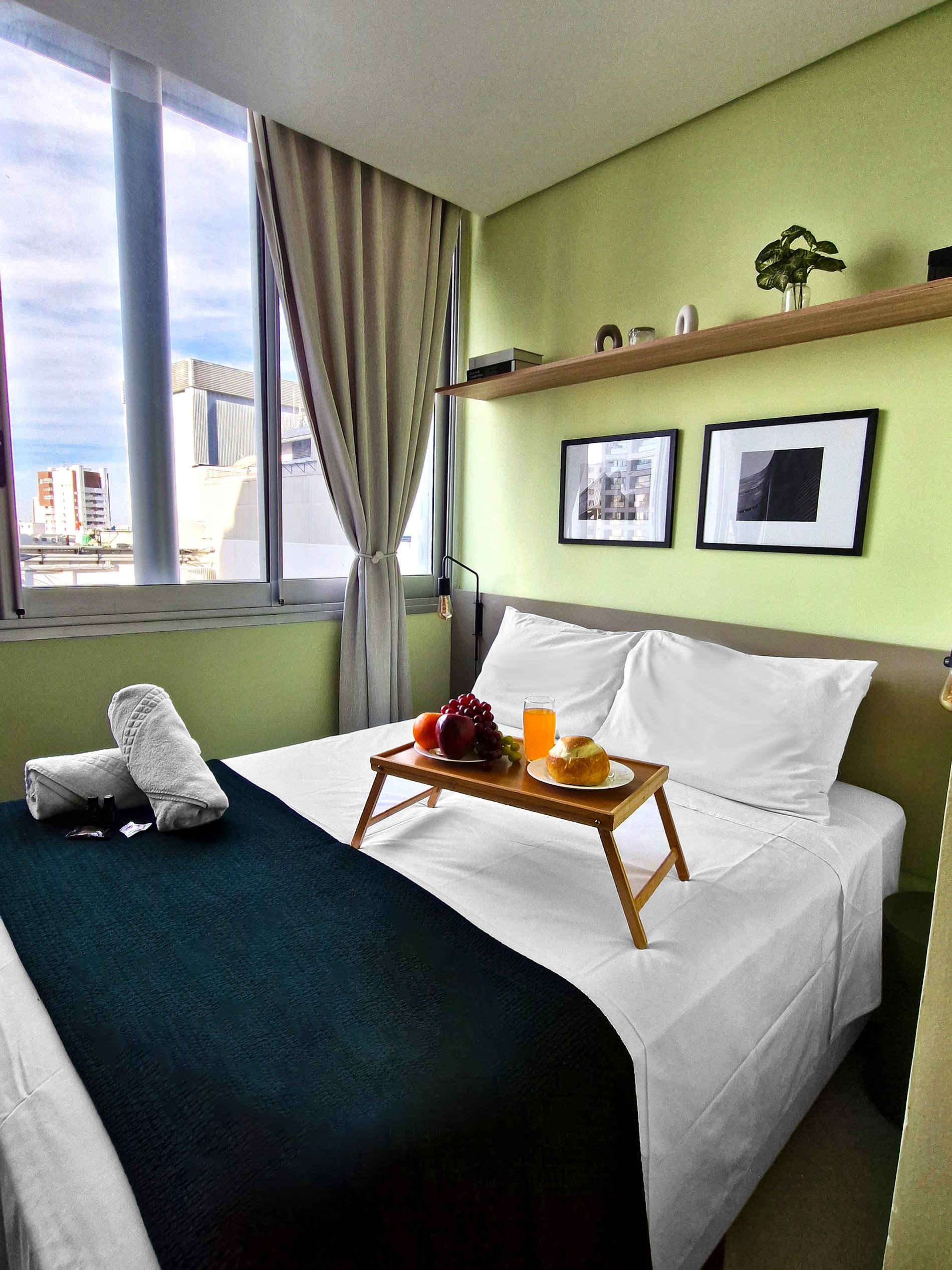 "Desfrute da praticidade e do aconchego deste estúdio funcional, perfeito para duas pessoas. Equipado com tudo que você precisa para uma estadia tranquila, este espaço proporciona conforto e comodidade para uma experiência memorável."