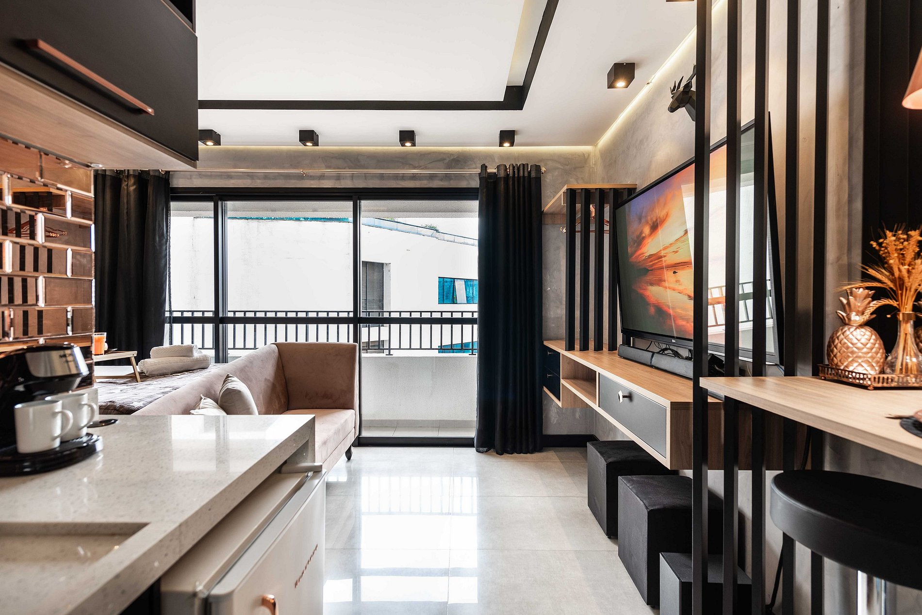 Explore nosso estúdio acolhedor, projetado para proporcionar uma estadia tranquila para quatro pessoas. Com o básico necessário para o conforto, este espaço é perfeito para uma escapada relaxante na cidade.