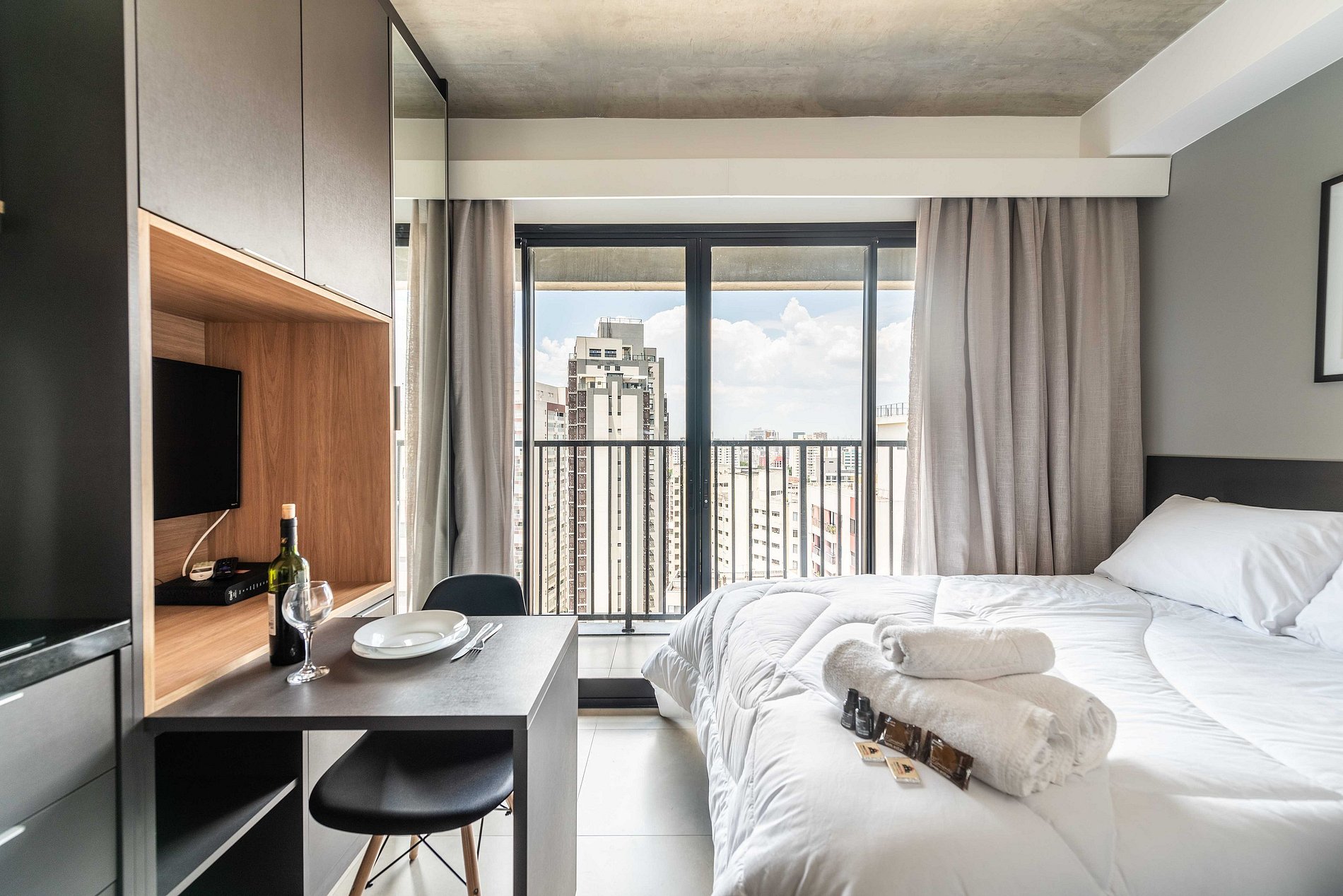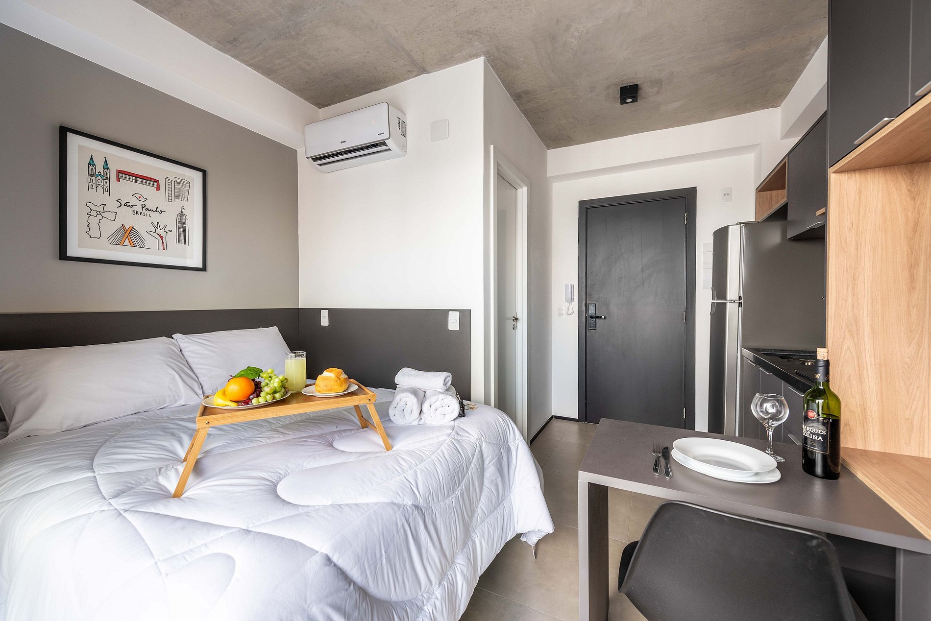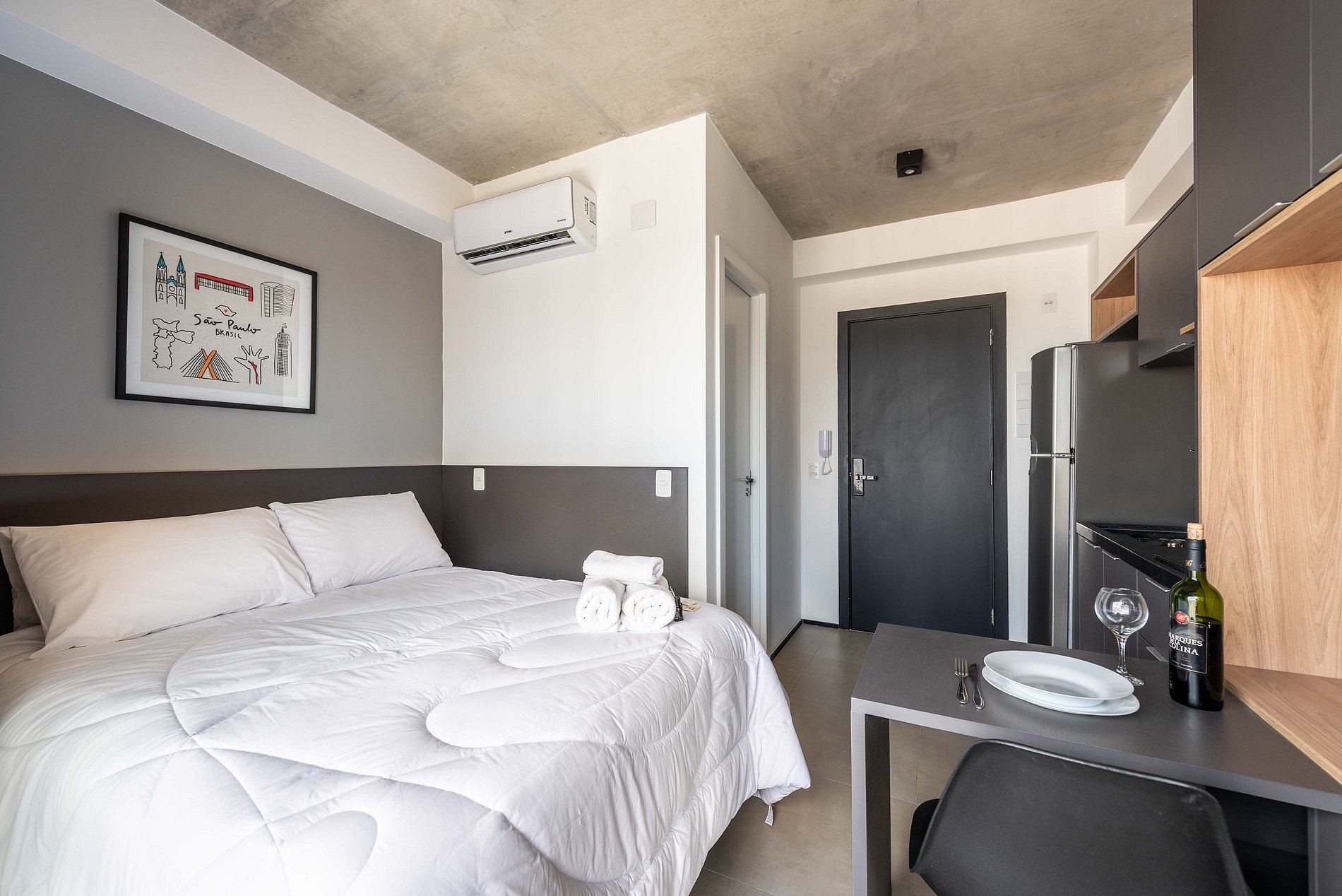 Descubra nosso encantador studio, cuidadosamente mobiliado para uma estadia confortável. Com todas as comodidades essenciais para uma experiência agradável, este espaço oferece o básico necessário para sua estadia, garantindo conforto e conveniência.