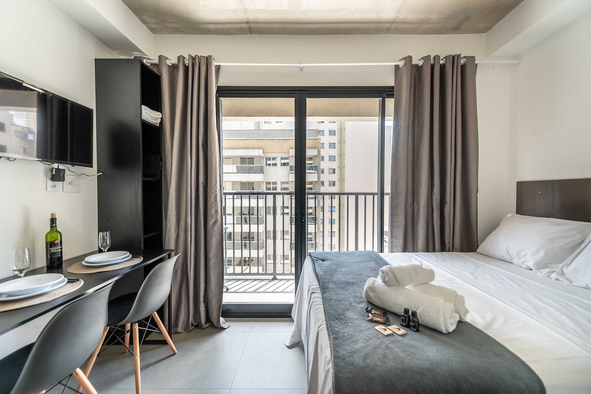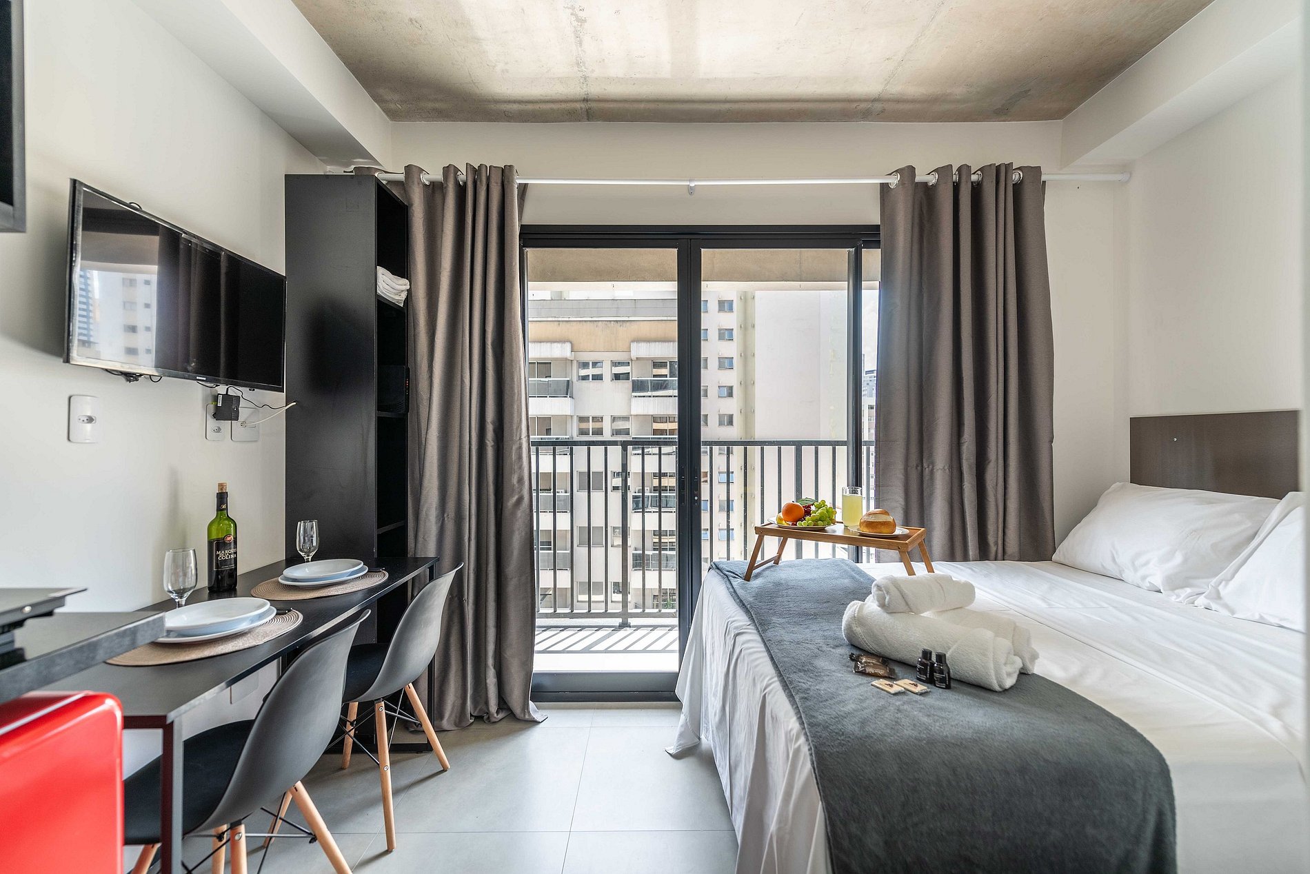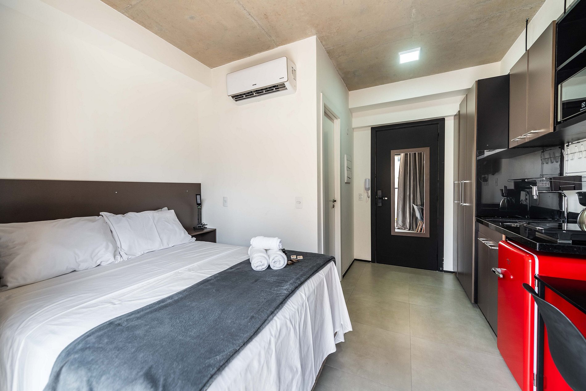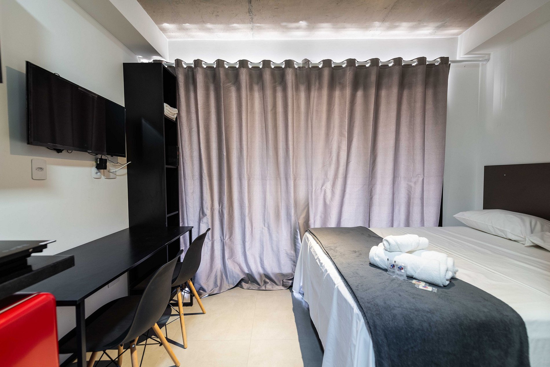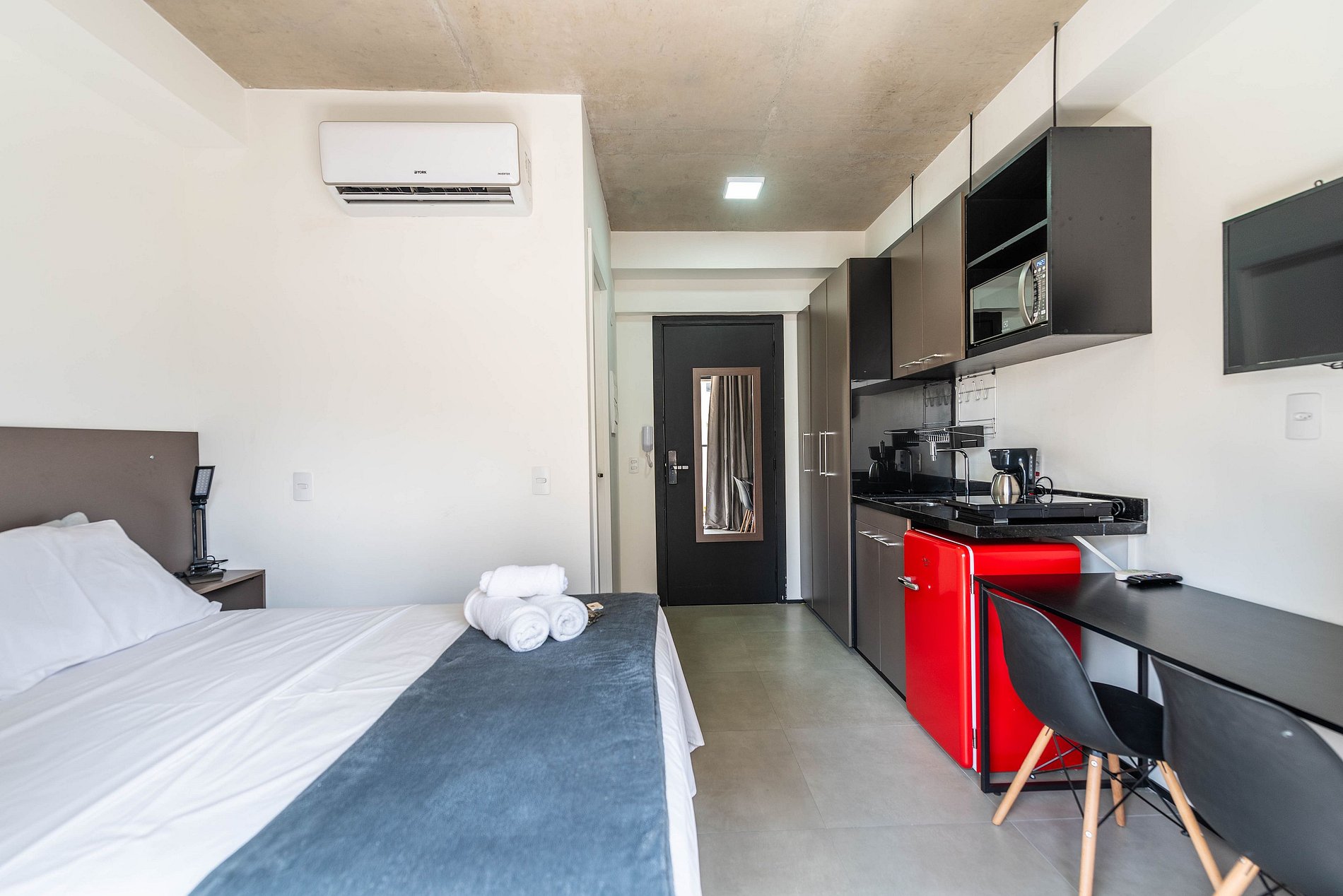 Descubra nosso encantador studio, cuidadosamente mobiliado para uma estadia confortável. Com todas as comodidades essenciais para uma experiência agradável, este espaço oferece o básico necessário para sua estadia, garantindo conforto e conveniência.