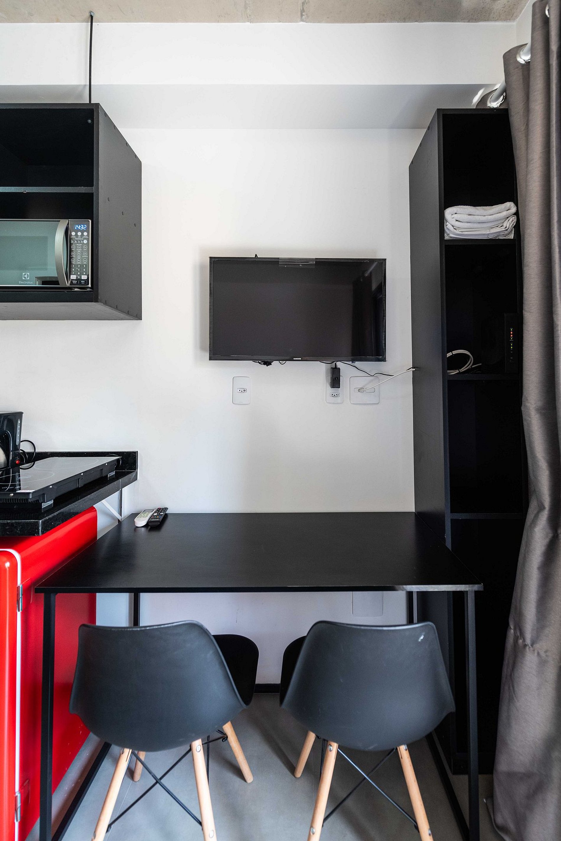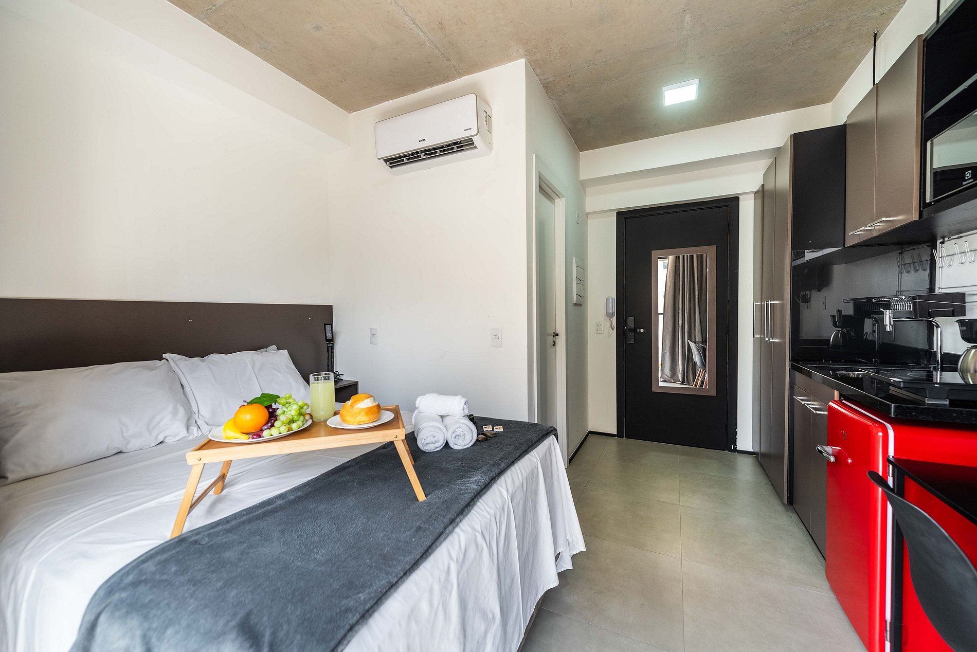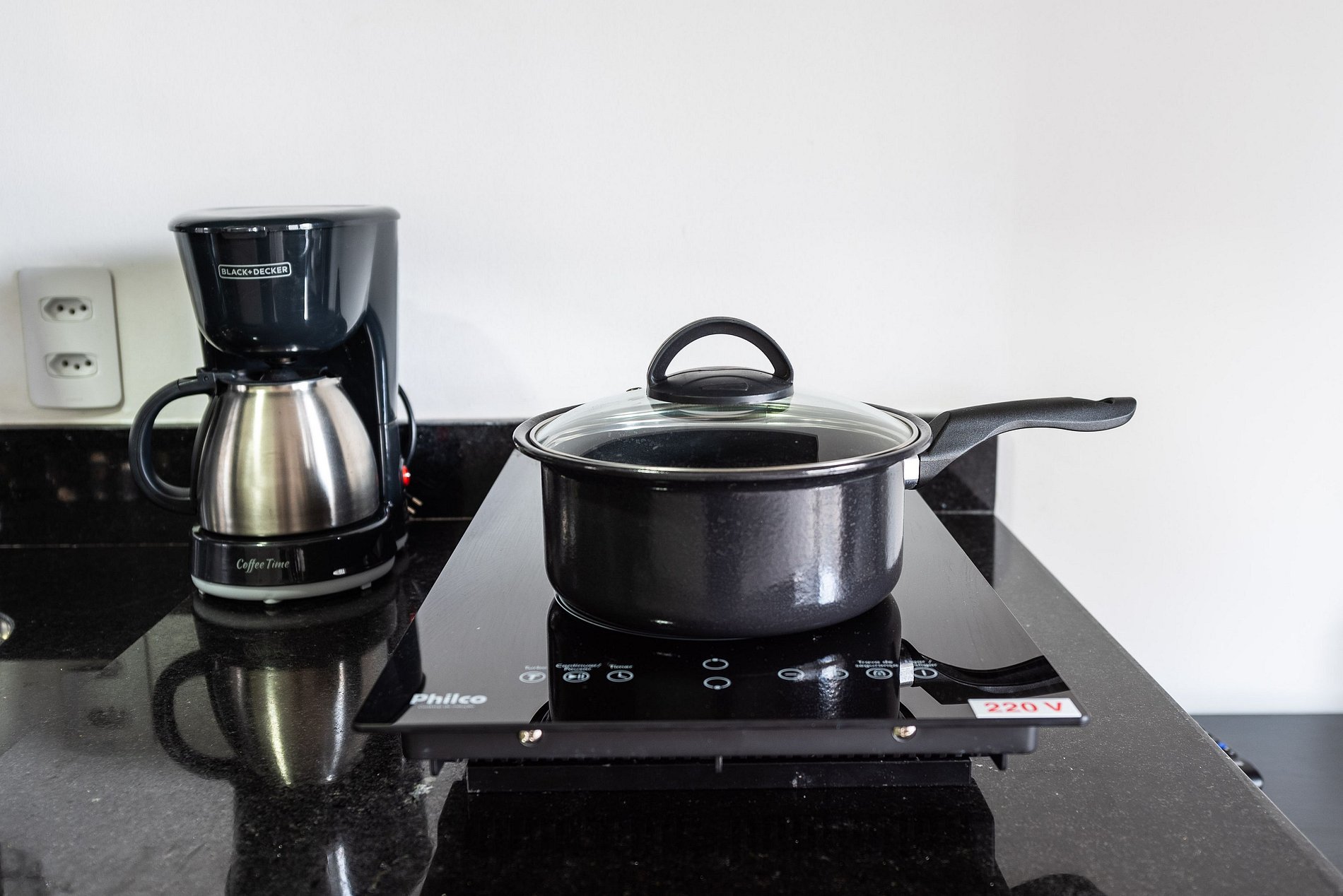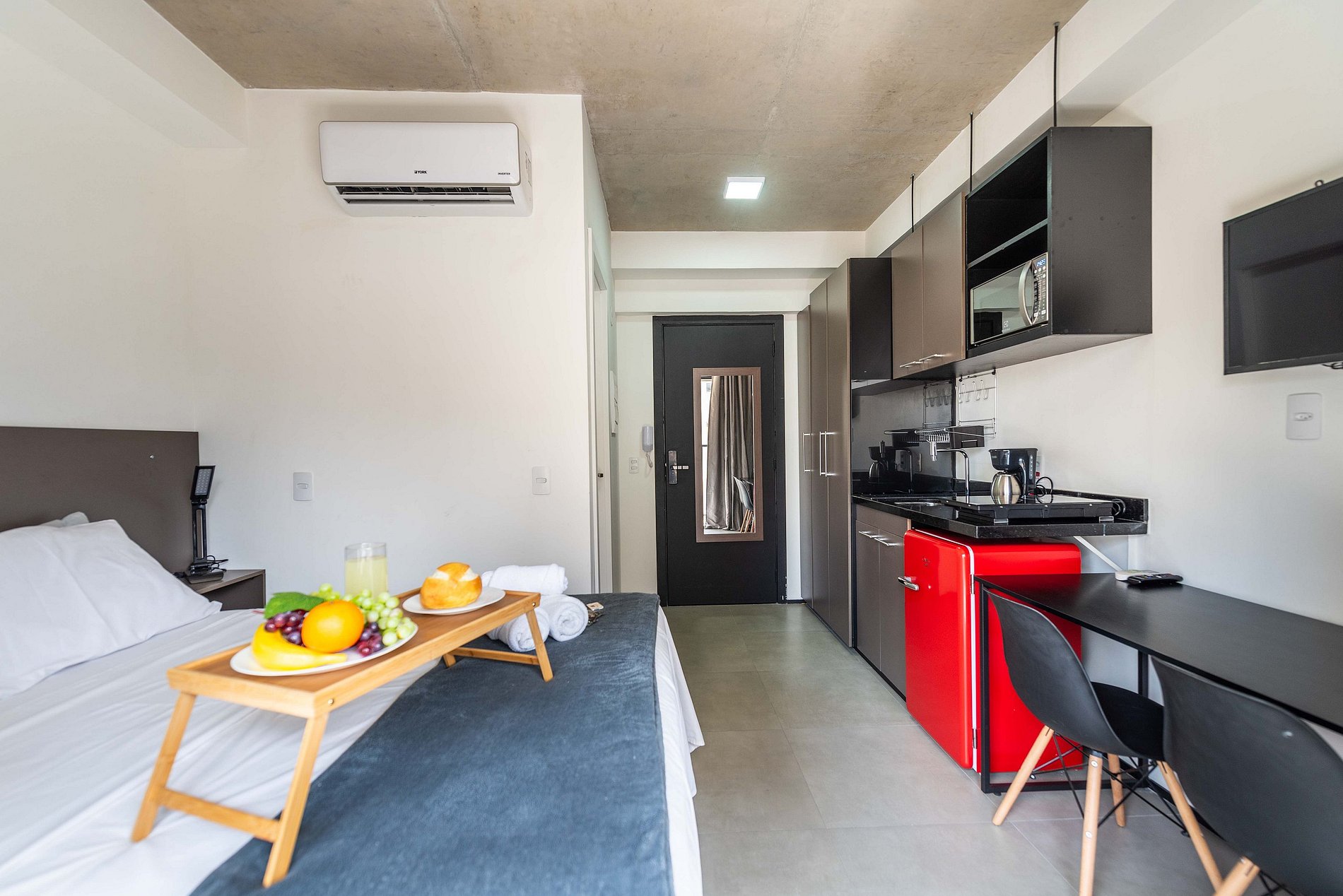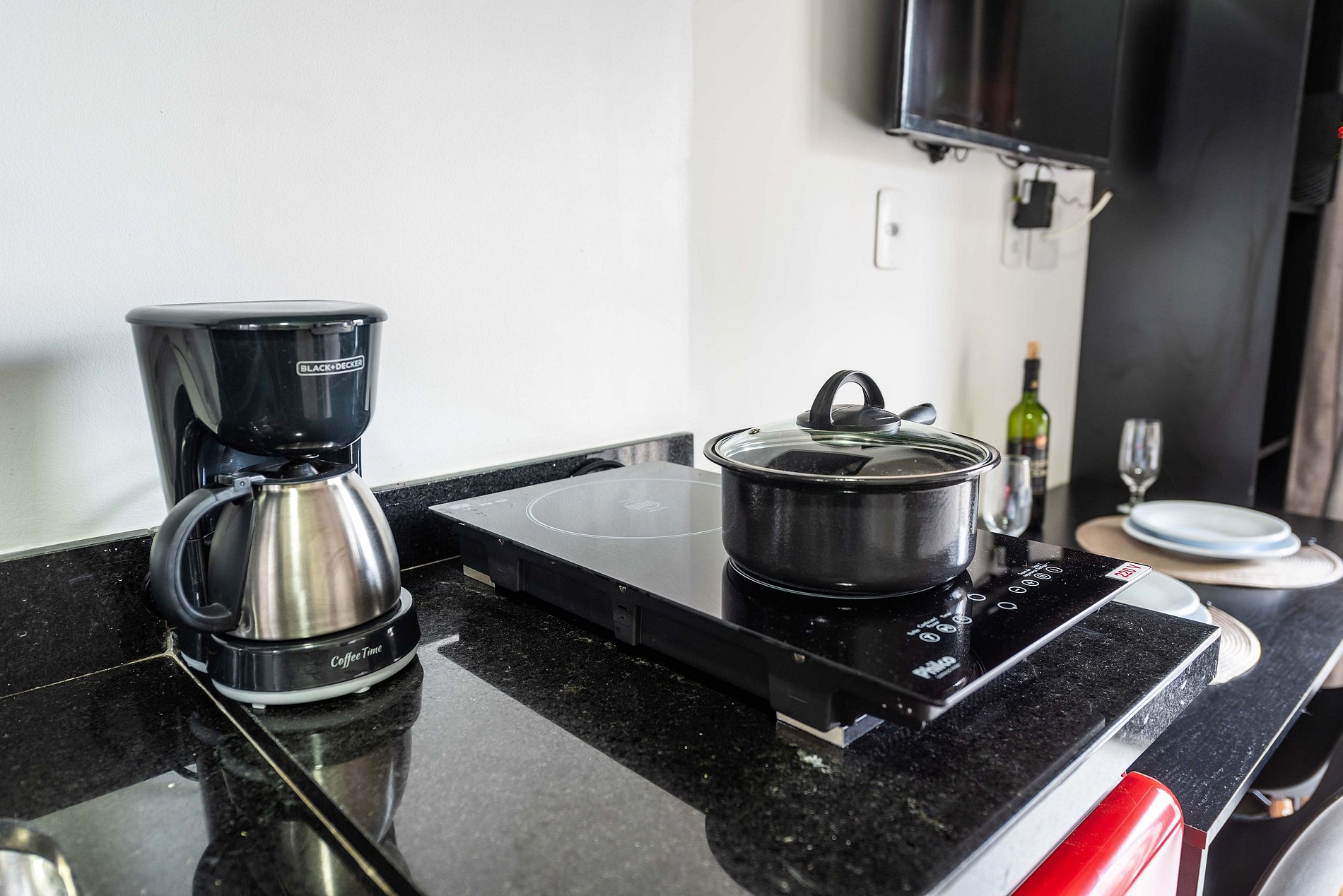 ・Cozinha completa: equipada com frigobar, fogão de indução, micro-ondas etc.