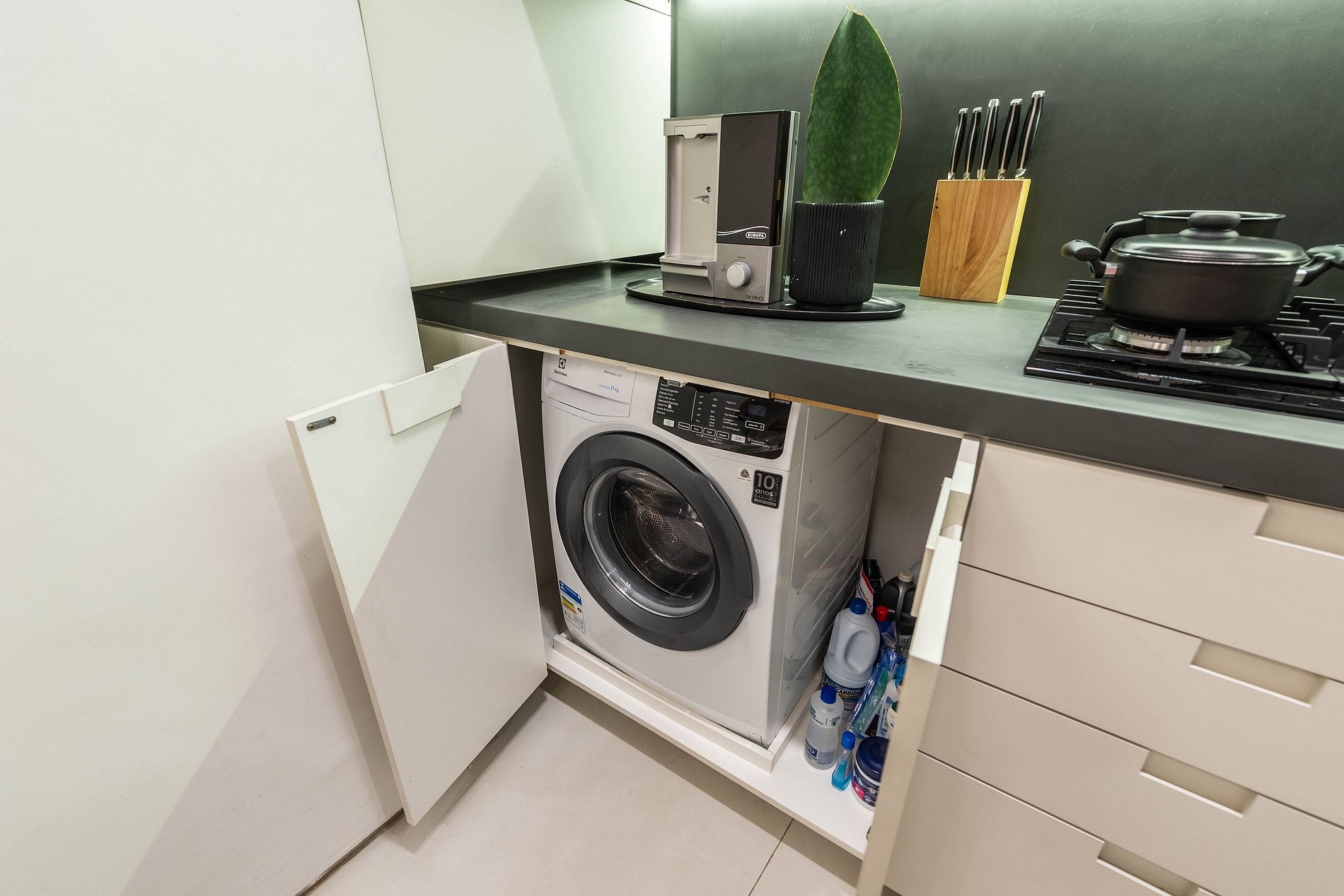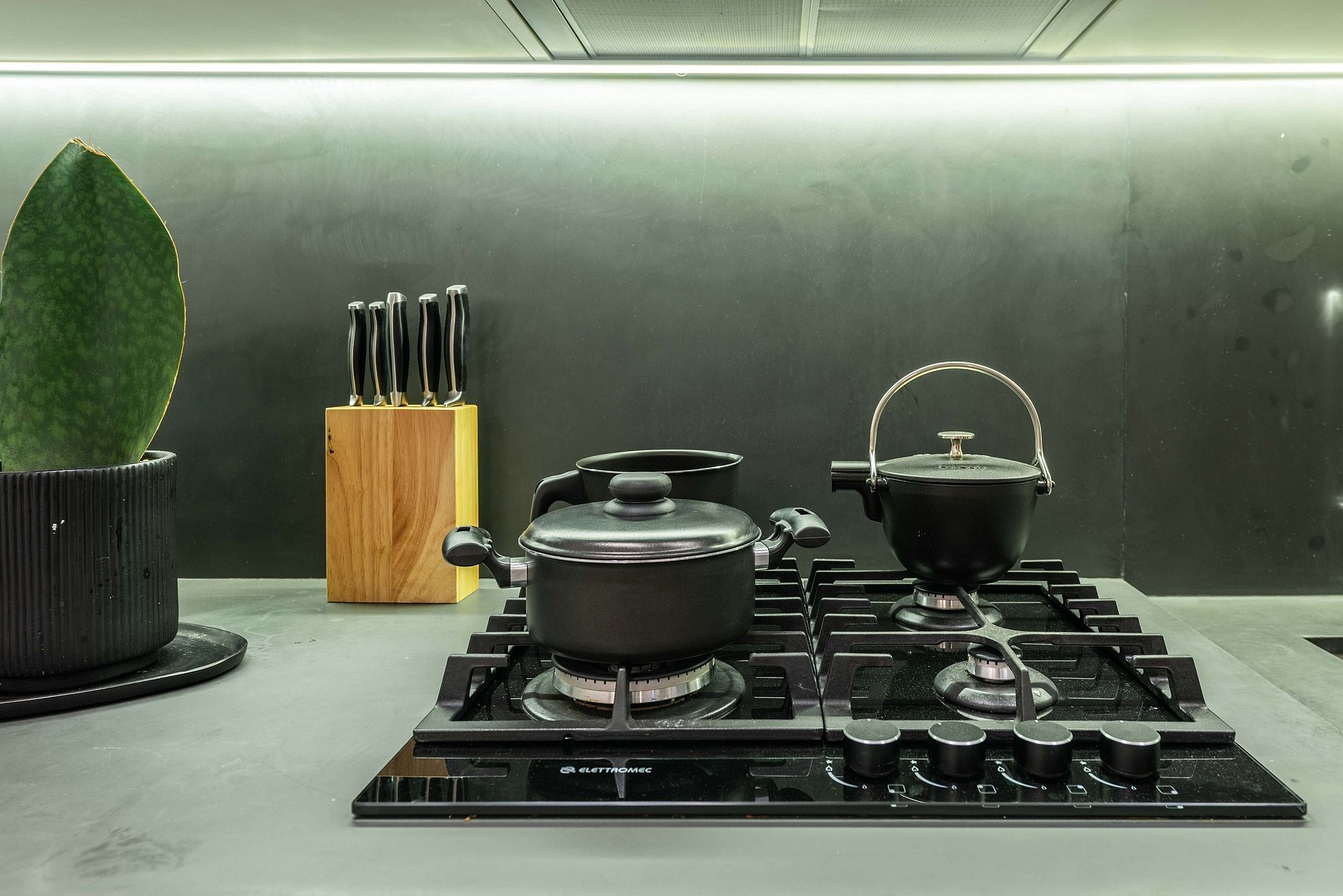 ・Cozinha completa: equipada com geladeira, fogão de indução, micro-ondas etc.