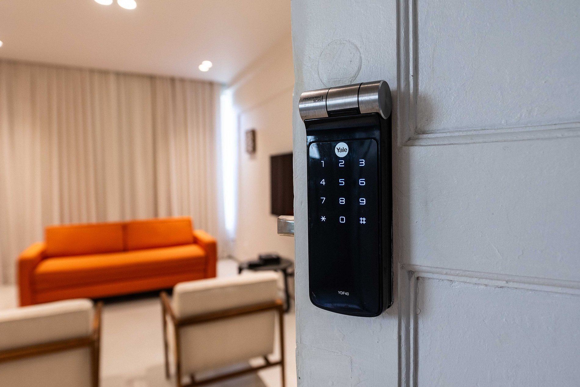 A entrada é realizada através de uma fechadura eletrônica, garantindo acesso total tanto ao apartamento quanto às comodidades do prédio.