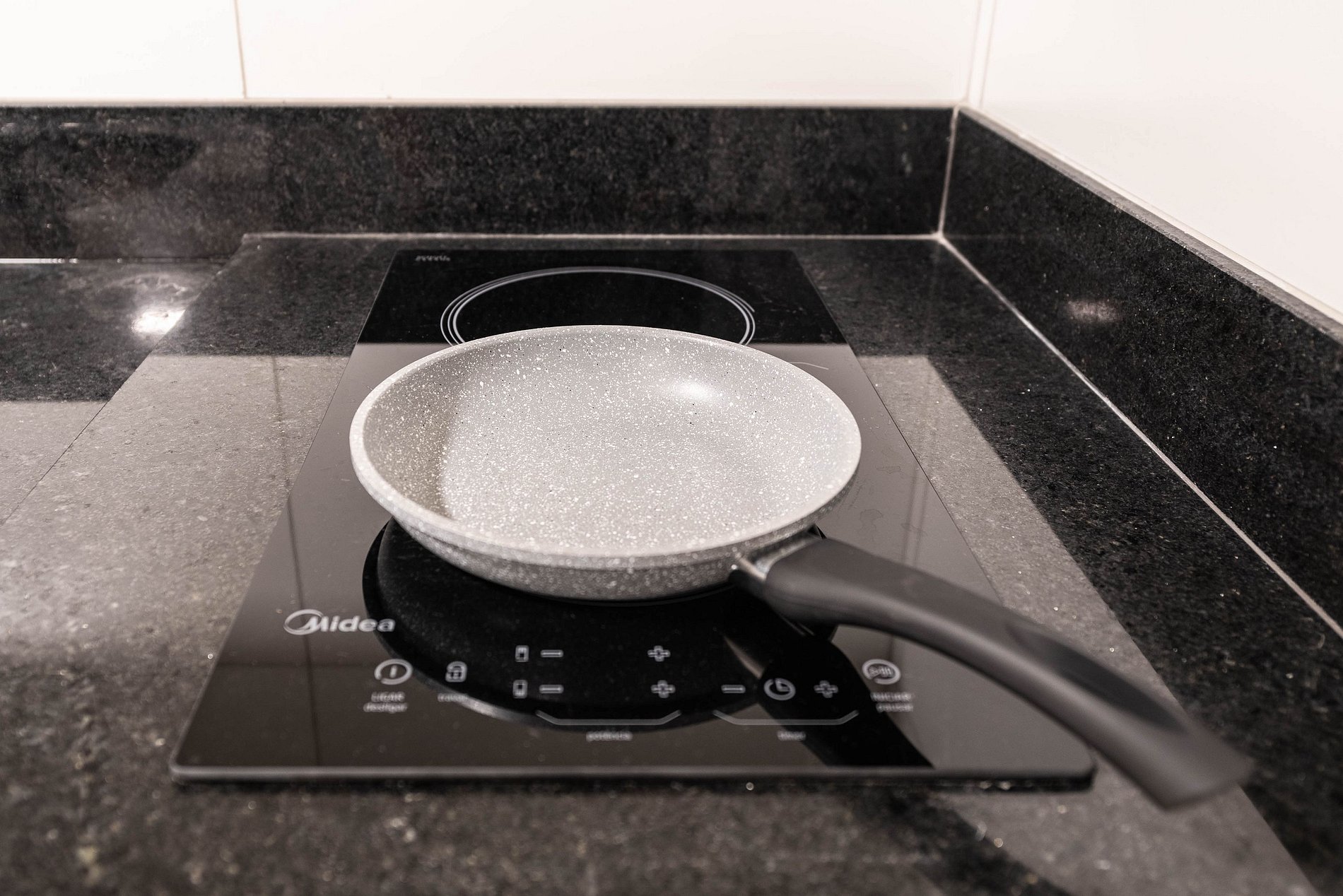 ・Cozinha completa: equipada com geladeira, fogão de indução, micro-ondas etc.