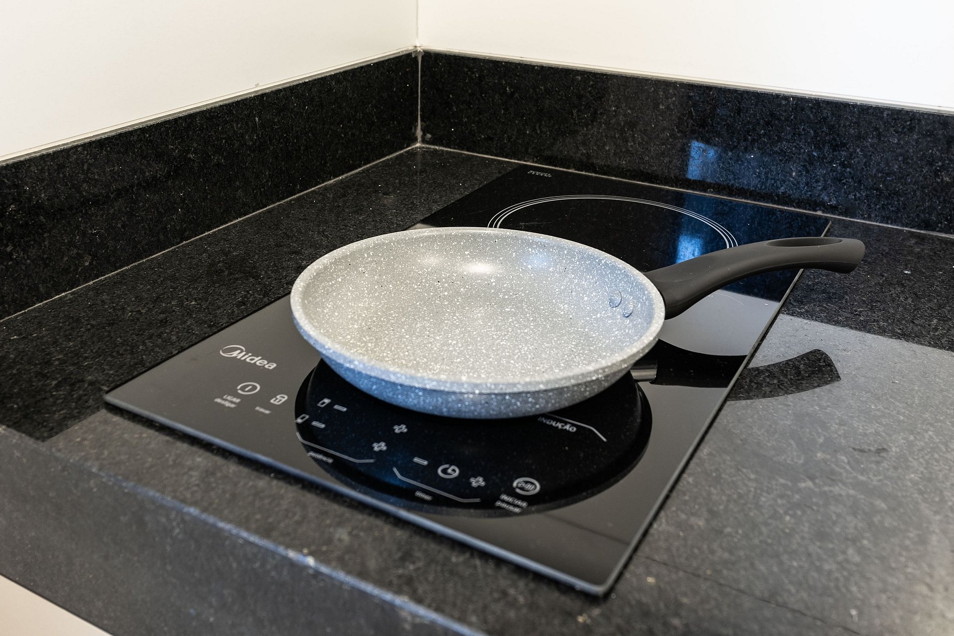 ・Cozinha completa: equipada com geladeira, fogão de indução, micro-ondas etc.