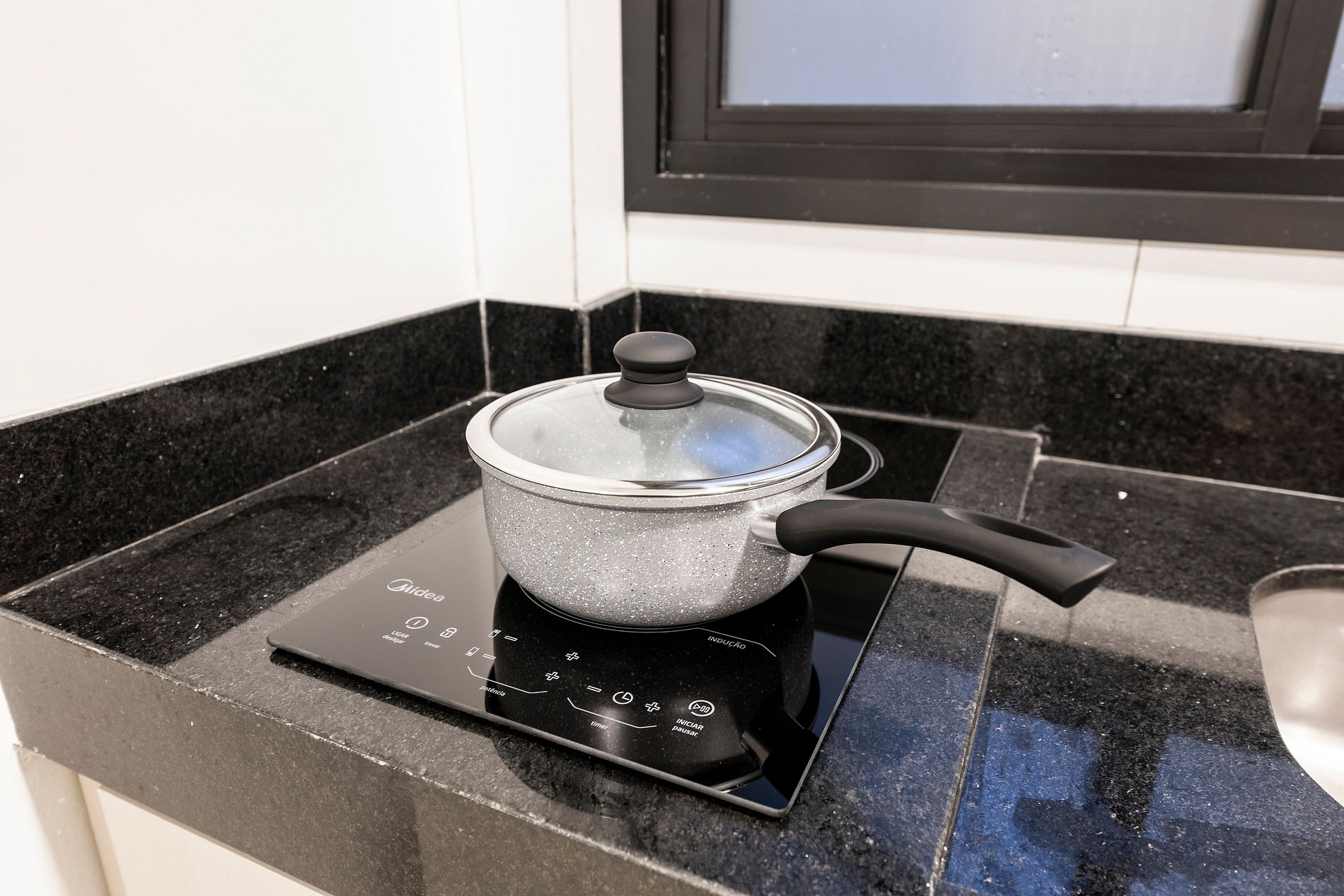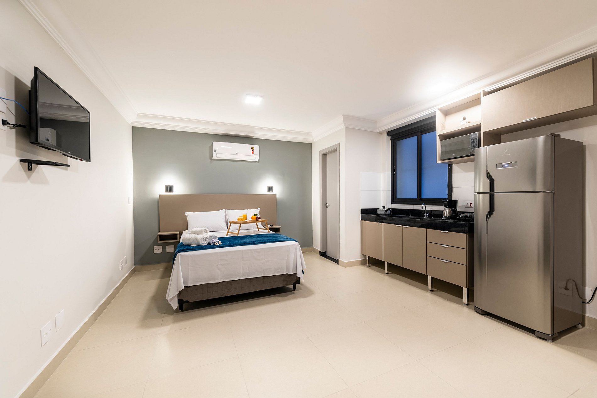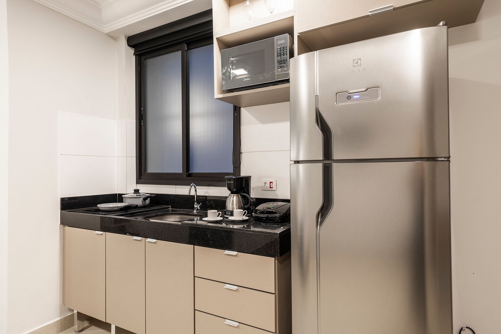 ・Cozinha completa: equipada com geladeira, fogão de indução, micro-ondas etc.