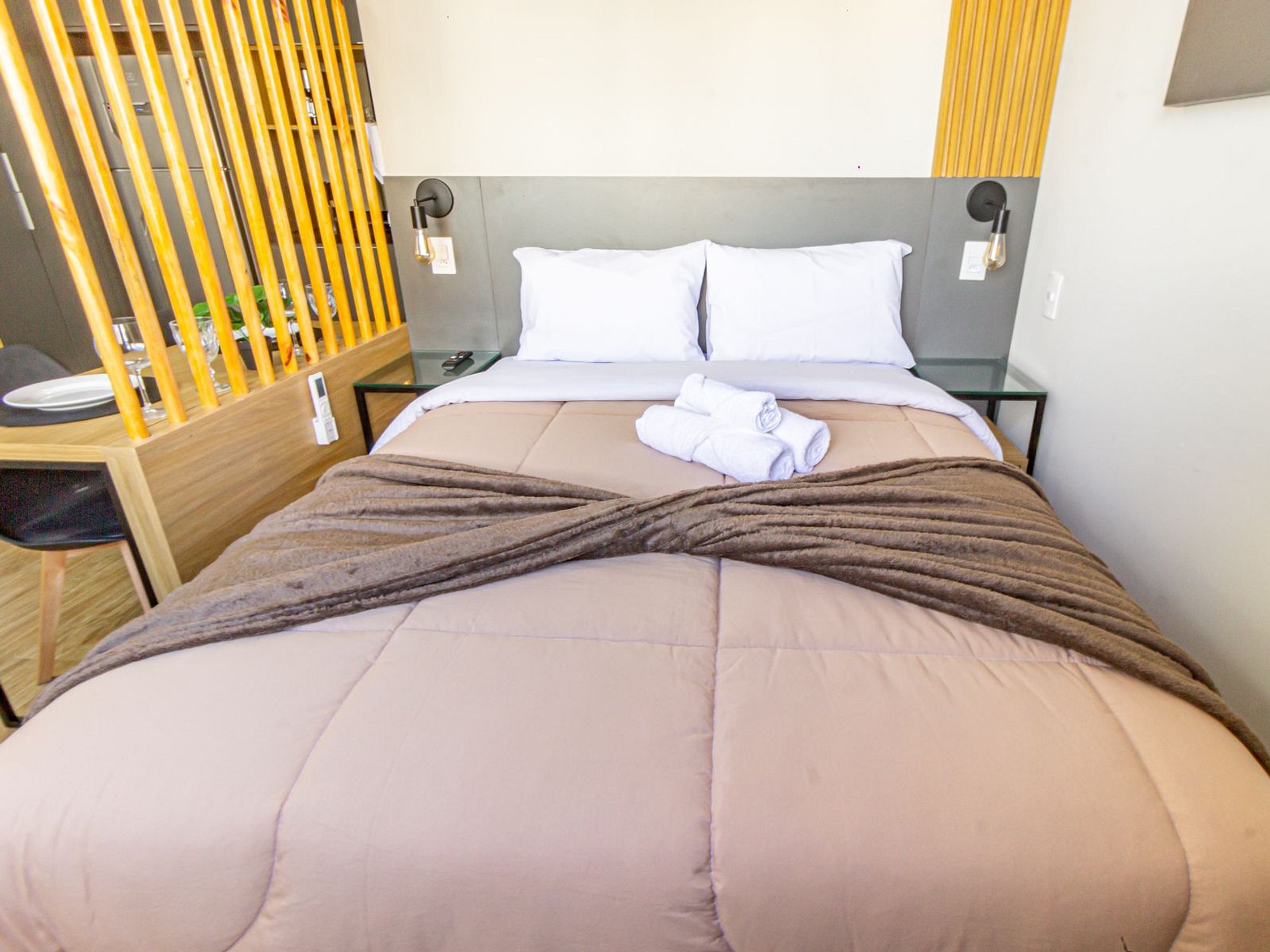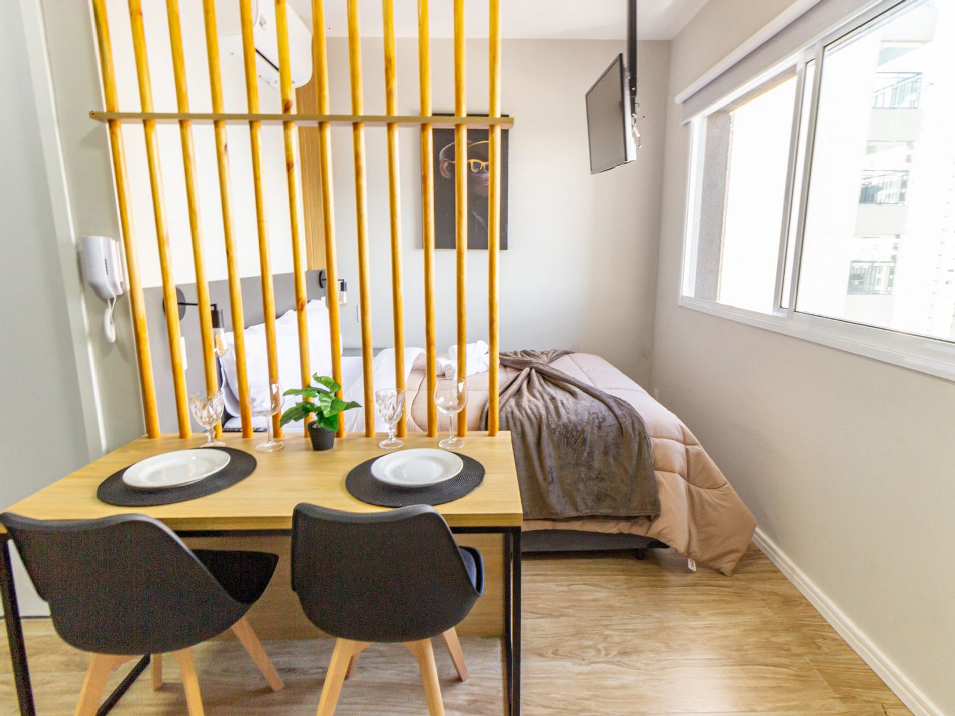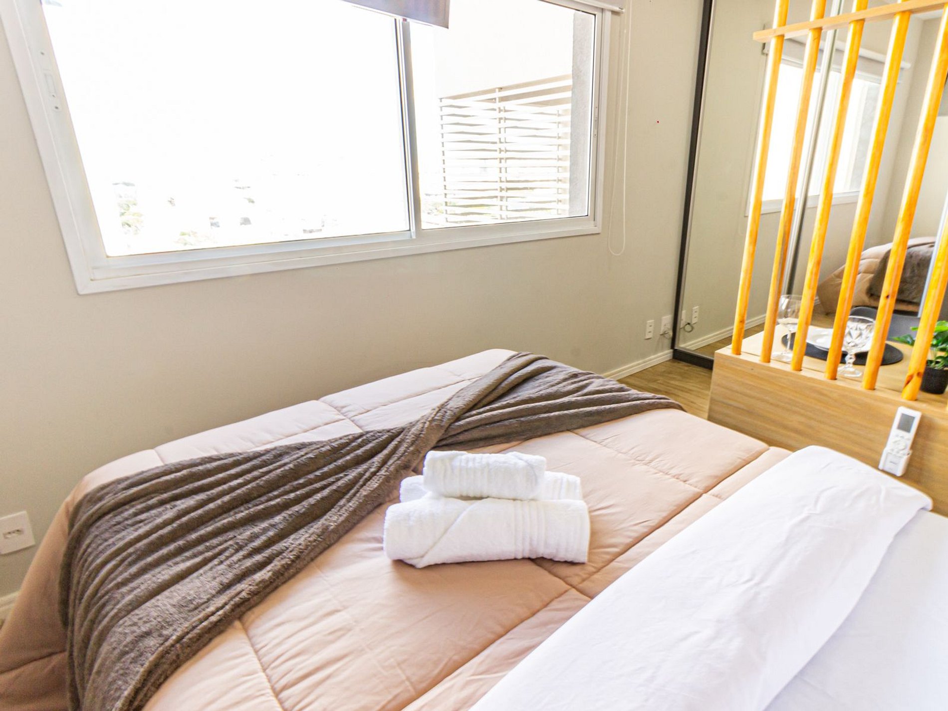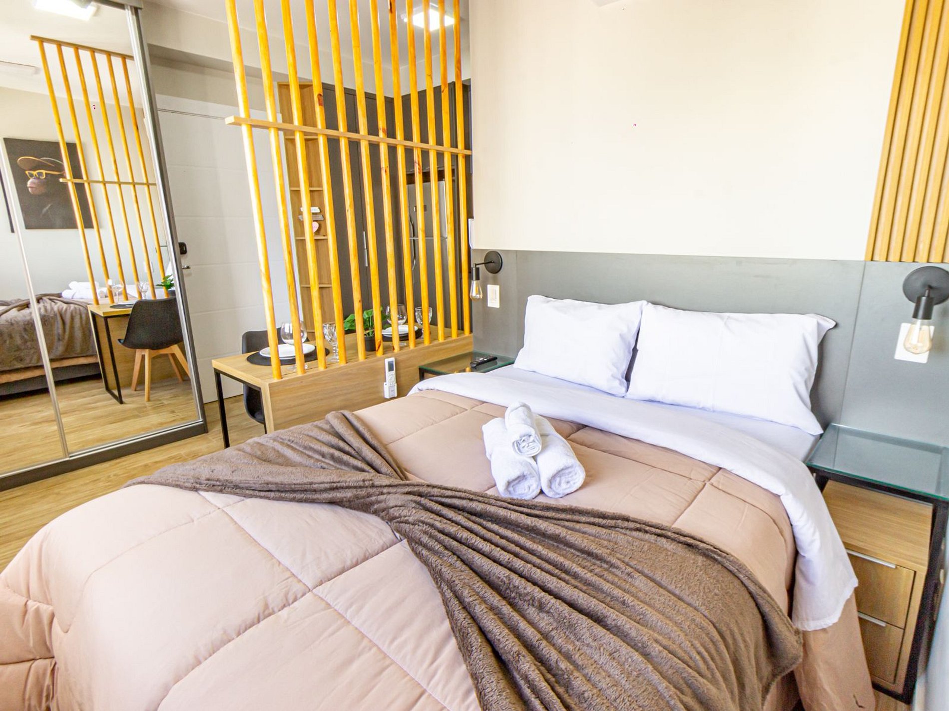 Studio compacto e aconchegante, ideal para duas pessoas. Conta com uma cama confortável, cozinha equipada com utensílios básicos e um banheiro privativo. Ambiente funcional e bem distribuído, perfeito para uma estadia prática e confortável.