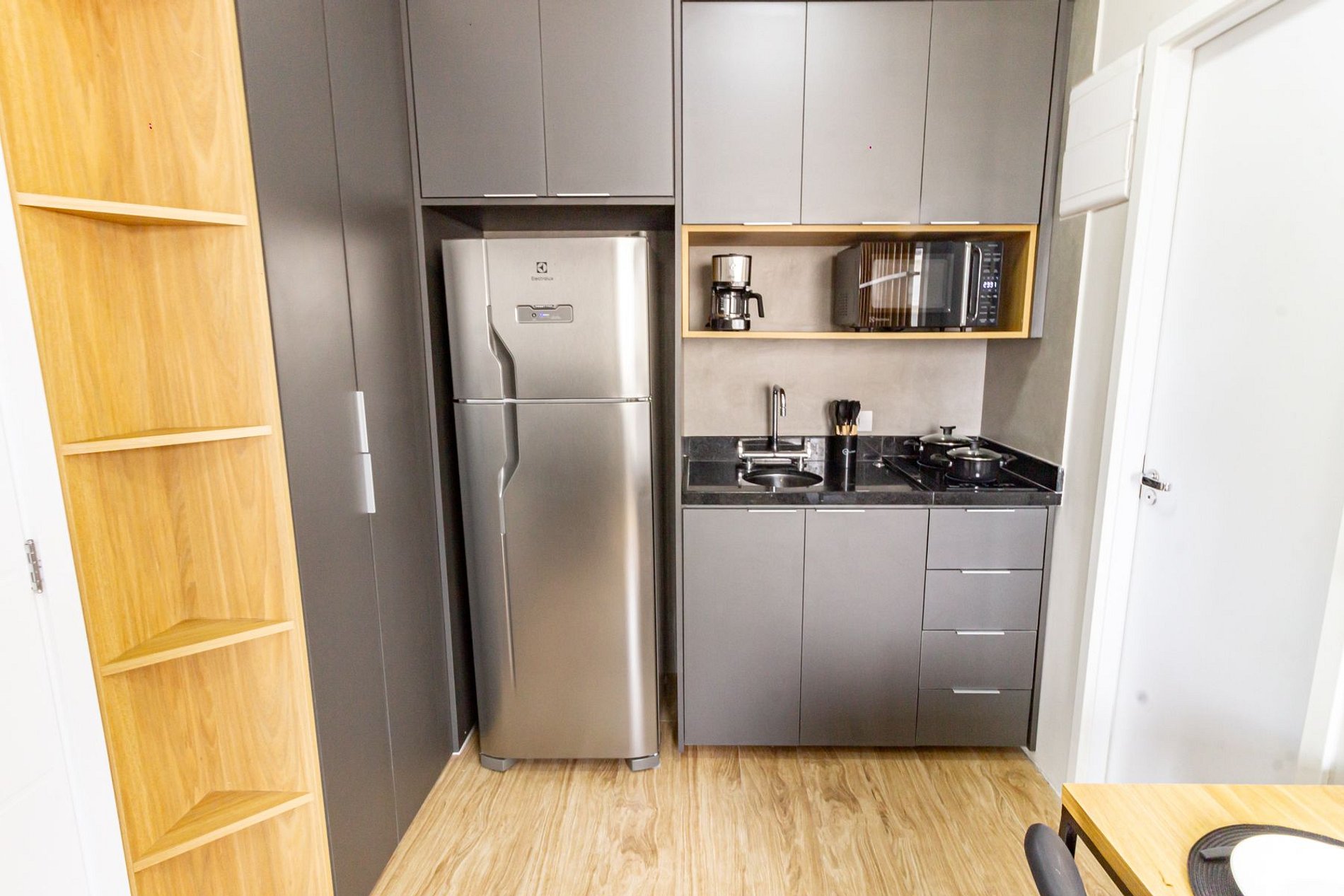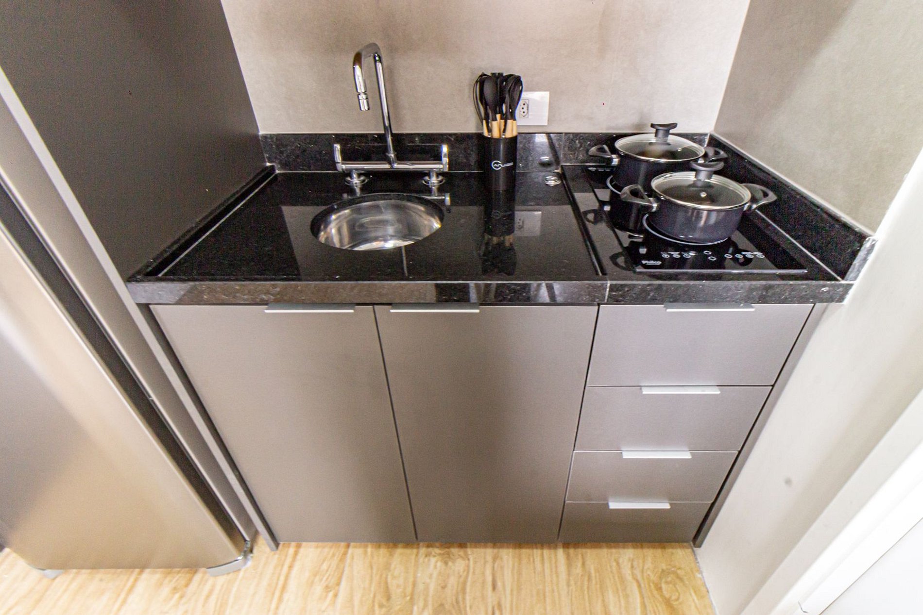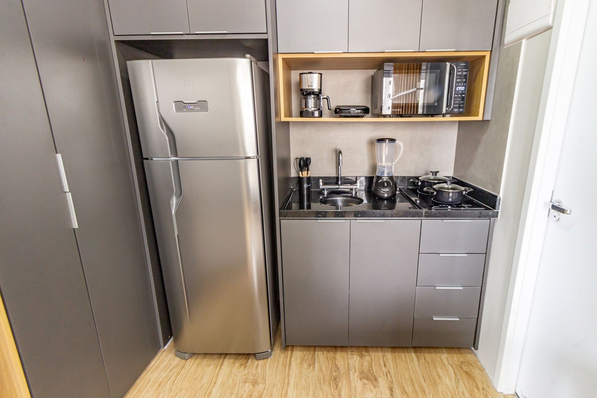 ・Cozinha completa: equipada com geladeira, fogão de indução, micro-ondas etc.