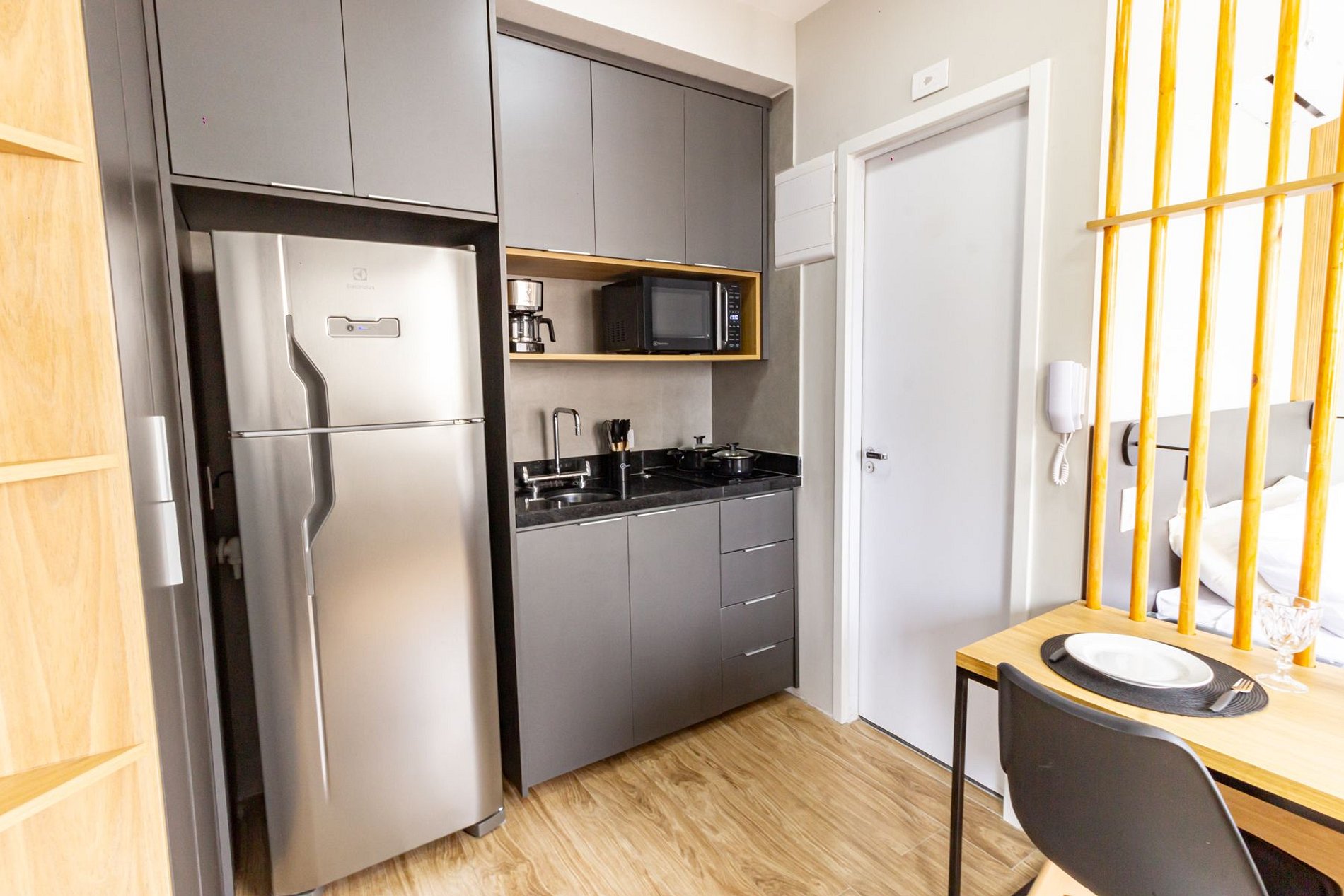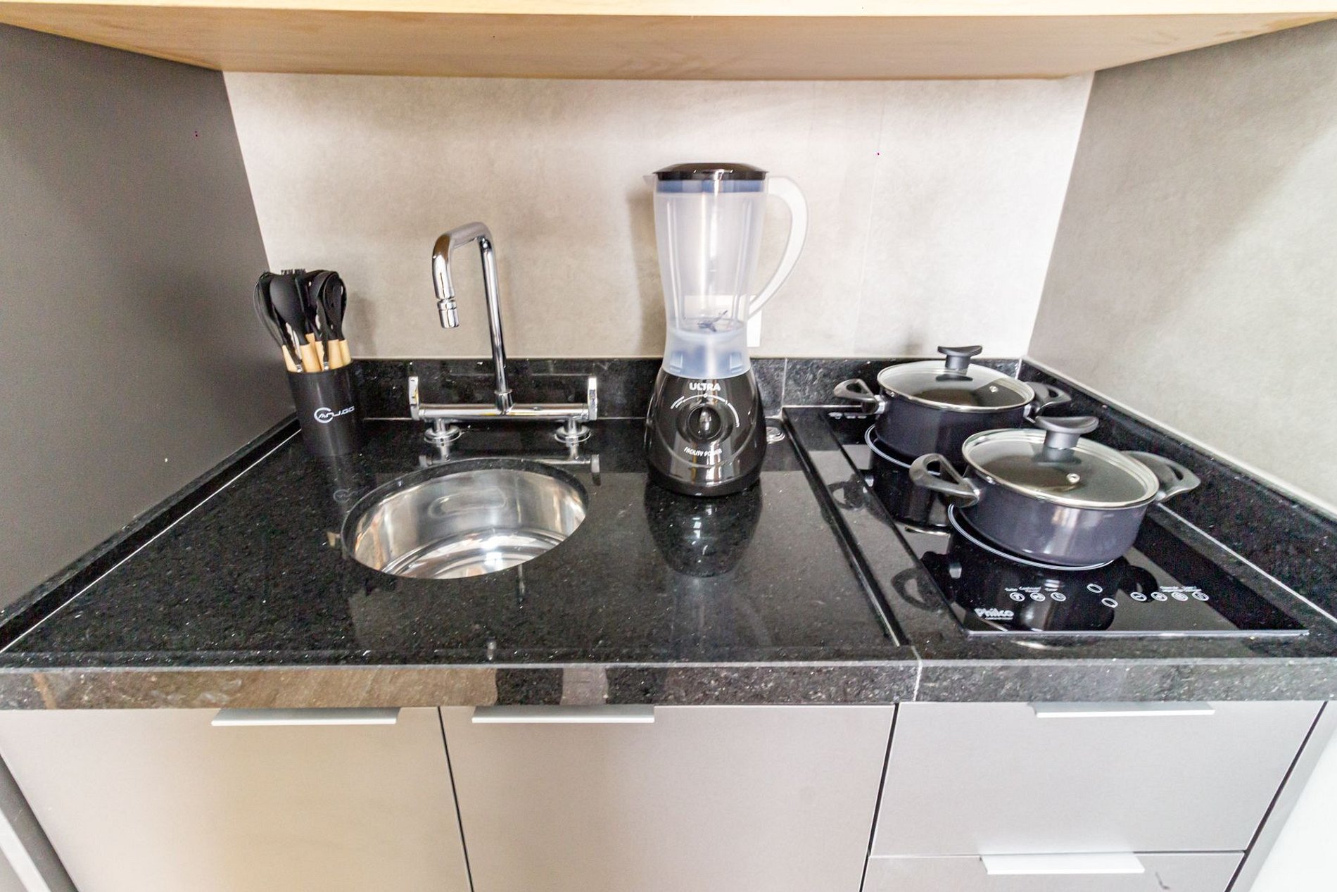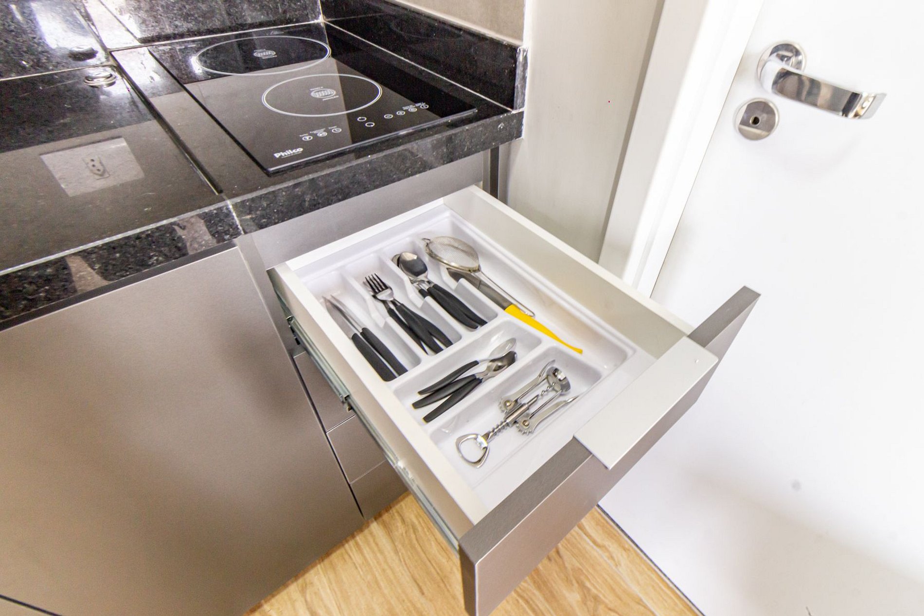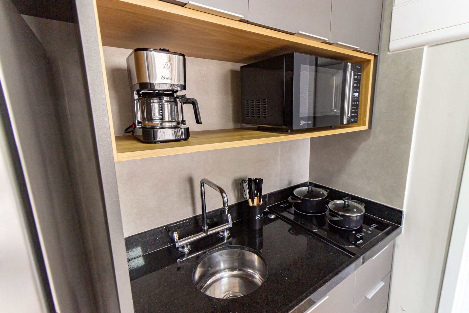 ・Cozinha completa: equipada com geladeira, fogão de indução, micro-ondas etc.
