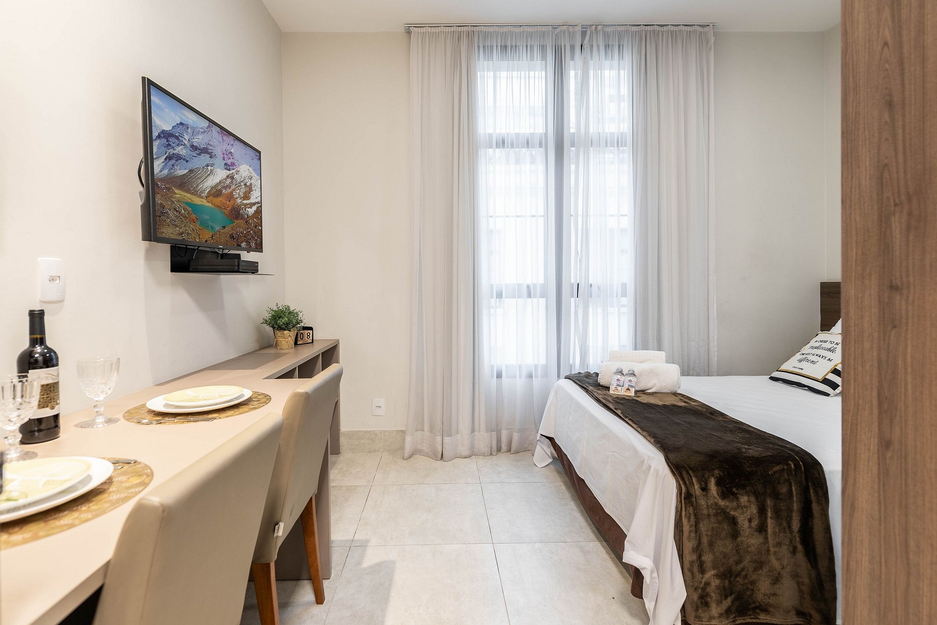 Nosso studio bem equipado oferece o necessário para uma estadia confortável e agradável. Com uma cama aconchegante, uma cozinha funcional e um banheiro moderno, proporcionamos o ambiente ideal para você relaxar e recarregar as energias após um dia explorando a cidade. Convenientemente localizado, nosso studio é o ponto de partida perfeito para descobrir tudo o que São Paulo tem a oferecer.