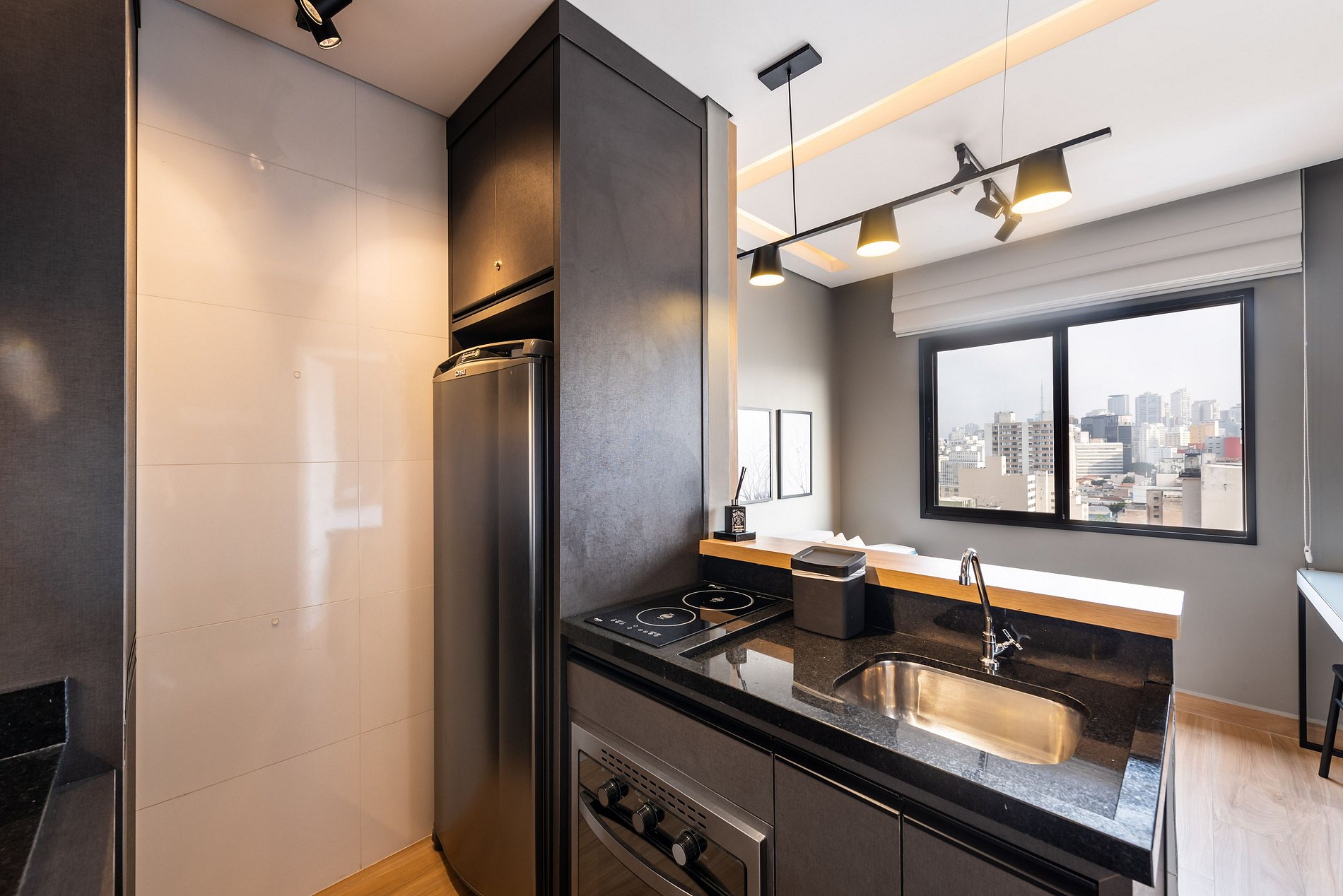 ・Cozinha completa: equipada com geladeira, fogão de indução, forno elétrico, micro-ondas etc.
