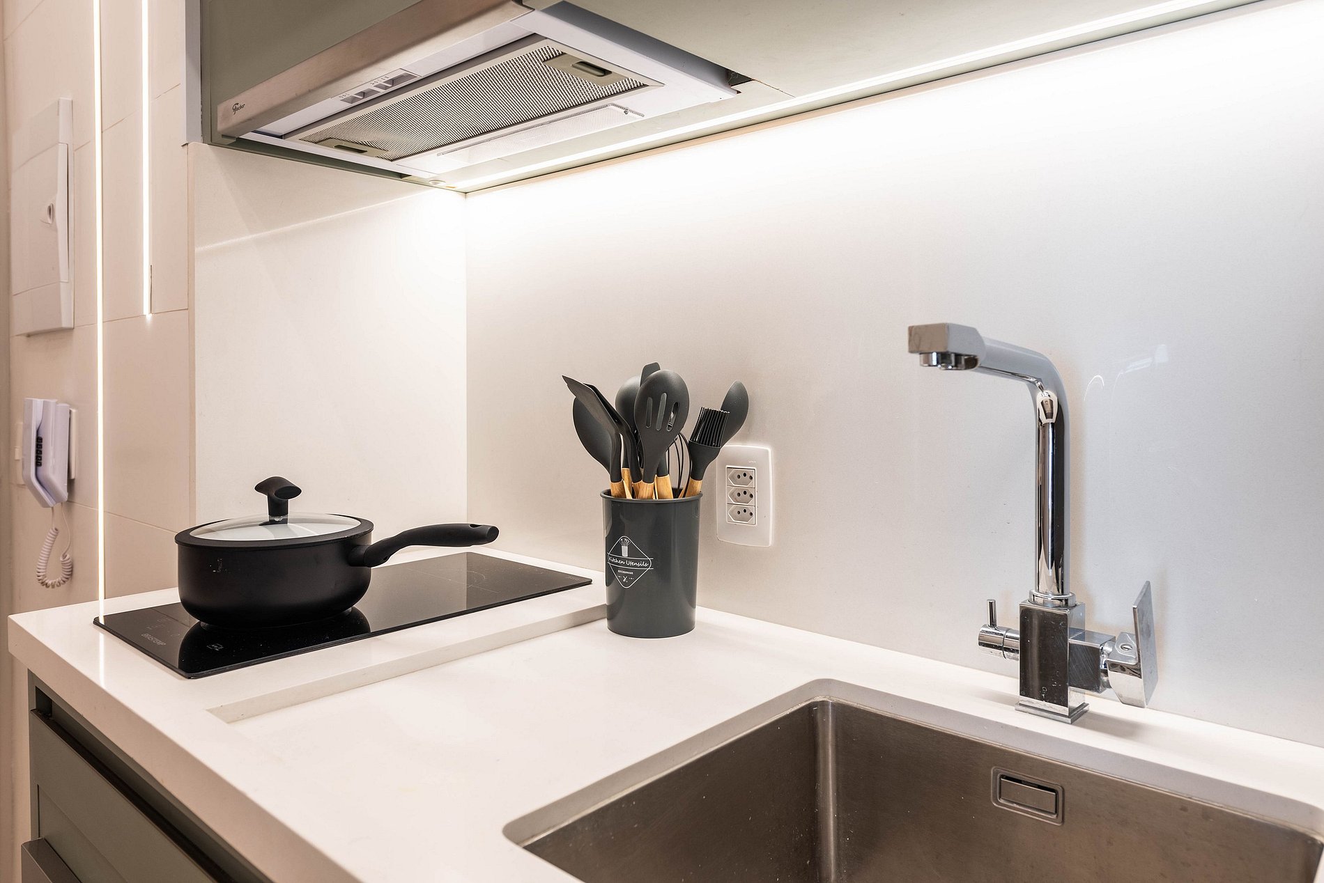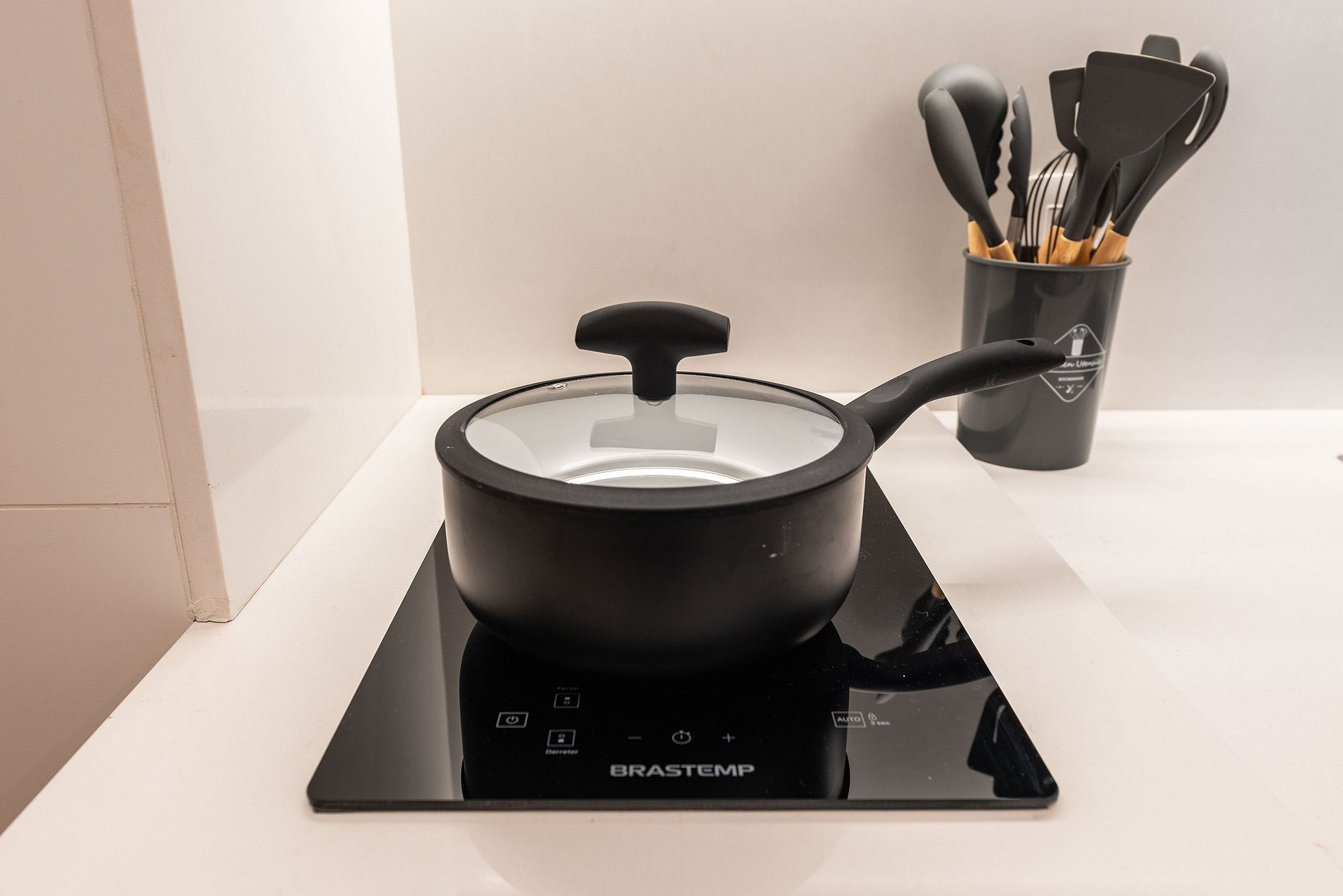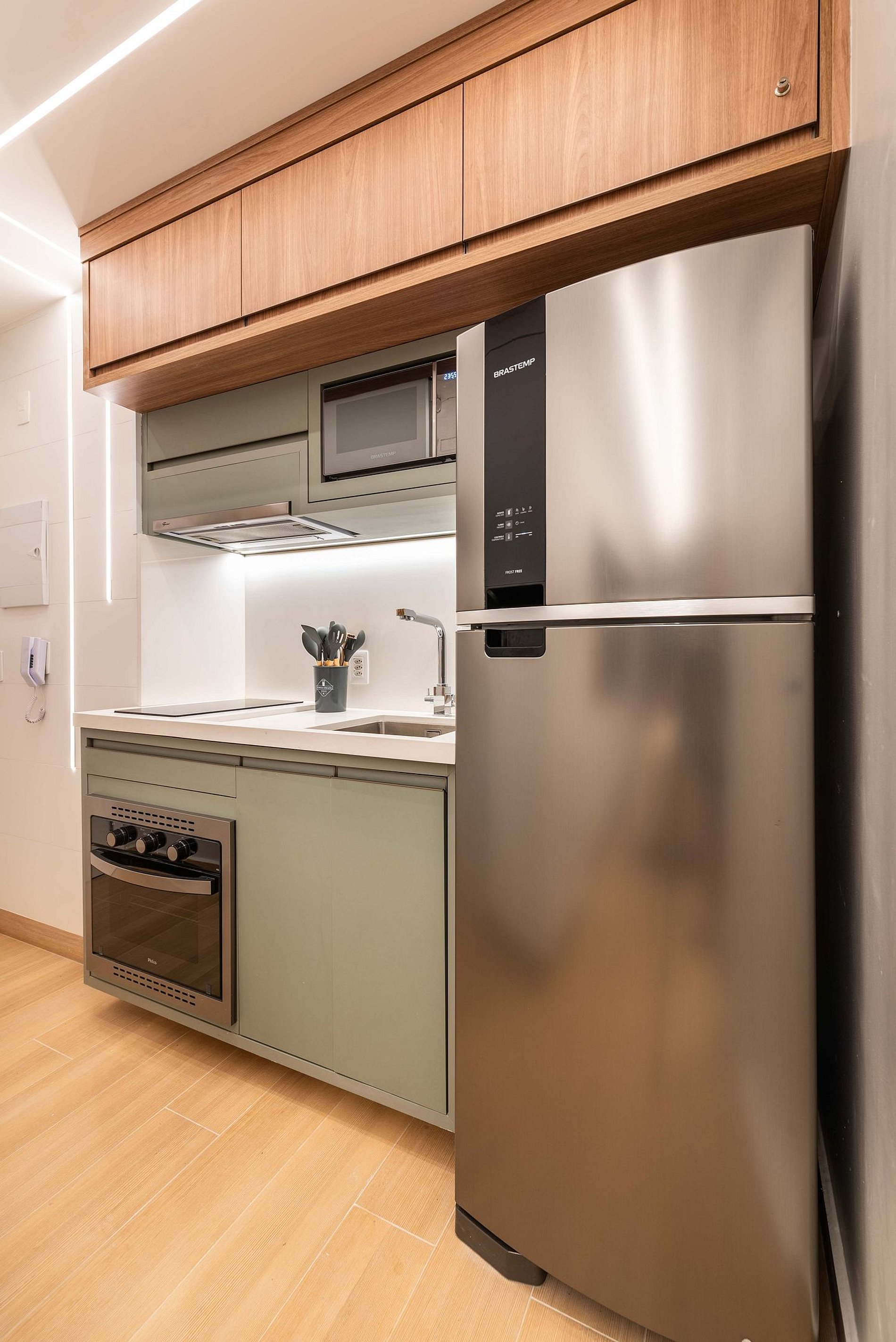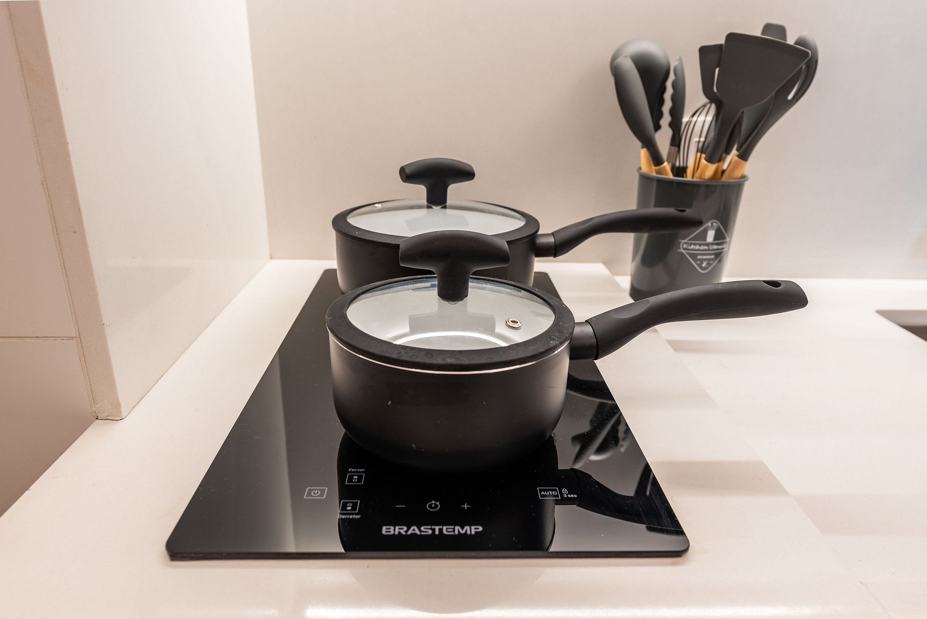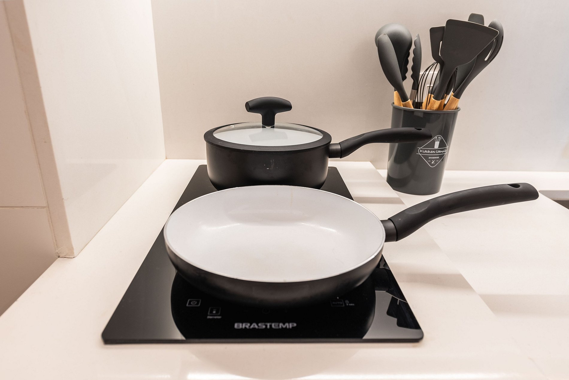 ・Cozinha completa: equipada com geladeira, fogão de indução, micro-ondas etc.