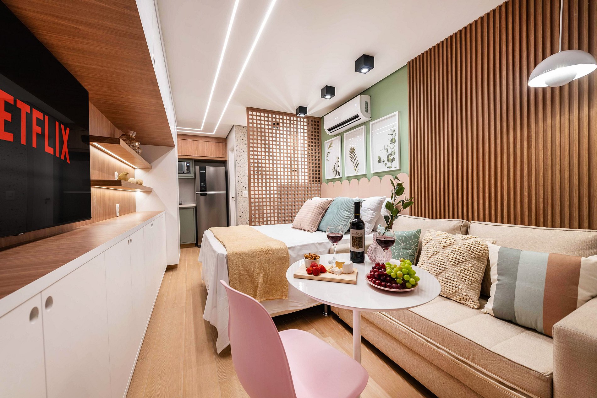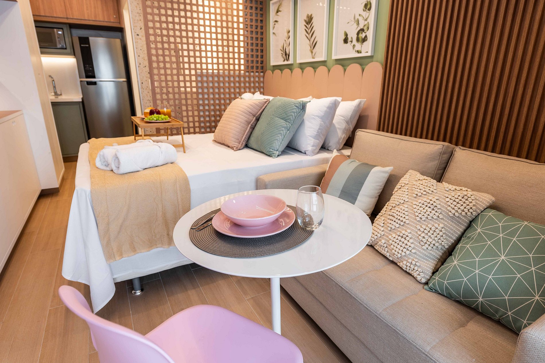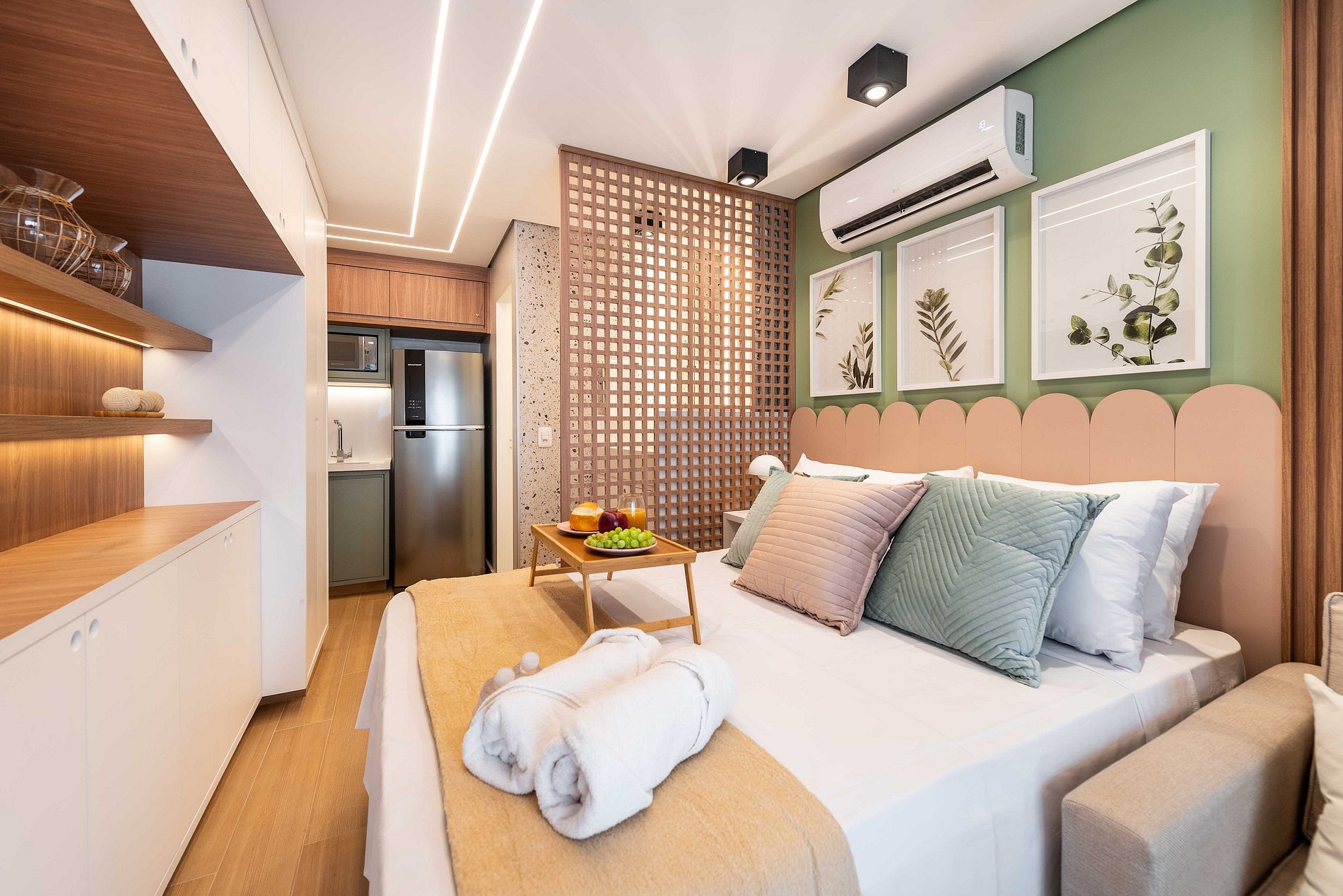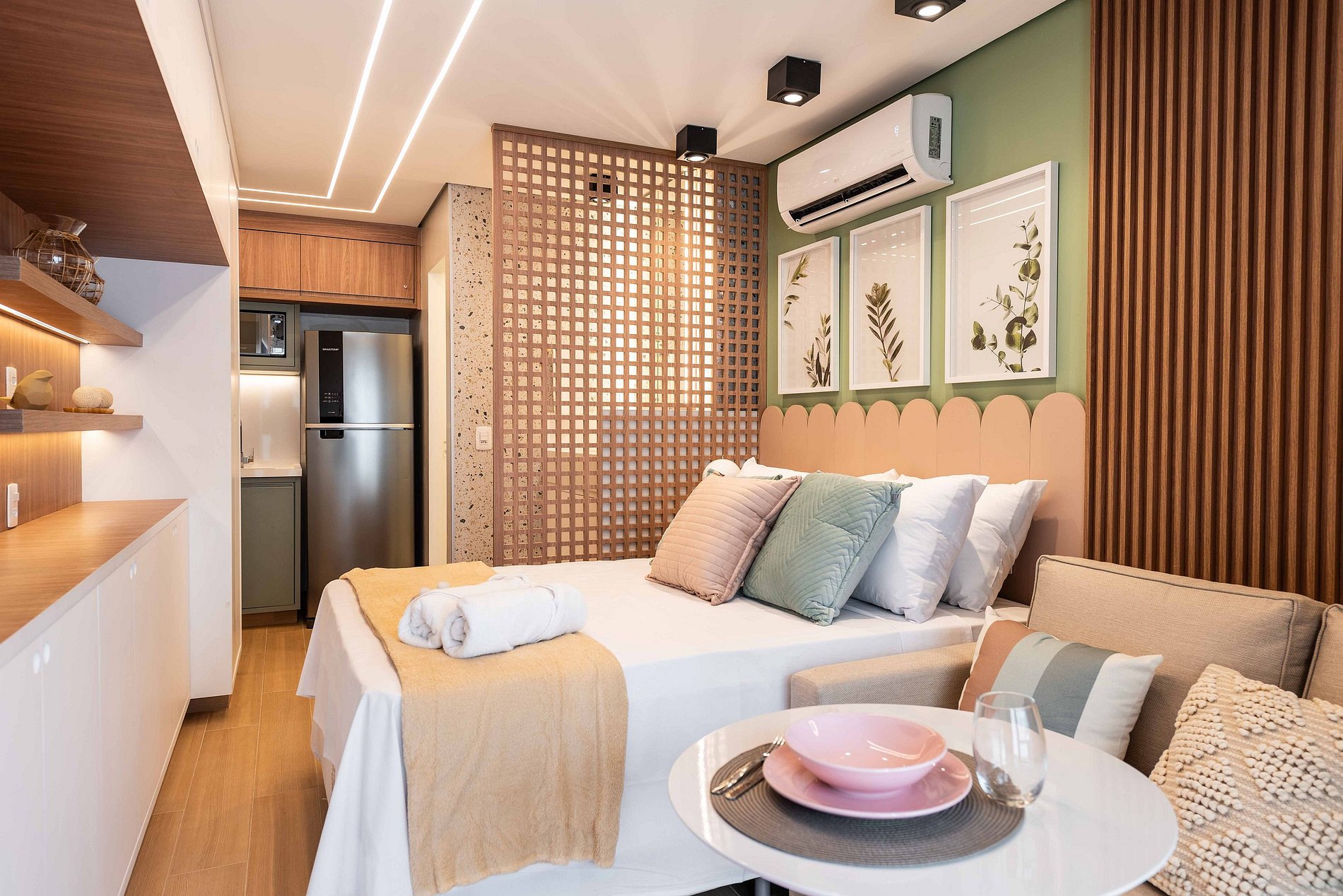 ・Cozinha completa: equipada com geladeira, fogão de indução, micro-ondas etc.