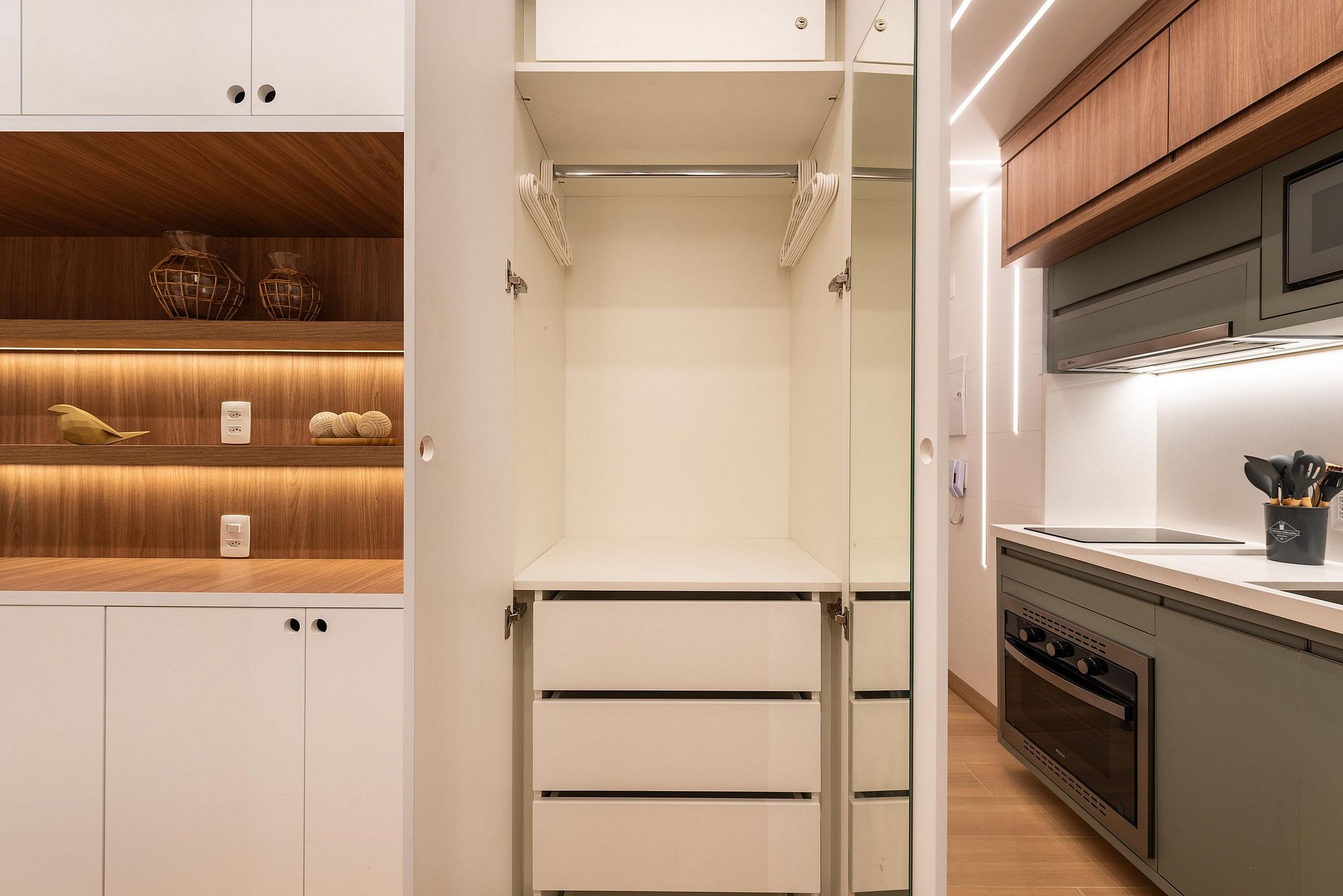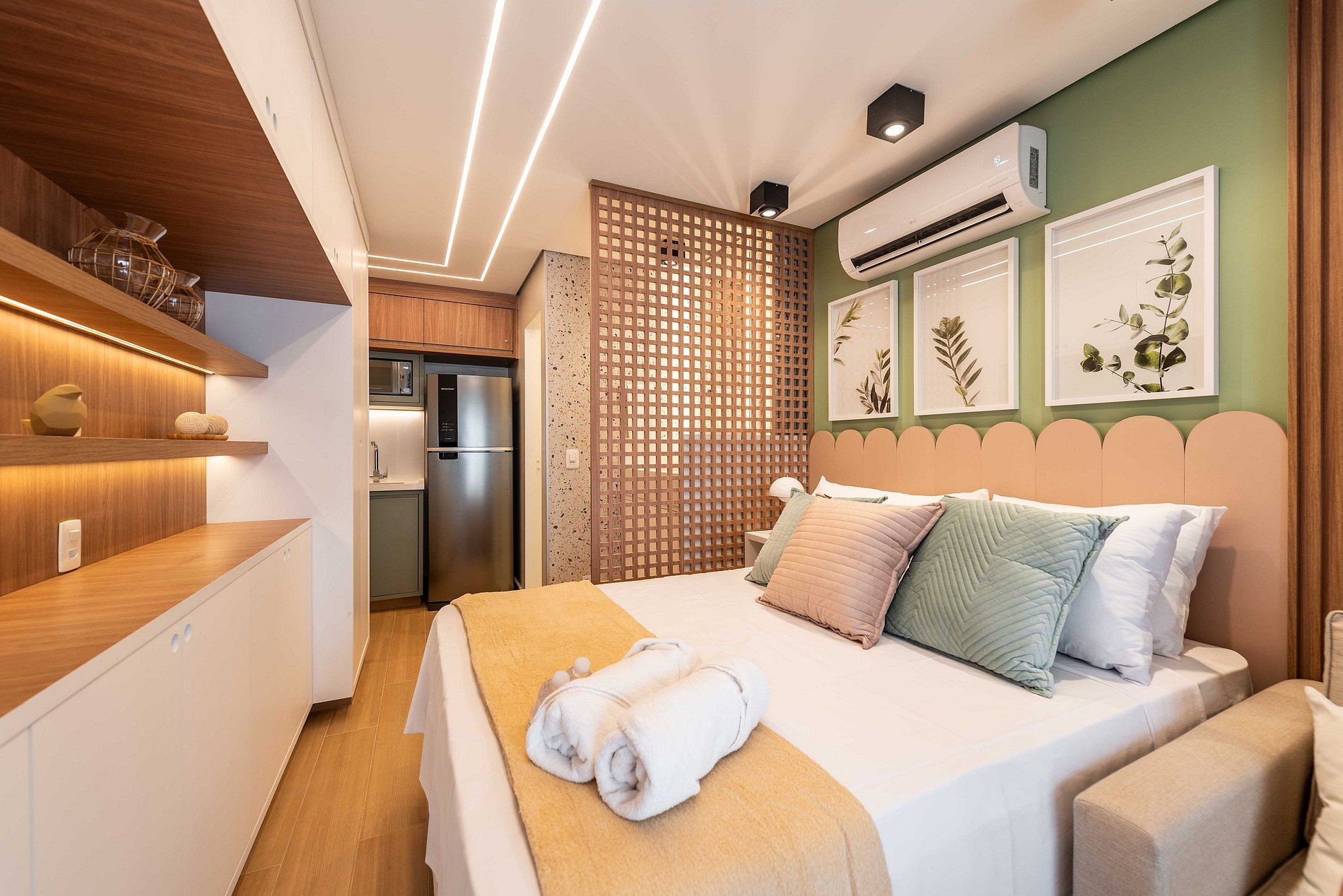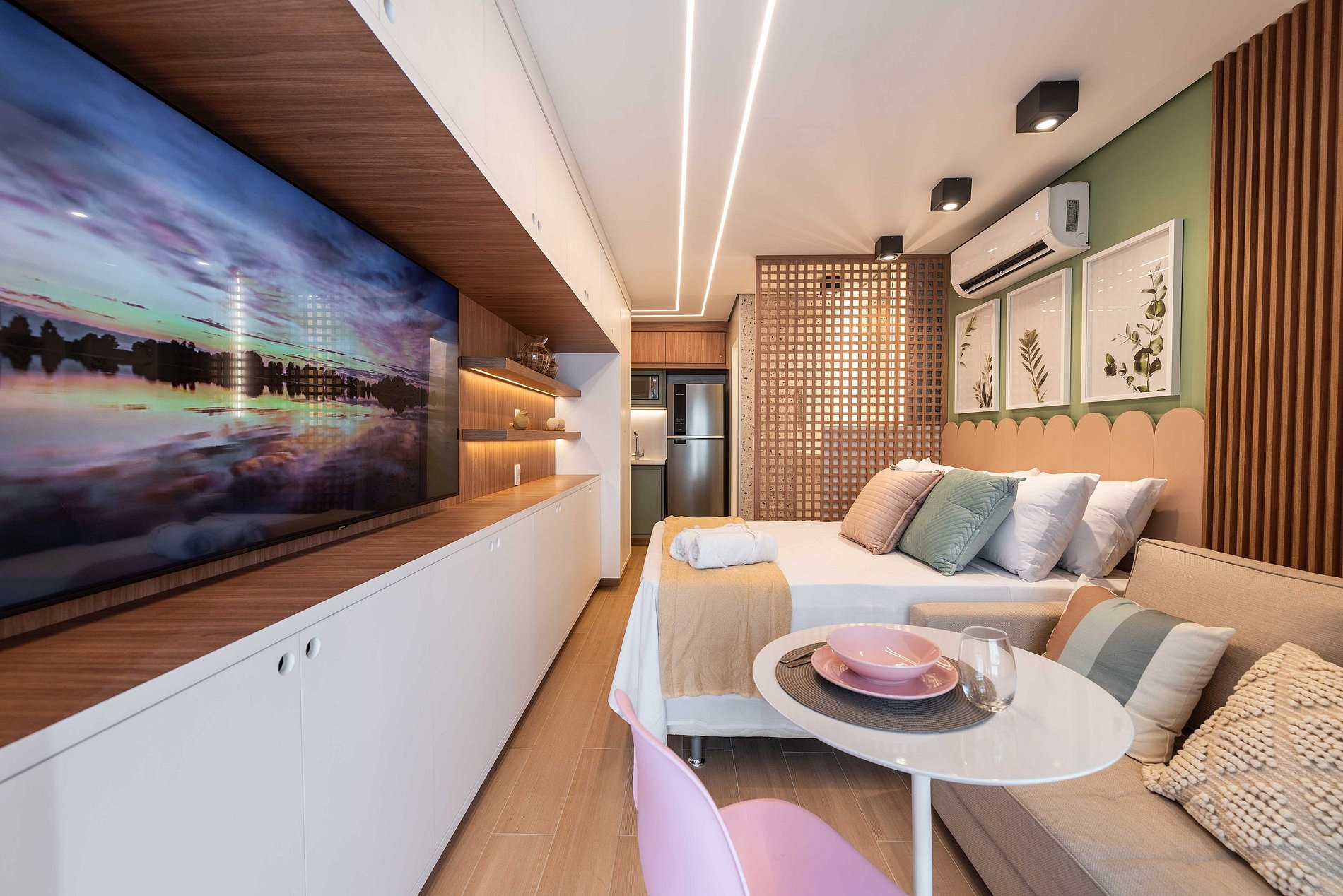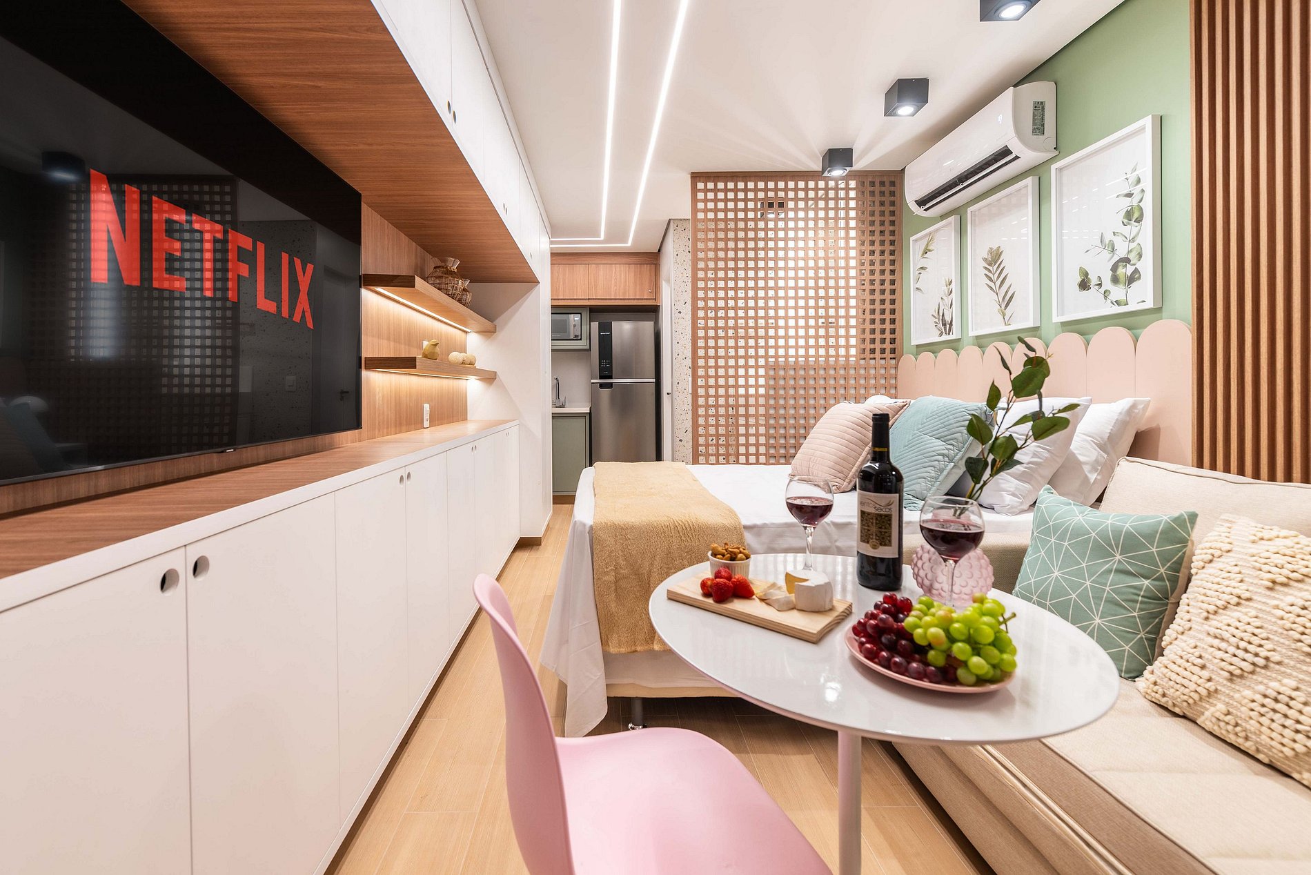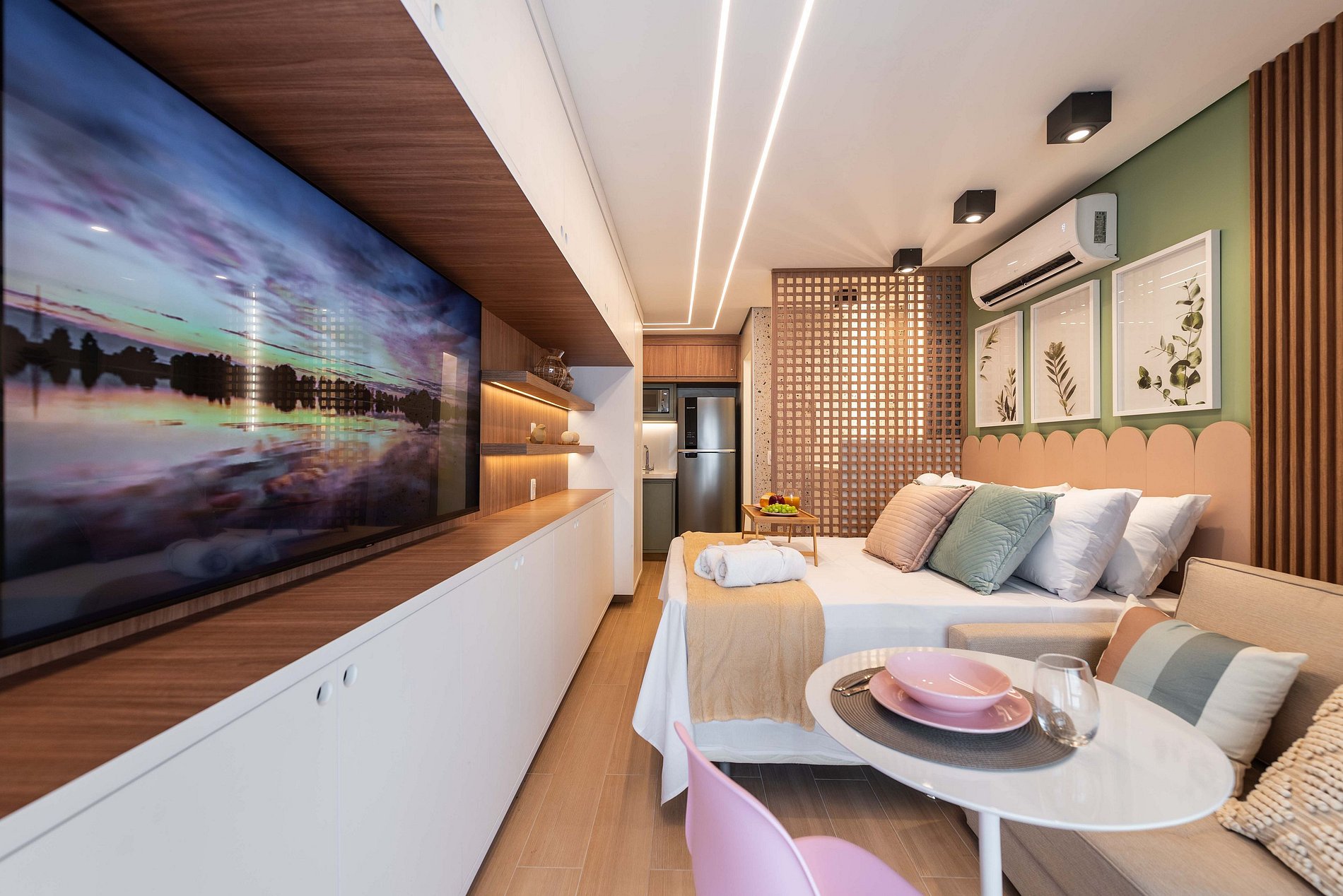 ・Cozinha completa: equipada com geladeira, fogão de indução, micro-ondas etc.