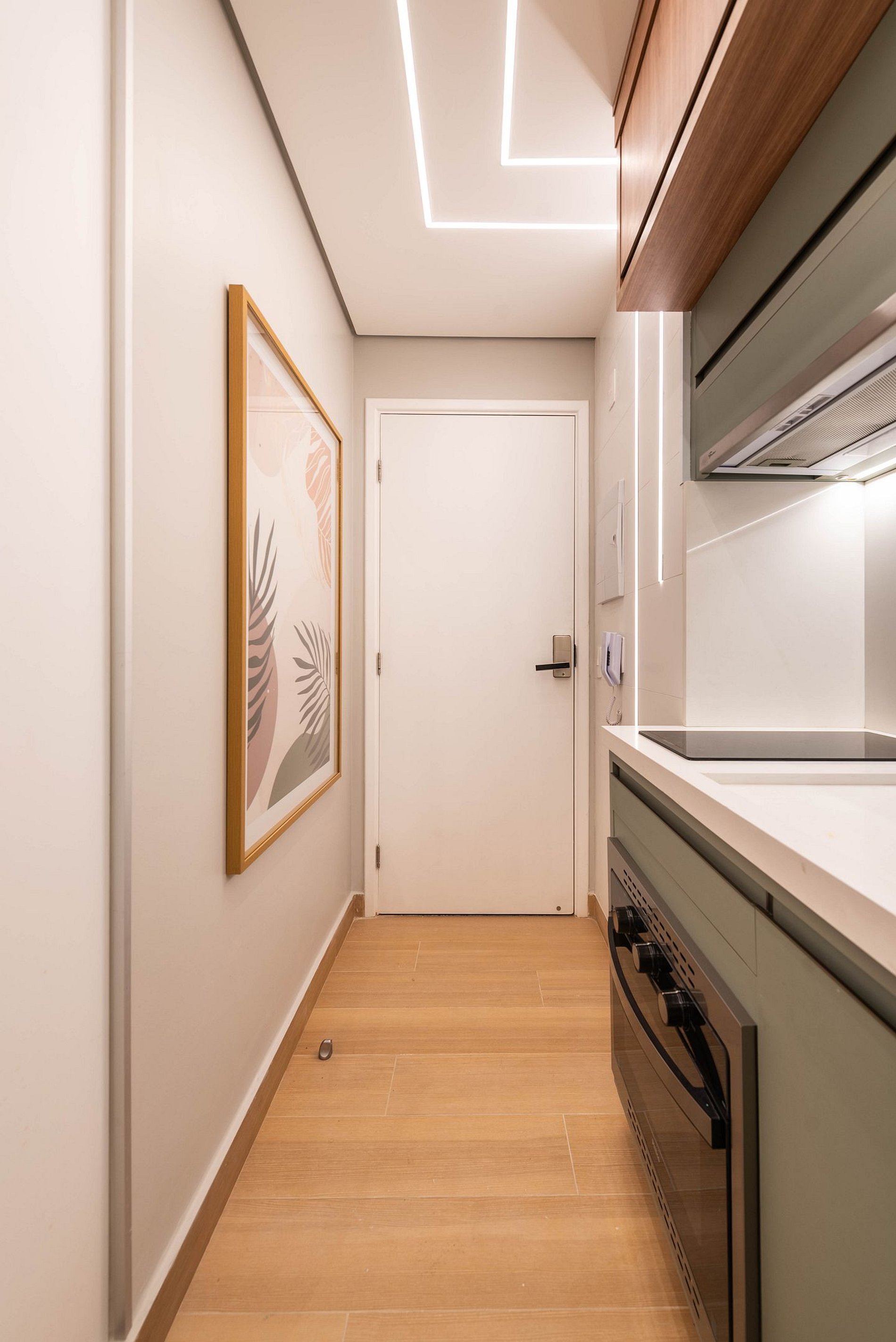 A entrada é feita por meio de uma fechadura eletrônica, oferecendo acesso completo ao apartamento e às áreas comuns do prédio.