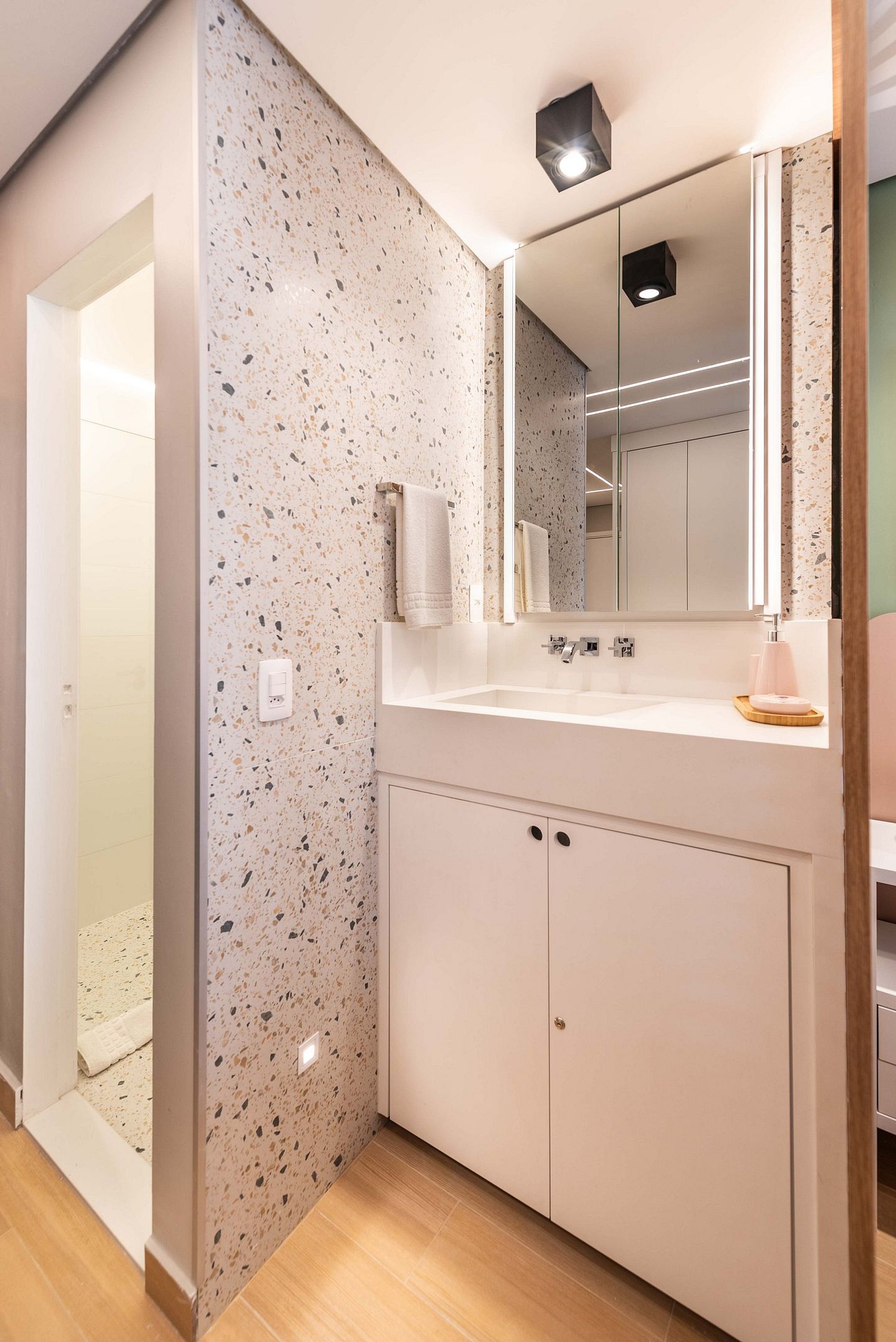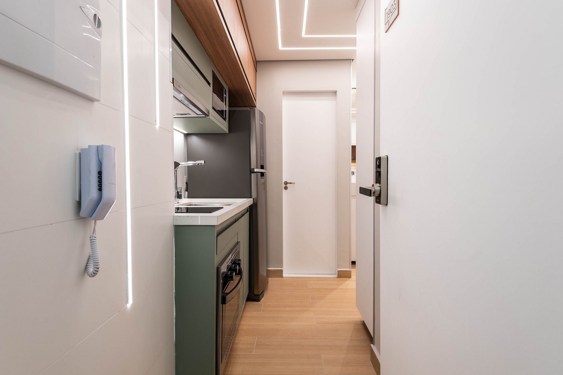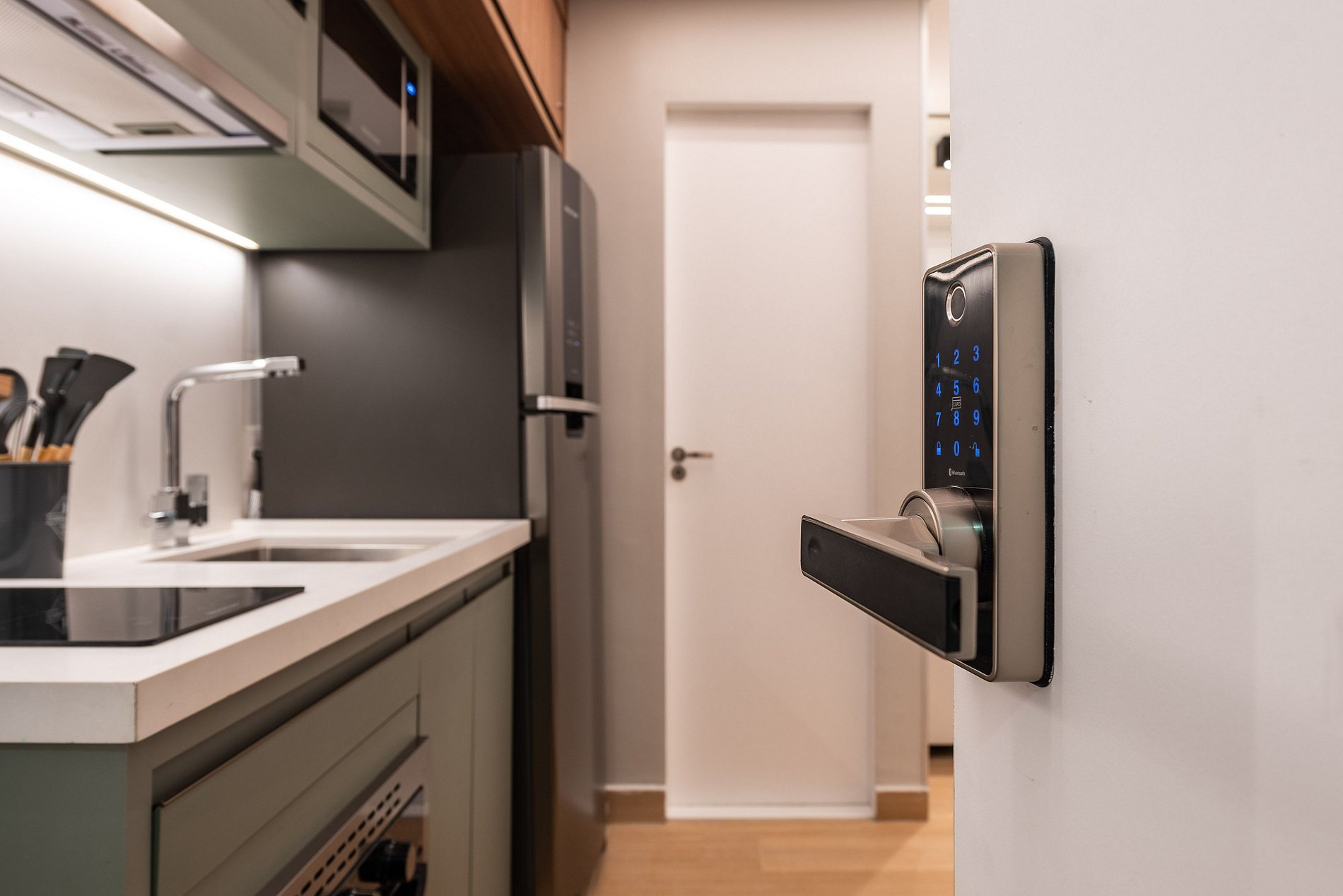 A entrada é realizada através de uma fechadura eletrônica, garantindo acesso total tanto ao apartamento quanto às comodidades do prédio.