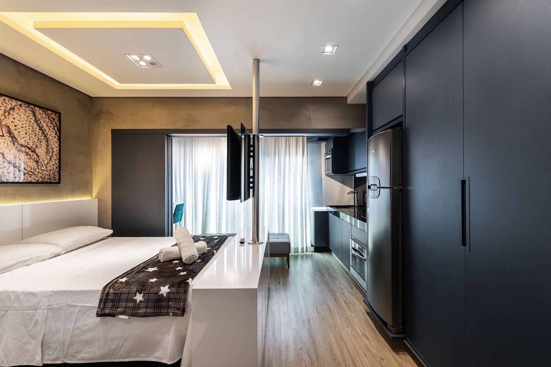 Studio aconchegante, ideal para duas pessoas, com tudo o que você precisa para uma estadia confortável. O espaço é bem planejado e funcional, oferecendo o básico para uma boa experiência, como cama confortável, cozinha equipada e ambiente acolhedor. Perfeito para quem busca praticidade e tranquilidade em uma atmosfera charmosa.
