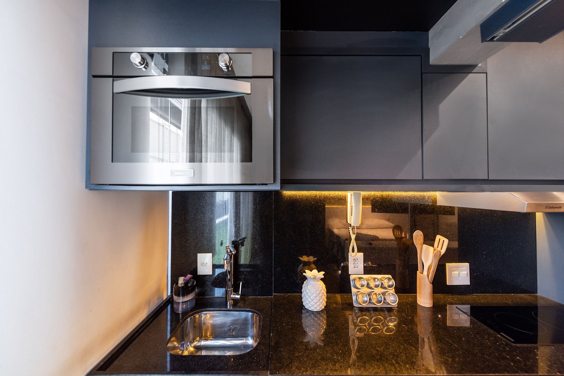 ・Cozinha completa: equipada com geladeira, fogão de indução, micro-ondas etc.