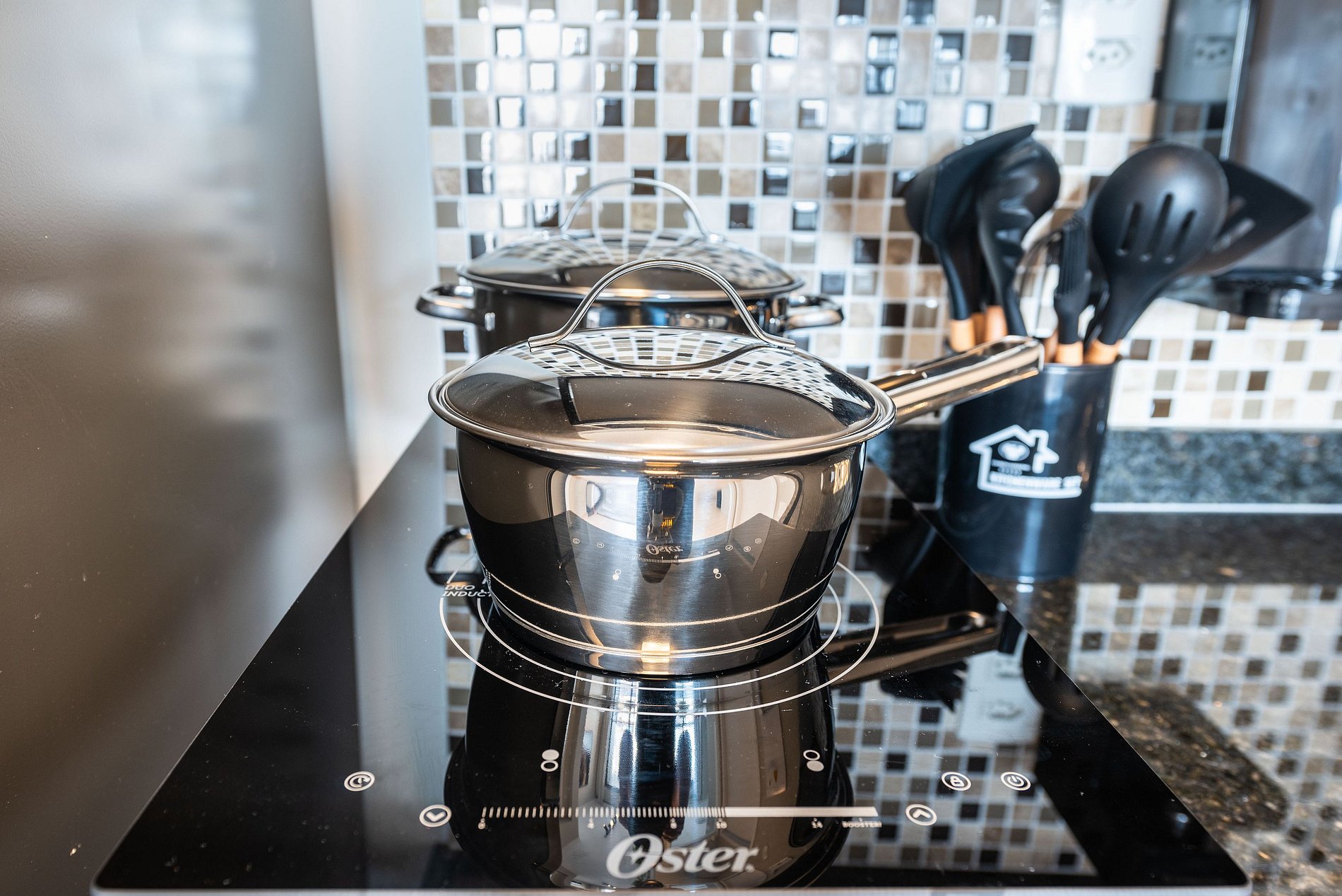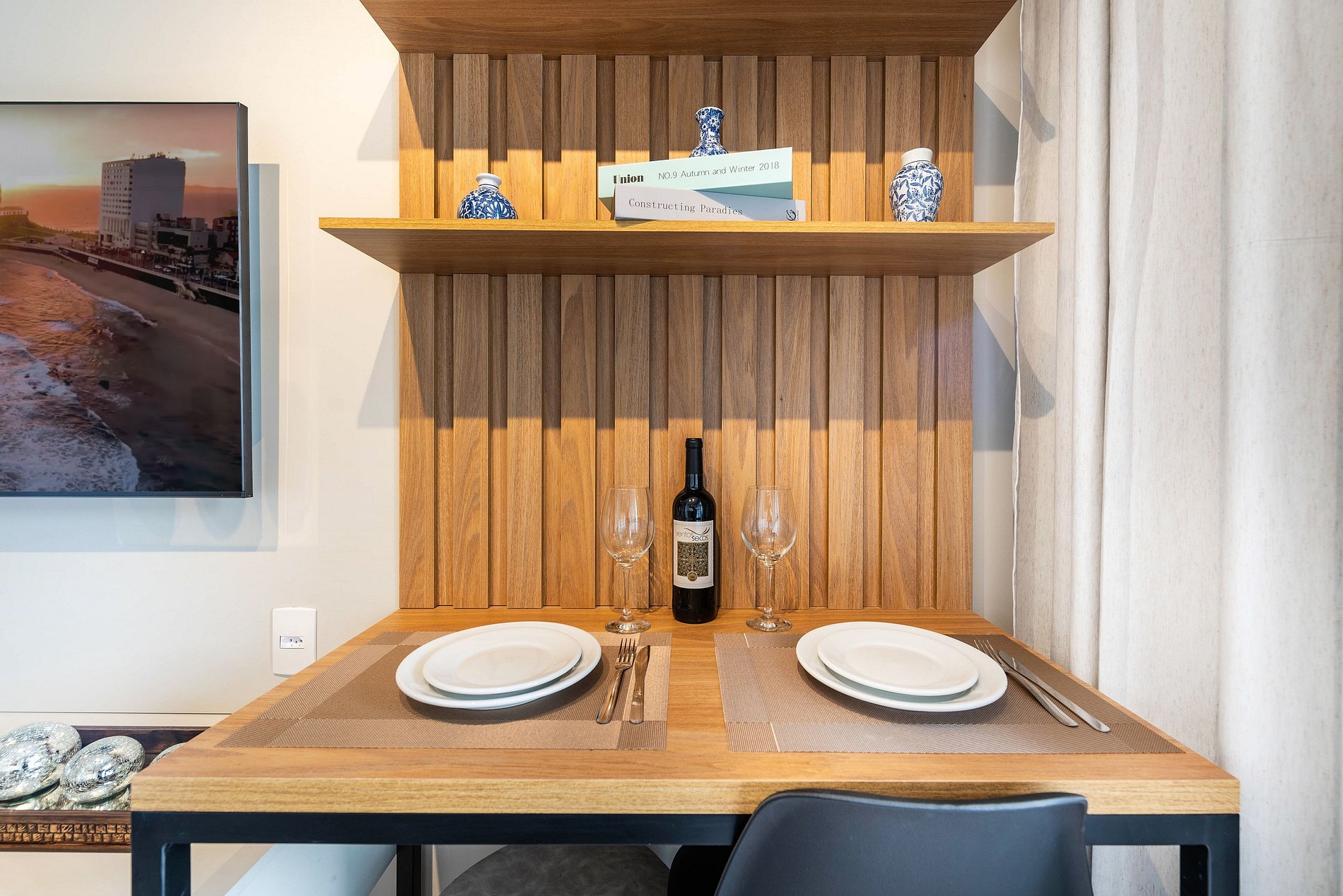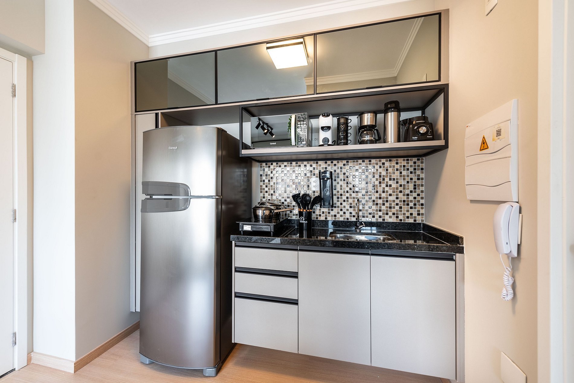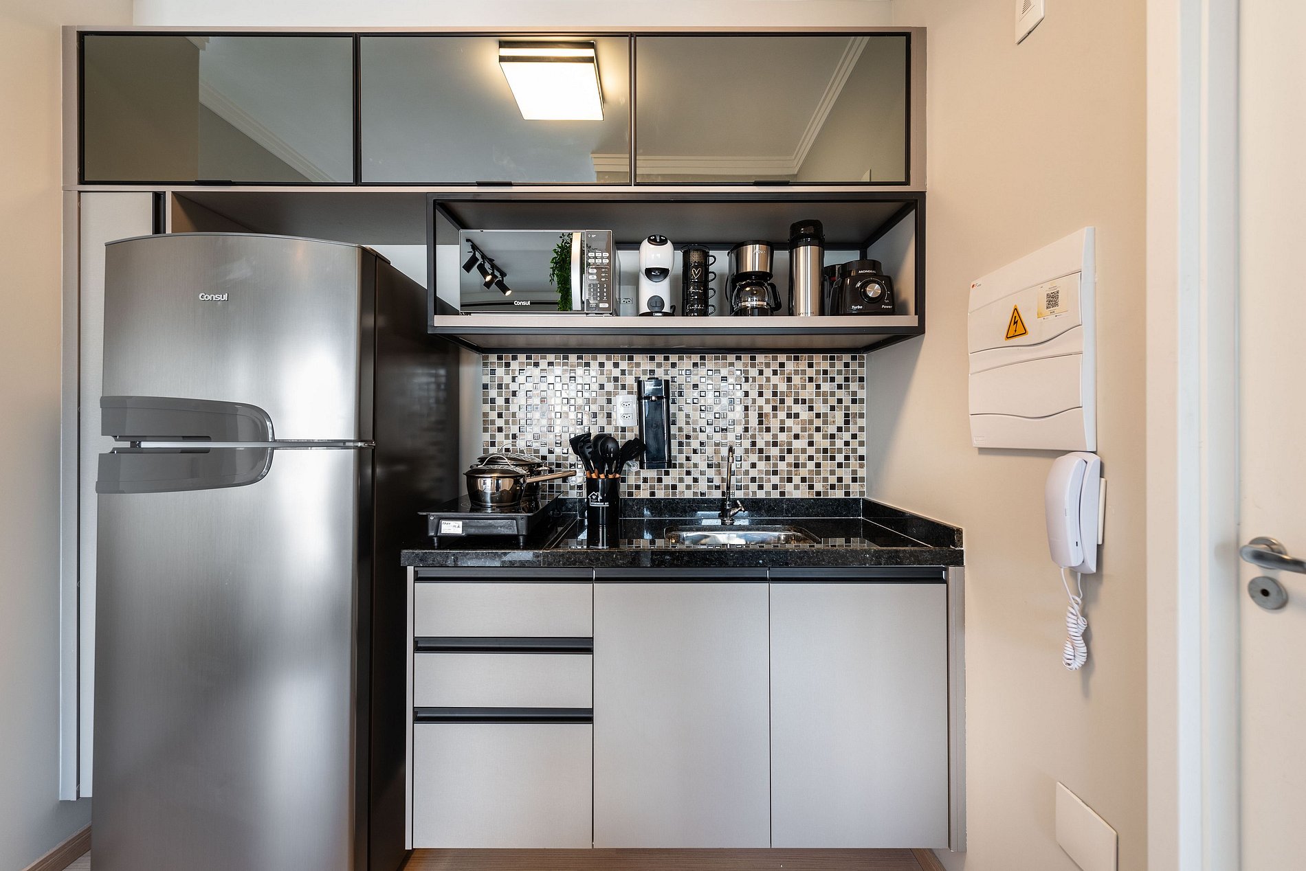 ・Cozinha completa: equipada com geladeira, fogão de indução, micro-ondas etc.