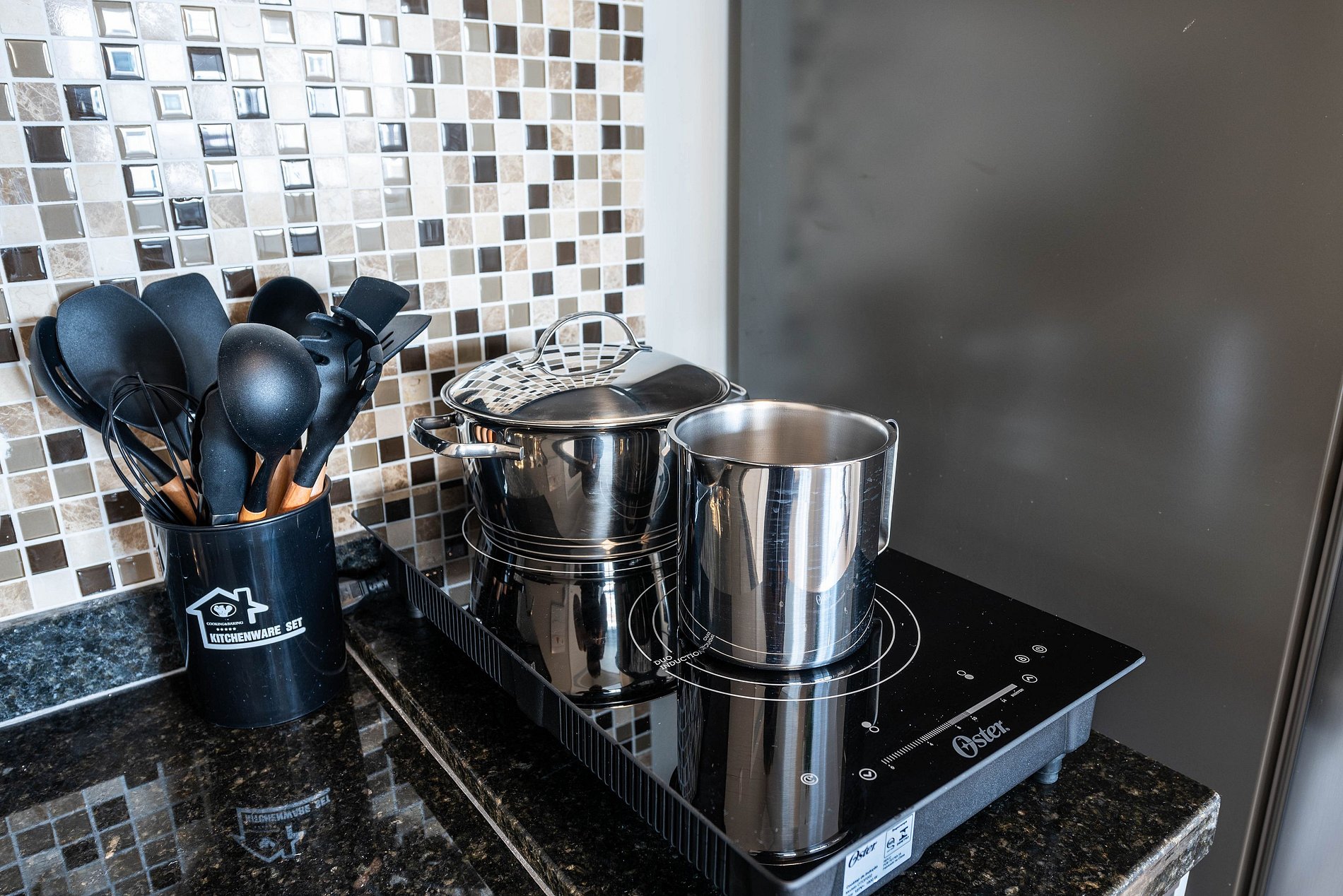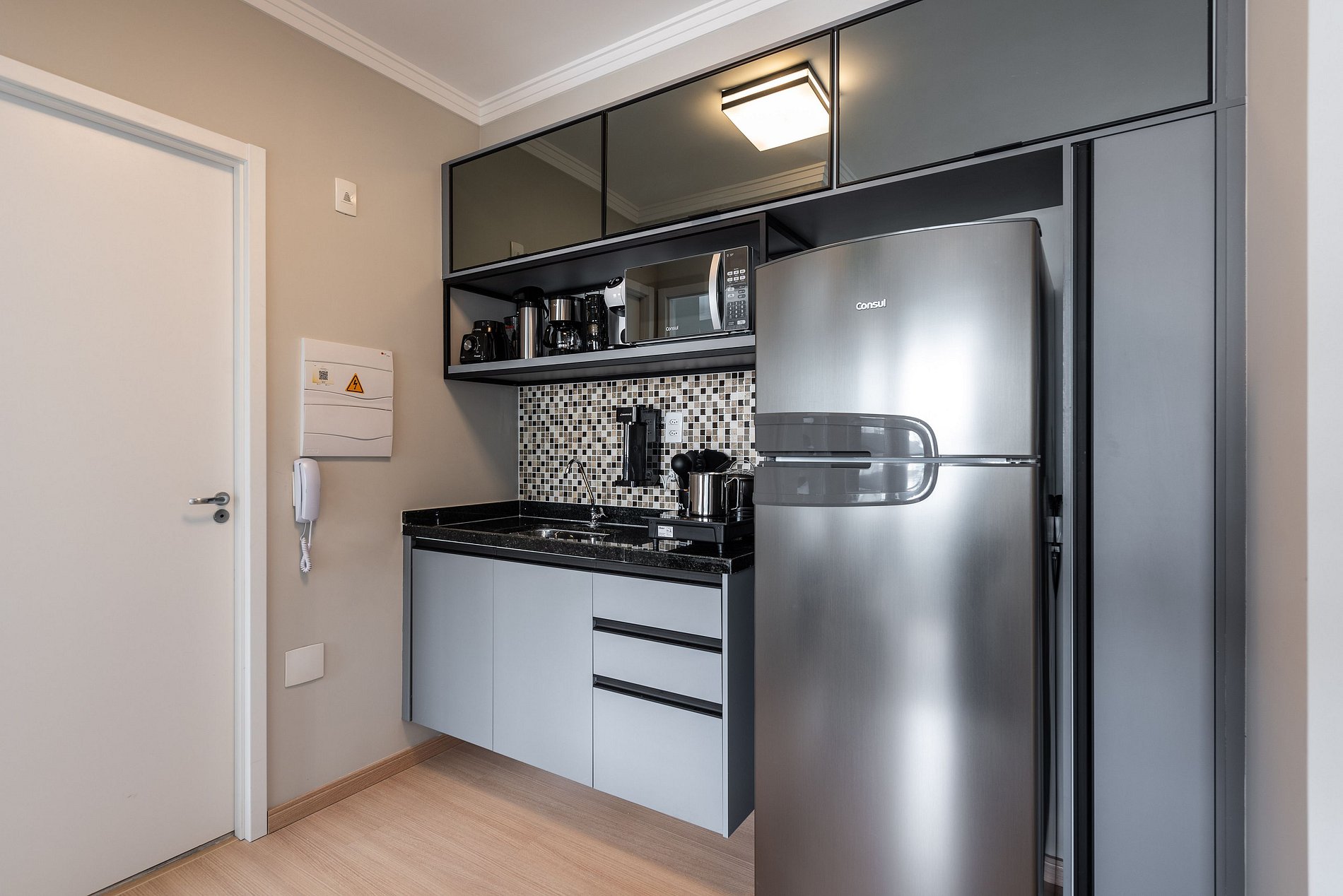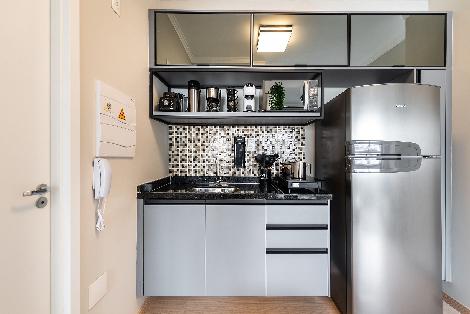 ・Cozinha completa: equipada com geladeira, fogão de indução, micro-ondas etc.