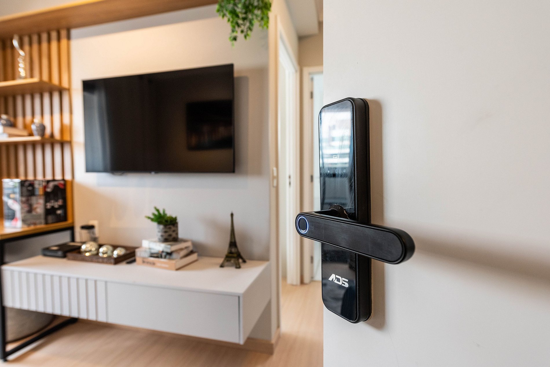 A entrada é realizada através de uma fechadura eletrônica, garantindo acesso total tanto ao apartamento quanto às comodidades do prédio.