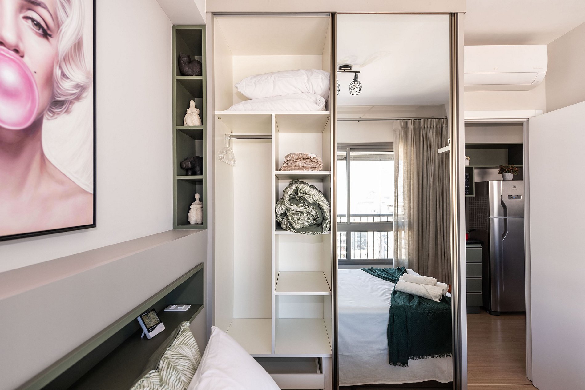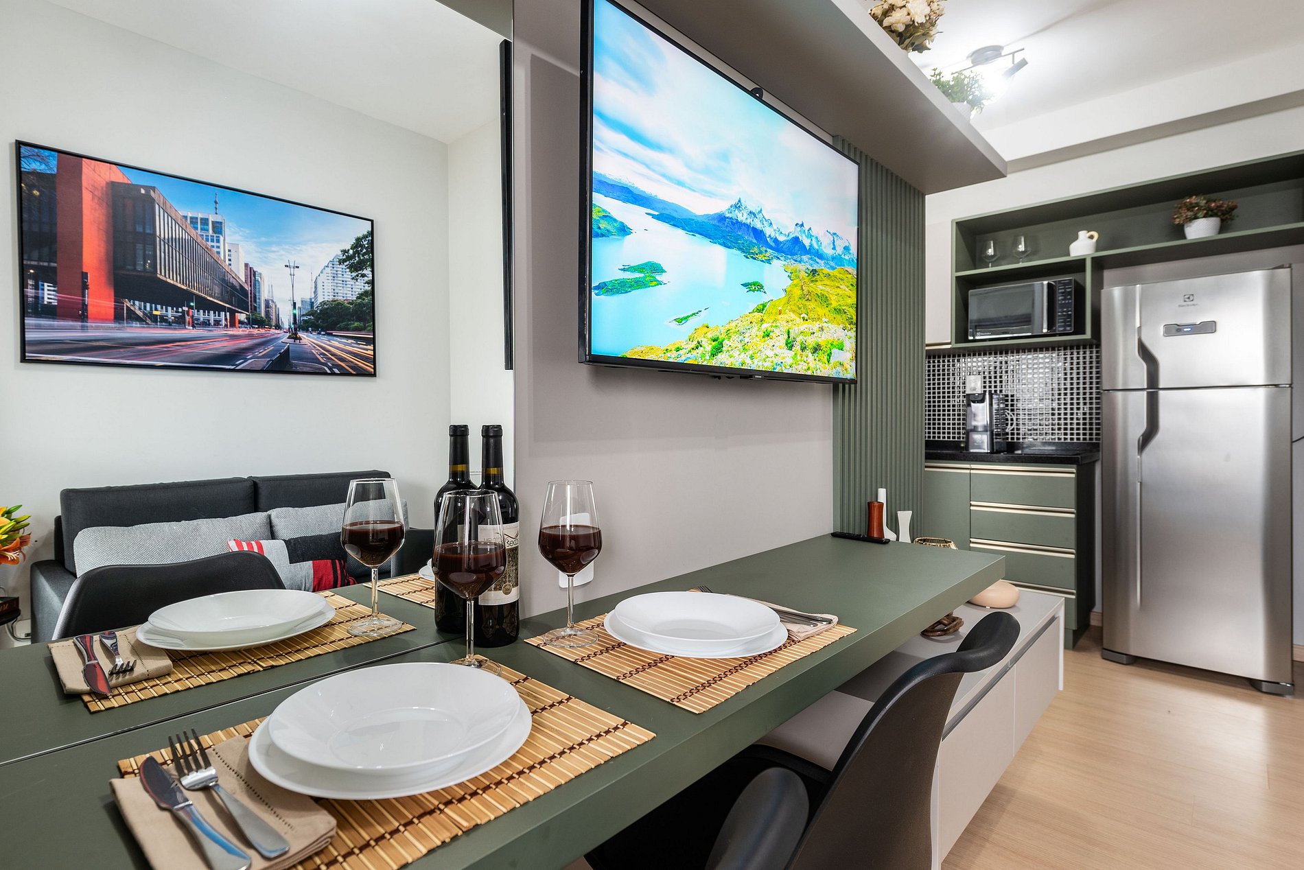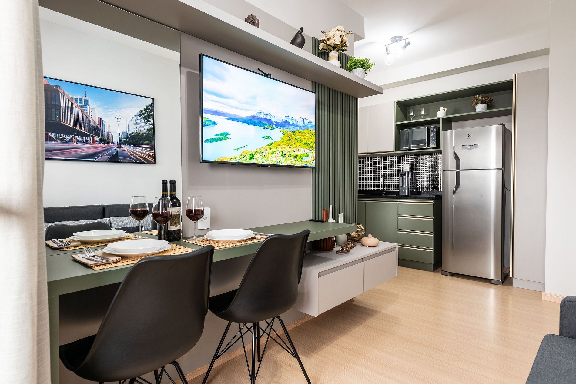 ・Cozinha completa: equipada com geladeira, fogão de indução, micro-ondas etc.