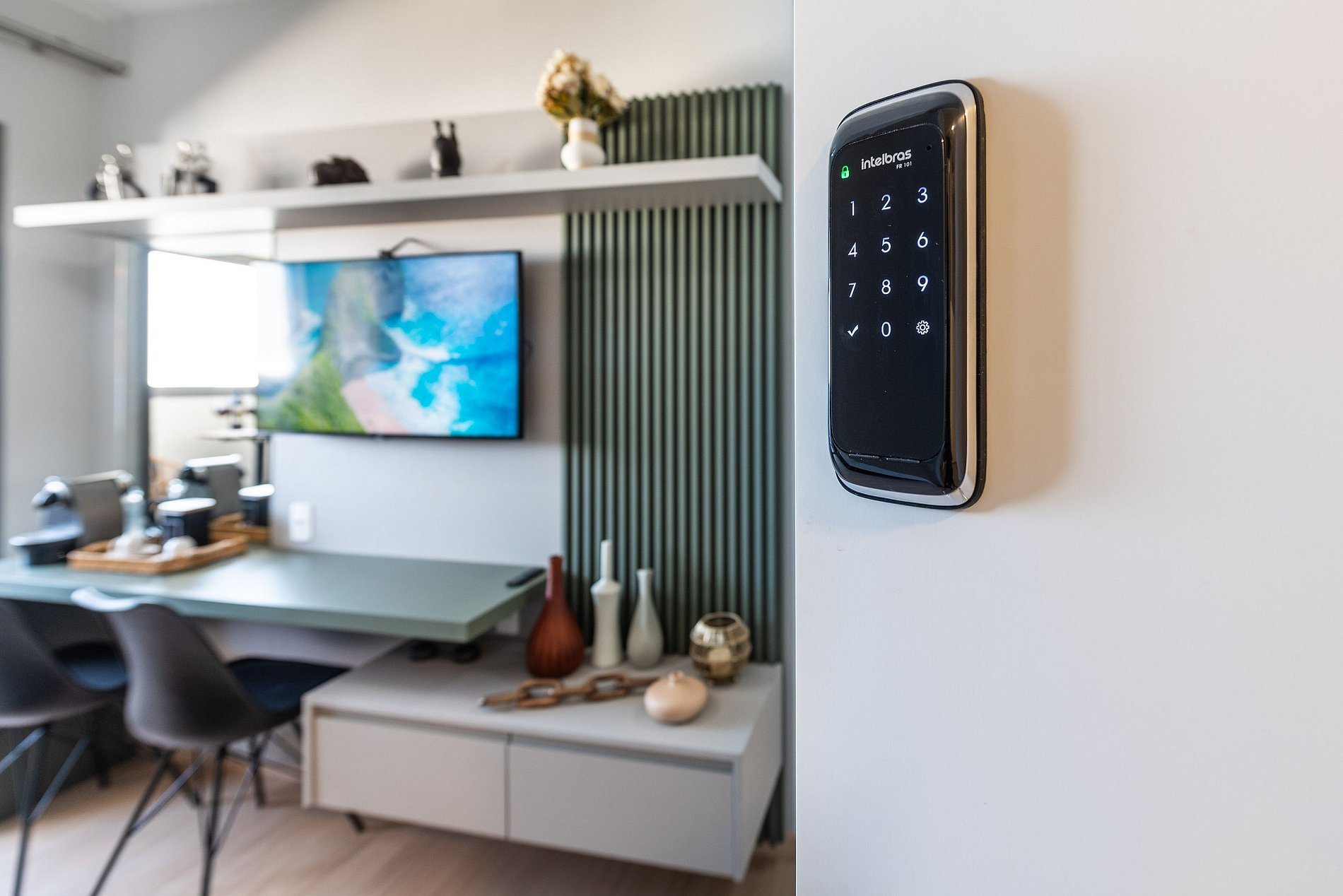 A entrada é realizada através de uma fechadura eletrônica, garantindo acesso total tanto ao apartamento quanto às comodidades do prédio.