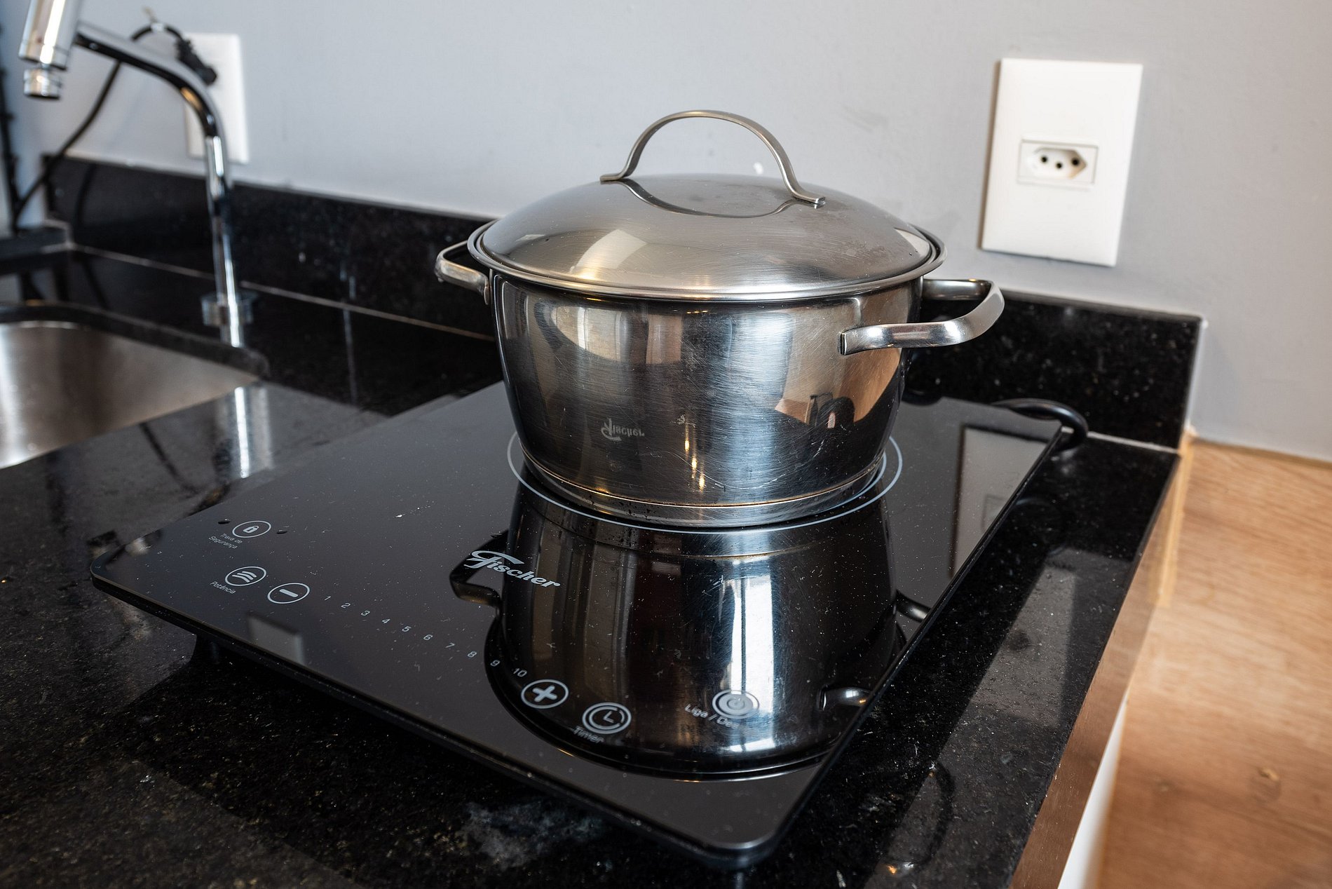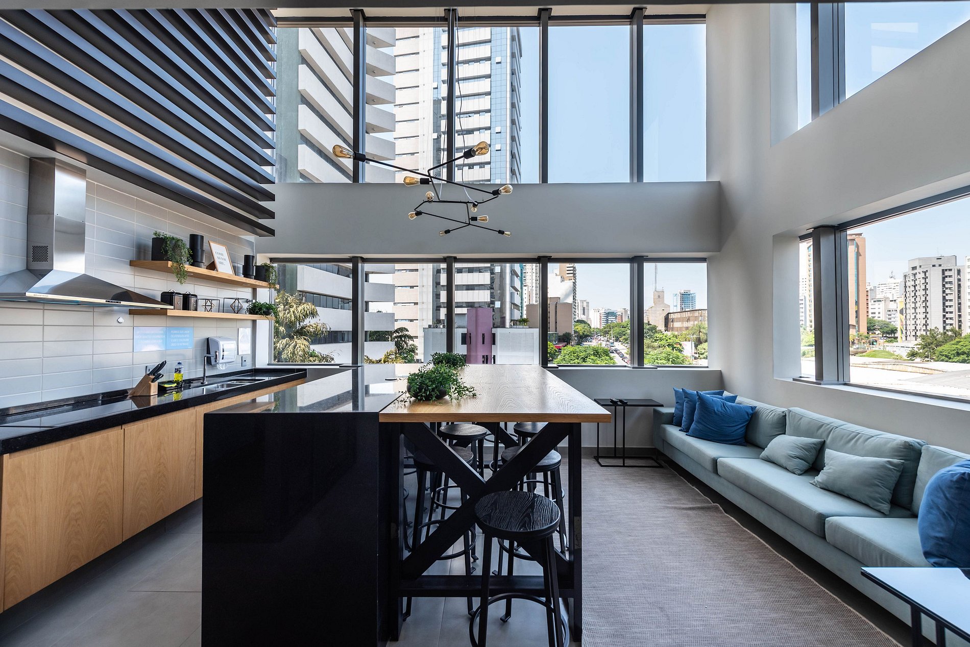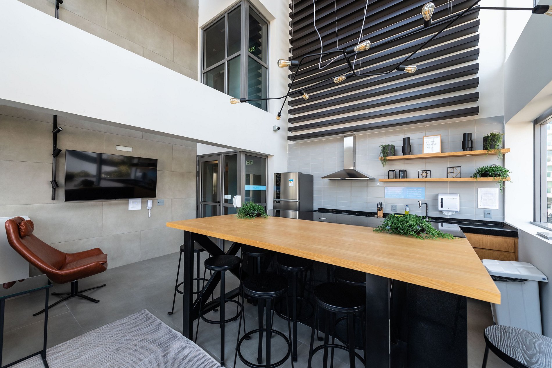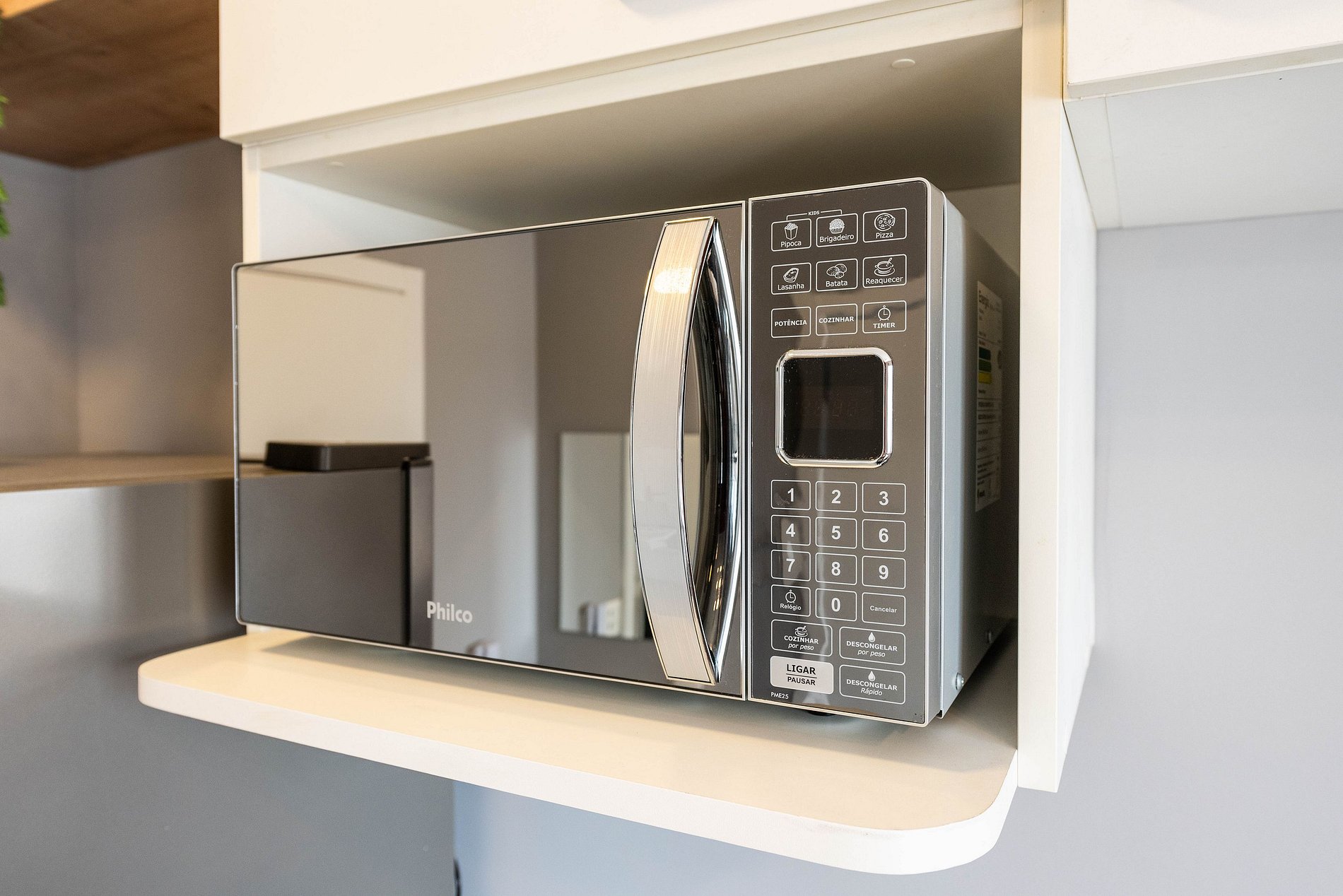 ・Cozinha completa: equipada com frigobar, fogão de indução, micro-ondas etc.