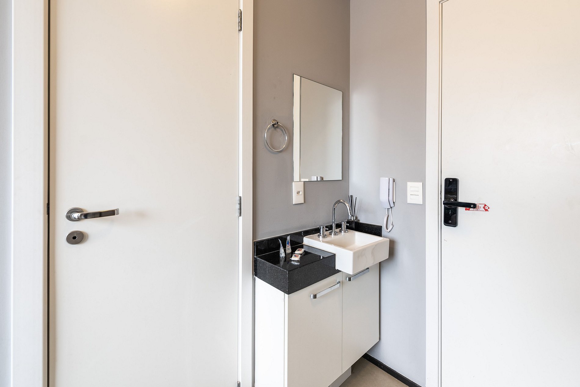 A entrada é realizada através de uma fechadura eletrônica, garantindo acesso total tanto ao apartamento quanto às comodidades do prédio.