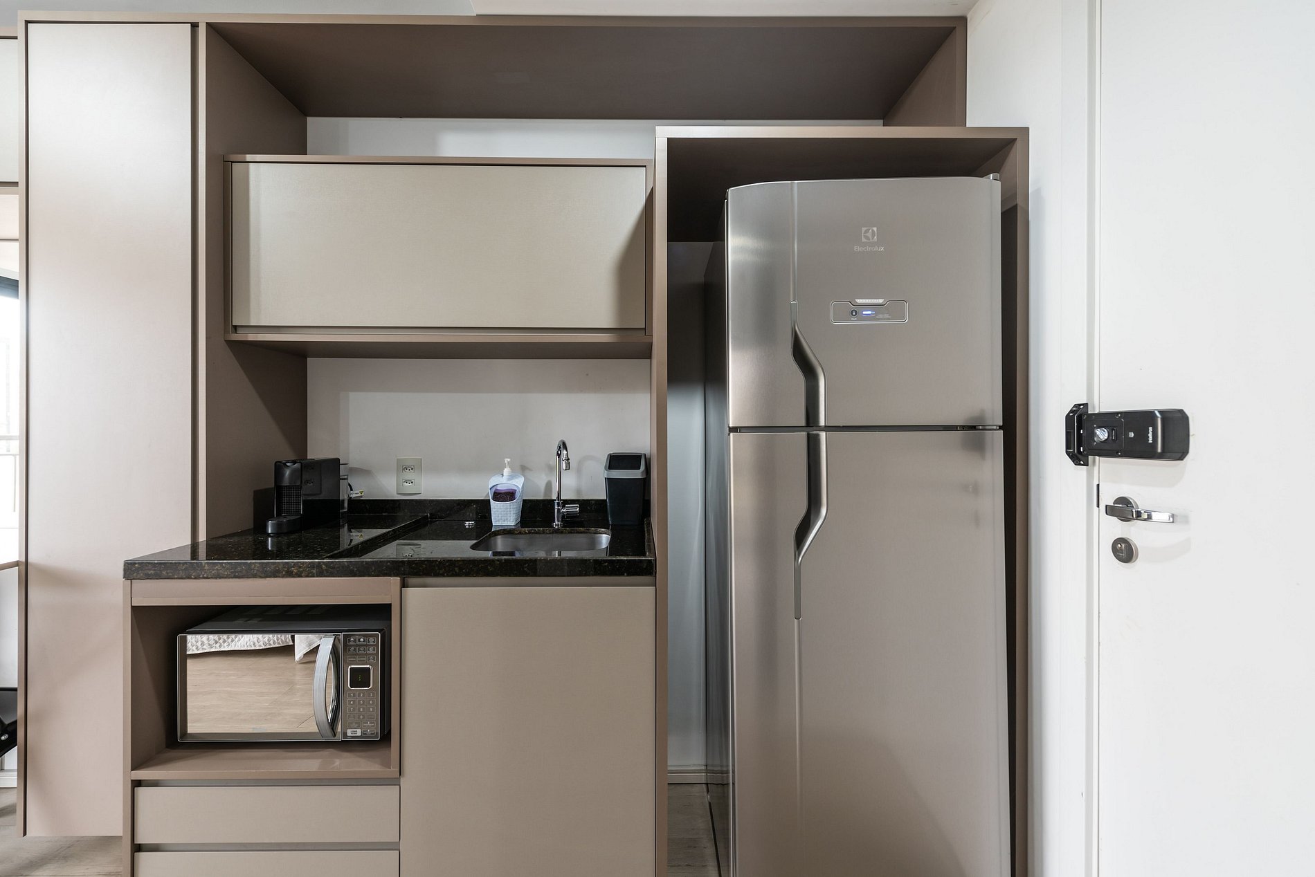 ・Cozinha completa: equipada com geladeira, fogão de indução, micro-ondas etc.