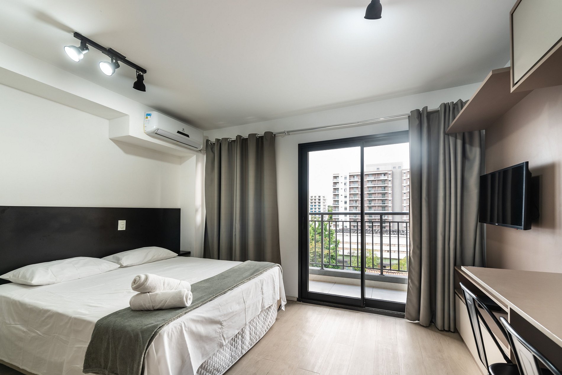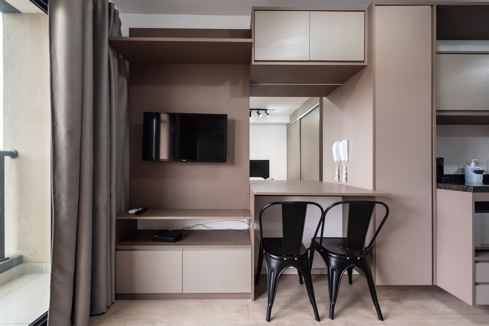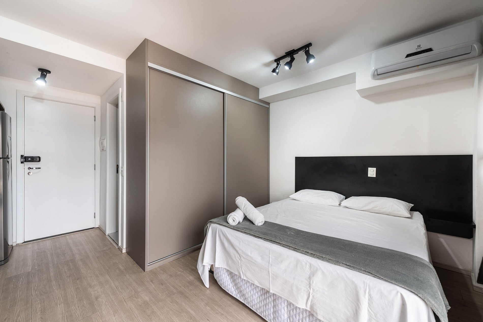 O studio para duas pessoas é aconchegante, funcional e ideal para uma estadia confortável. Ele conta com uma cama de casal, banheiro privativo e uma cozinha compacta equipada com os utensílios essenciais para preparar refeições simples. Com decoração agradável e bom aproveitamento do espaço, o studio oferece praticidade e conforto para o casal aproveitar a estadia com tranquilidade.