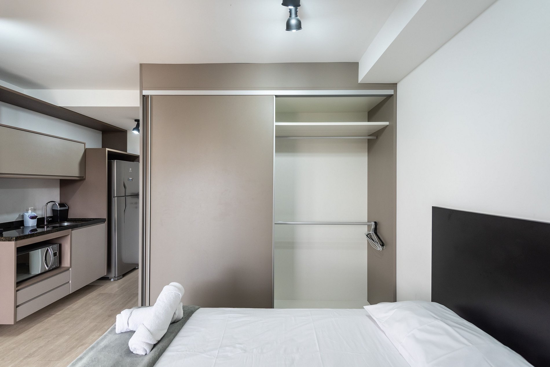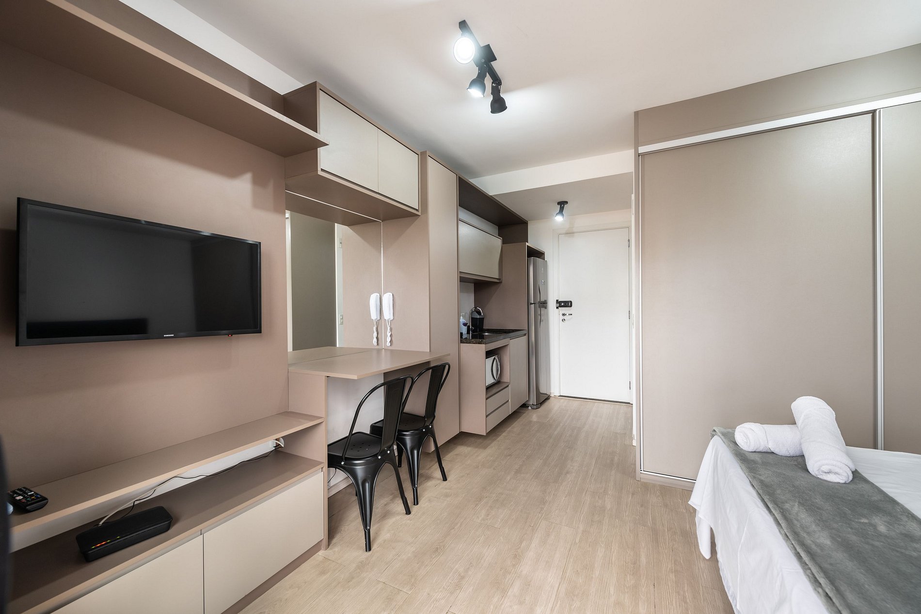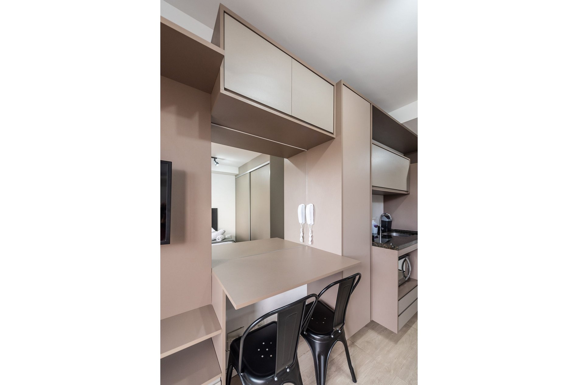 O studio para duas pessoas é aconchegante, funcional e ideal para uma estadia confortável. Ele conta com uma cama de casal, banheiro privativo e uma cozinha compacta equipada com os utensílios essenciais para preparar refeições simples. Com decoração agradável e bom aproveitamento do espaço, o studio oferece praticidade e conforto para o casal aproveitar a estadia com tranquilidade.