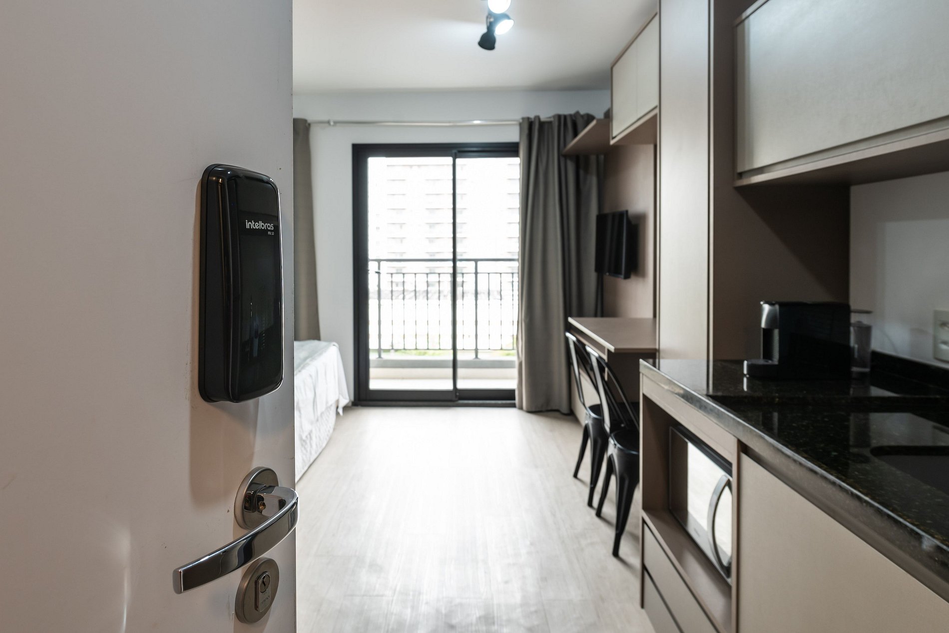 A entrada é realizada através de uma fechadura eletrônica, garantindo acesso total tanto ao apartamento quanto às comodidades do prédio.